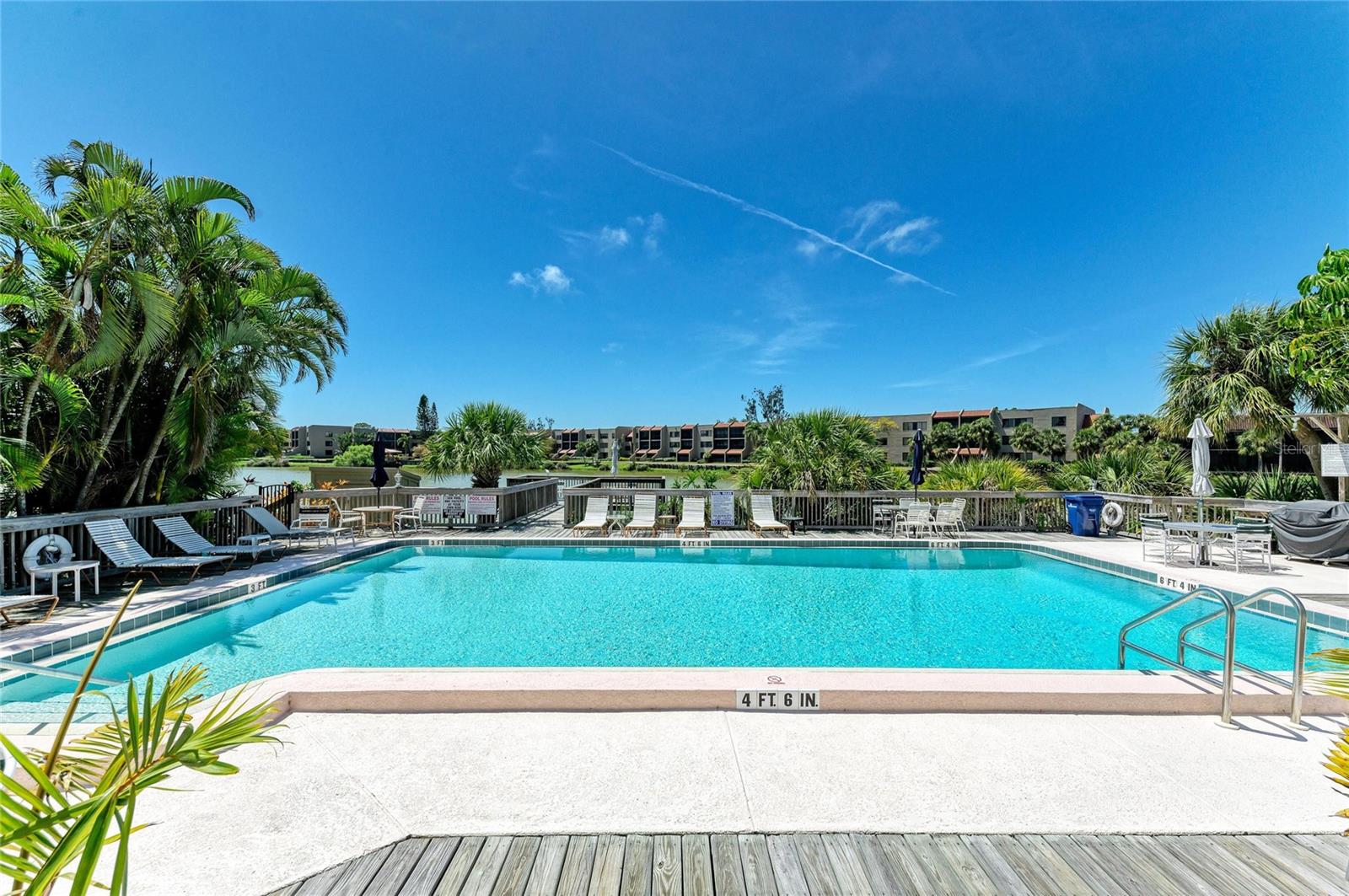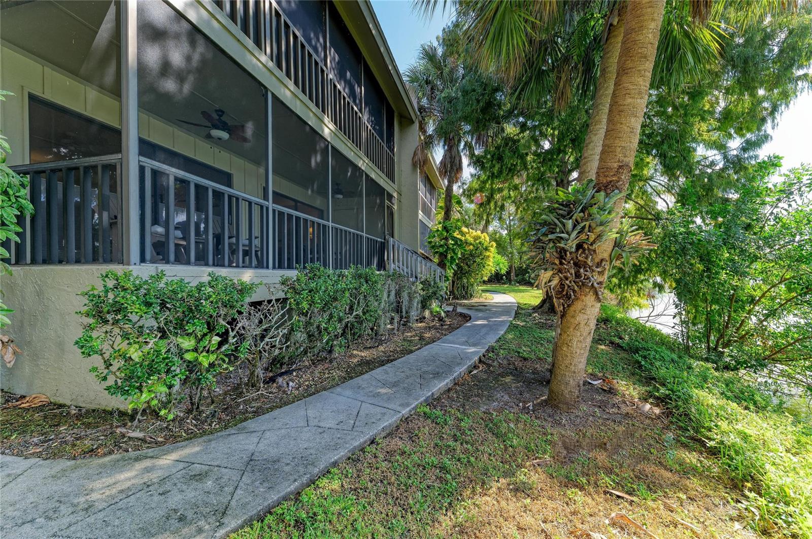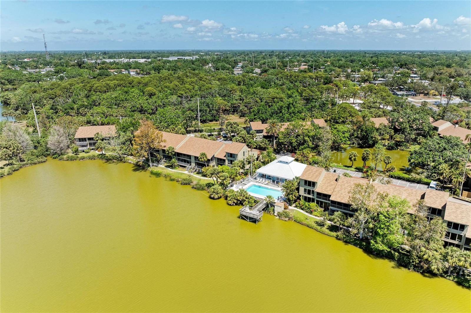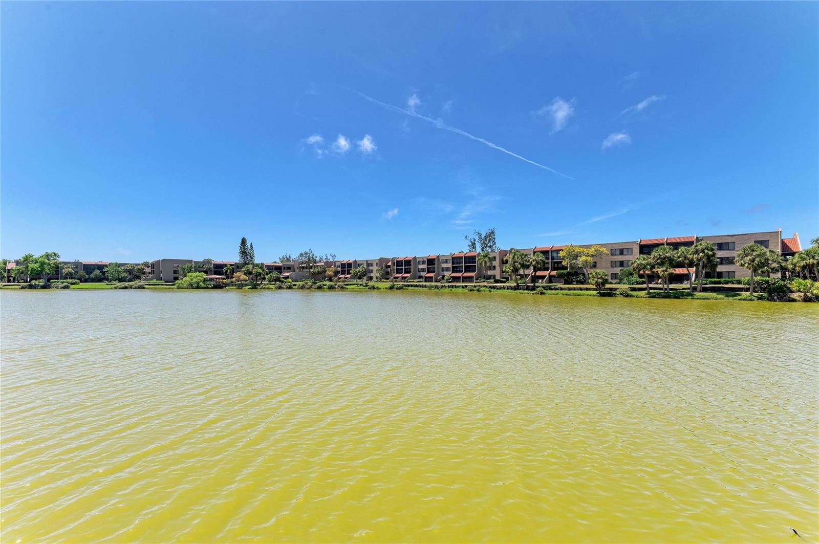 Discover easy Florida living in this inviting first floor condo in the desirable Lake Arrowhead community of Sarasota, offering residents a gorgeous heated community pool, a clubhouse with lakeside views and guest parking available for visitors. Just steps from the Red Bug Slough Trail, you’ll enjoy immediate access to beautiful nature paths and shaded walkways. The community is also only a few miles from world-famous Siesta Key Beach and close to shopping, dining, and entertainment. Inside, you will find a welcoming, light, bright and airy feel to welcome you. Light laminate flooring extends through the entry hallway, kitchen, and dining nook, while tile flooring enhances the main living area. An open floorplan and high ceilings create a spacious environment, with a clear sightline from the front entry straight through to the large, private, screen-enclosed lanai with peaceful lake views. The lanai is accessible from both the living room and the primary bedroom, and the views of the lake and brings the serene setting right to your back doorstep. The kitchen features a generous passthrough opening to the dining and living area, offering excellent flow for everyday living and entertaining. Granite countertops, rich redwood Shaker cabinets, stainless steel appliances, and an in-kitchen dining nook create a warm and functional space, with a bar top seating option for added flexibility. The primary bedroom suite enjoys peaceful water views and direct access to the lanai through sliding glass doors. Its en-suite bath includes a separate vanity area and a private toilet and shower closet for convenience. The spacious guest bedroom can be accessed from both the hallway and the main living area, and the guest bathroom offers a large vanity and shower/tub combo. Additional features include a laundry closet conveniently located near the kitchen, and carport parking with an attached shed for added storage. Blending comfort, convenient access to Sarasota’s best attractions, and natural beauty, this lakeside retreat is ready to welcome you home. Wake up to water views, step into nature, and live the relaxed Florida lifestyle you’ve been dreaming of! Come see, come sigh and make this home your own.