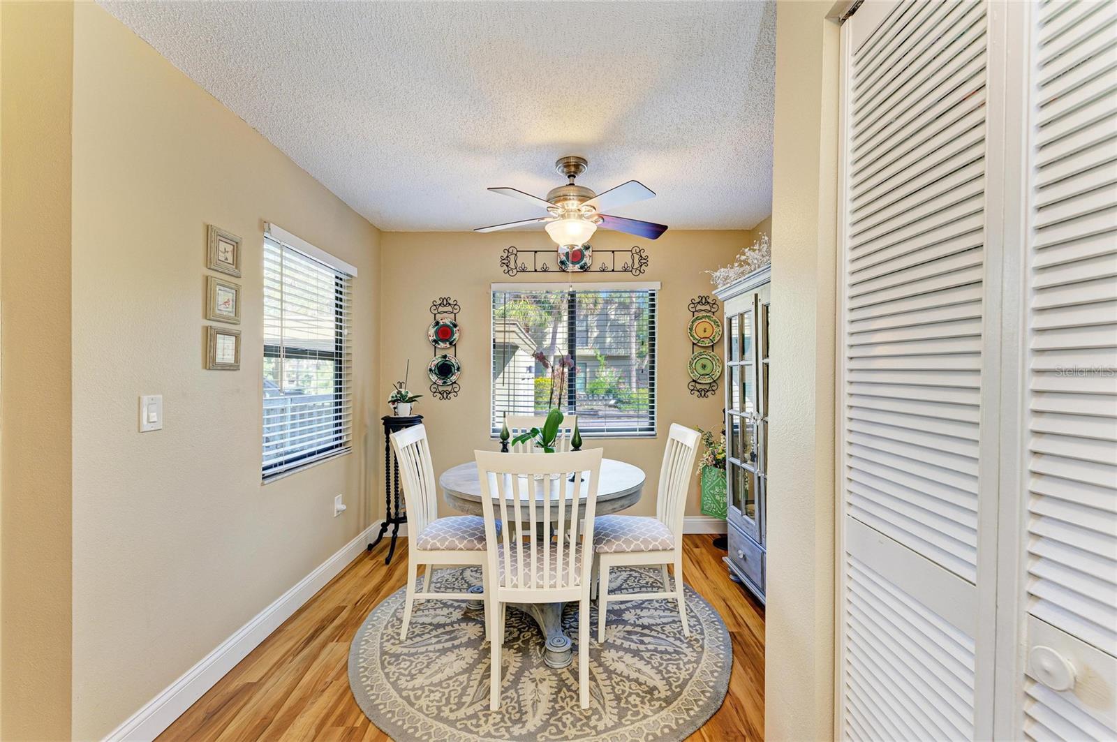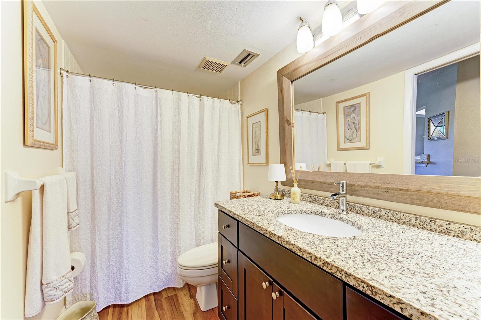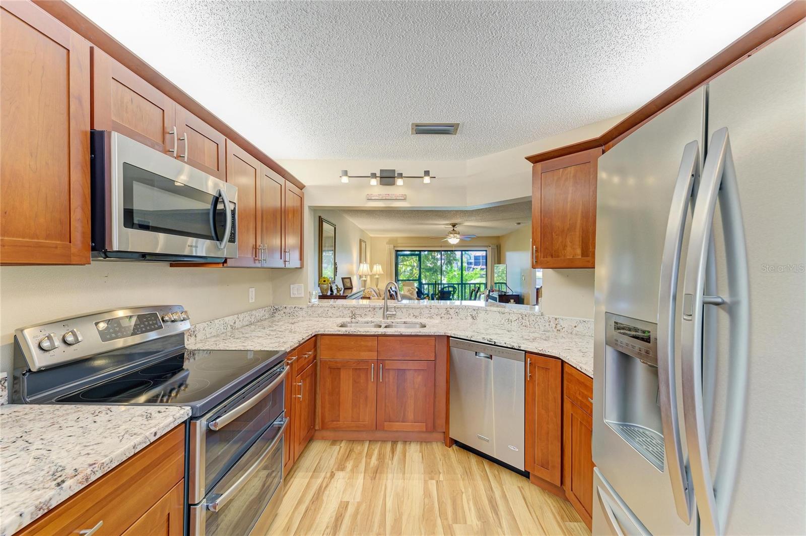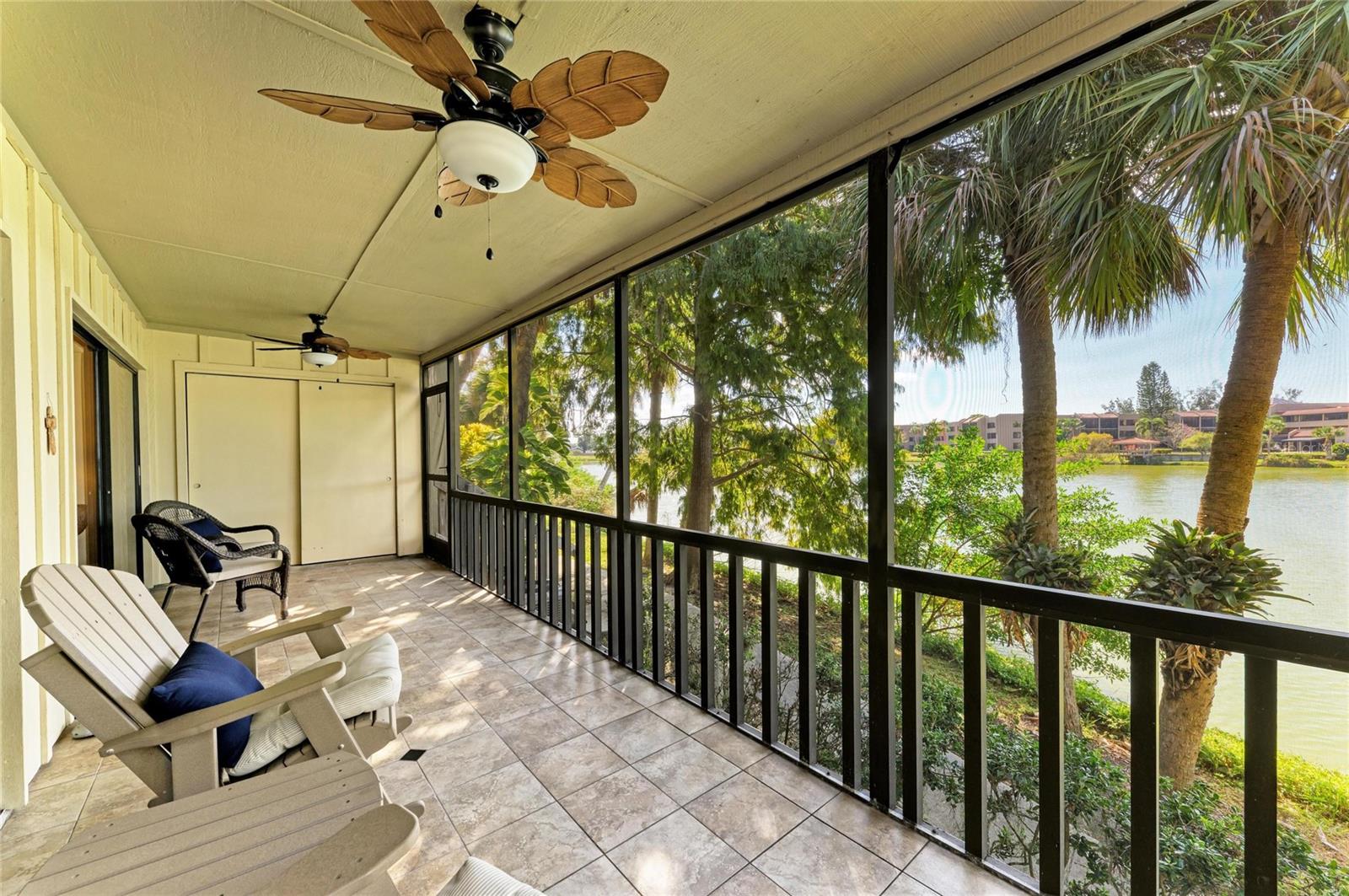 Discover easy Florida living in this inviting first floor condo in the desirable Lake Arrowhead community of Sarasota, offering residents a gorgeous heated community pool, a clubhouse with lakeside views and guest parking available for visitors. Just steps from the Red Bug Slough Trail, you’ll enjoy immediate access to beautiful nature paths and shaded walkways. The community is also only a few miles from world-famous Siesta Key Beach and close to shopping, dining, and entertainment. Inside, you will find a welcoming, light, bright and airy feel to welcome you. Light laminate flooring extends through the entry hallway, kitchen, and dining nook, while tile flooring enhances the main living area. An open floorplan and high ceilings create a spacious environment, with a clear sightline from the front entry straight through to the large, private, screen-enclosed lanai with peaceful lake views. The lanai is accessible from both the living room and the primary bedroom, and the views of the lake and brings the serene setting right to your back doorstep. The kitchen features a generous passthrough opening to the dining and living area, offering excellent flow for everyday living and entertaining. Granite countertops, rich redwood Shaker cabinets, stainless steel appliances, and an in-kitchen dining nook create a warm and functional space, with a bar top seating option for added flexibility. The primary bedroom suite enjoys peaceful water views and direct access to the lanai through sliding glass doors. Its en-suite bath includes a separate vanity area and a private toilet and shower closet for convenience. The spacious guest bedroom can be accessed from both the hallway and the main living area, and the guest bathroom offers a large vanity and shower/tub combo. Additional features include a laundry closet conveniently located near the kitchen, and carport parking with an attached shed for added storage. Blending comfort, convenient access to Sarasota’s best attractions, and natural beauty, this lakeside retreat is ready to welcome you home. Wake up to water views, step into nature, and live the relaxed Florida lifestyle you’ve been dreaming of! Come see, come sigh and make this home your own.