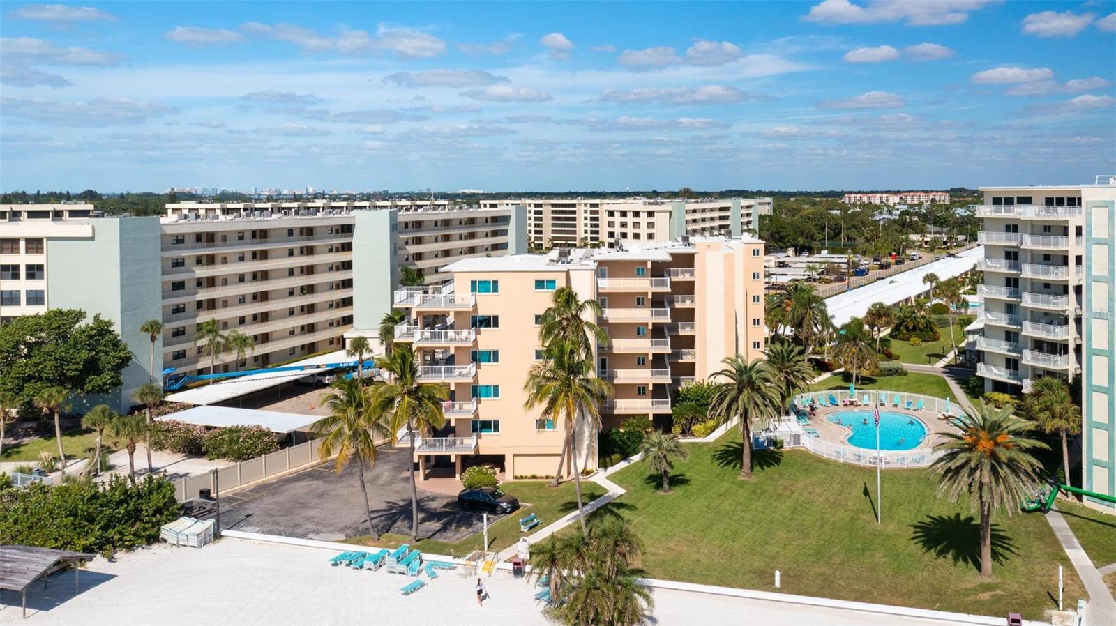 Siesta Key Beachfront Living at Jamaica Royale--Experience the best of coastal Florida in this fully renovated two-bedroom, two-bath condominium, perfectly situated on world-famous Siesta Key Beach. With 300 feet of private, powder-white quartz sand just steps away and no roads to cross, this Jamaica Royale residence delivers true beachfront living on a quiet, private lane. Step inside to a bright, open-concept layout featuring luxury flooring throughout. The gourmet kitchen shines with stainless steel appliances, quartz countertops, custom soft-close cabinetry, and stylish finishes. The spacious primary suite offers a serene retreat with a beautifully updated en-suite bath and walk-in shower, plus extra-deep double closets in both bedrooms for abundant storage. Recent upgrades include a new roof (2022), new water heater, new A/C, new appliances, updated plumbing, contemporary interior doors, and hardware—everything has been thoughtfully refreshed for move-in-ready comfort. Enjoy your morning coffee on the private patio, take advantage of convenient in-unit laundry, and park right outside your door. Resort-style amenities include three heated pools, plenty of lounge chairs, and lush tropical landscaping. Whether you’re relaxing to the rhythm of the Sunday drum circle, watching breathtaking sunsets, strolling the cool-to-the-touch white sand, or hopping on the free shuttle to Siesta Key Village for dining and shopping—this is relaxed, turnkey beach living at its finest.
