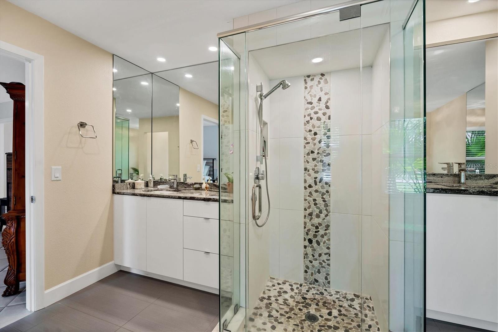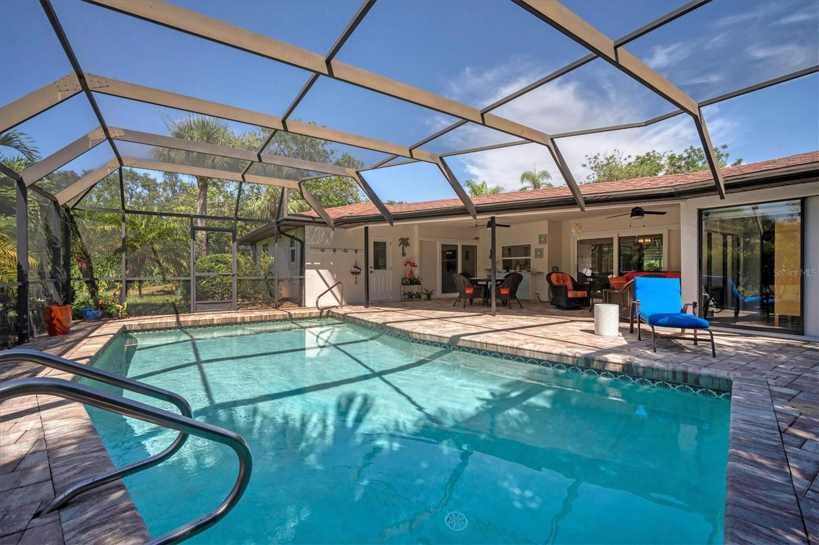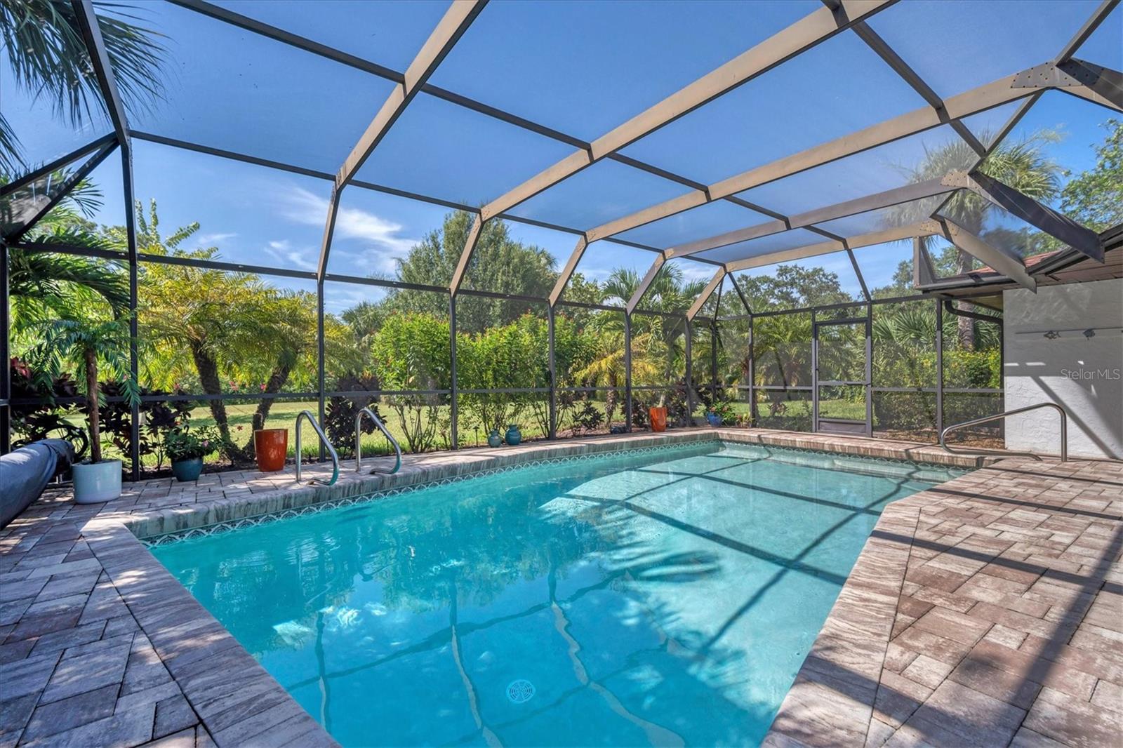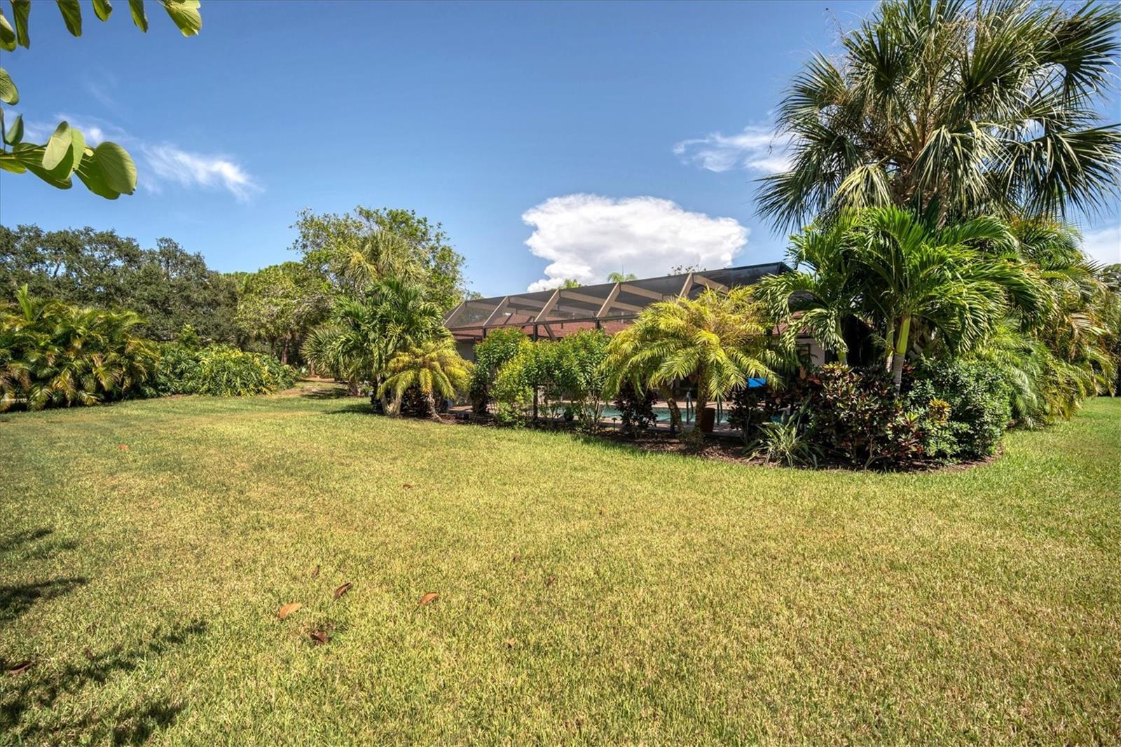 Searching for privacy and a park like setting in a pool home close to it all? You have found it here! This beautiful single story pool home sits elegantly on The Meadows lots 55 and 56 creating over a half acre to enjoy. Offering approximately 2,000 sq ft of climate controlled space with three bedrooms and two bathrooms, this beauty has it all including a 3rd garage bay to store your toys or house your hobbies. Split bedrooms and split living areas provide plenty of space and privacy for all your loved ones to relax and enjoy. Newer roofing and PGT Impact Resistant Glass set the stage for tranquil comfort and qualify for a wind mitigation insurance discount. The primary bedroom features ample space and natural light through large windows. The beautiful primary ensuite bath is fitted with an oversized sunken soaker tub separate of a designer shower. Two additional bedrooms are well-proportioned and can accommodate a variety of furniture configurations. The common full bath is tastefully appointed with modern fixtures and finishes conveniently opening to the pool area. The living area provides a comfortable and inviting space for relaxation or entertaining that seamlessly flows into the dining area. The kitchen is equipped with quality appliances and cabinetry, offering sufficient storage and preparation space and service to the pool guests using the pass-through window. The property's over 300 sq ft of covered poolside patio and unusual lot size allows for potential outdoor enjoyment, with room for landscaping or recreational activities. Plenty of room to increase the size of the residence for those desiring more sq ft of roofline. NOW VACANT and MOVE-IN READY. This home presents a very unique opportunity for those seeking a well-maintained, comfortable living space and a gorgeous park-like setting quick to all the wonderful markets and activities UTC, Nathan Benderson Park and Lakewood Main have to offer.