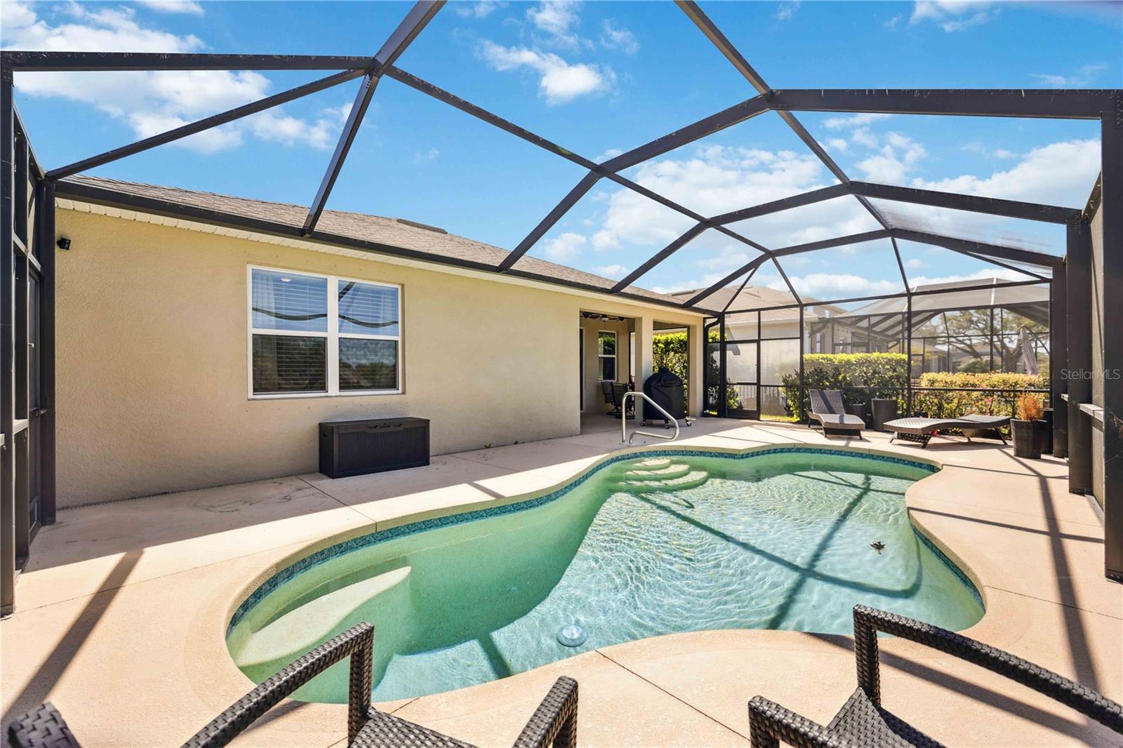 Freshly updated and move-in ready! This immaculate three-bedroom, two-bath pool home in the desirable Bent Tree Fairways community offers comfortable living and modern updates. The interior has just been repainted throughout, and brand-new carpet has been installed in the bedrooms, giving the home a bright, clean feel. The spacious split floor plan features a tiled great room with an electric fireplace and an open kitchen with granite countertops, stainless steel appliances, a convection oven, and rich espresso cabinetry. Step outside to the screened lanai and sparkling saltwater pool overlooking the 18th hole of Bent Tree Golf Club — perfect for entertaining or relaxing at sunset. The fenced yard offers privacy, landscaping, and a pull-down sunshade for added comfort. Additional highlights include an indoor laundry room, generous storage, and a two-car garage. Ideally located near I-75, top-rated schools, and Sarasota’s best shopping, dining, and beaches, this home is ready for immediate occupancy!