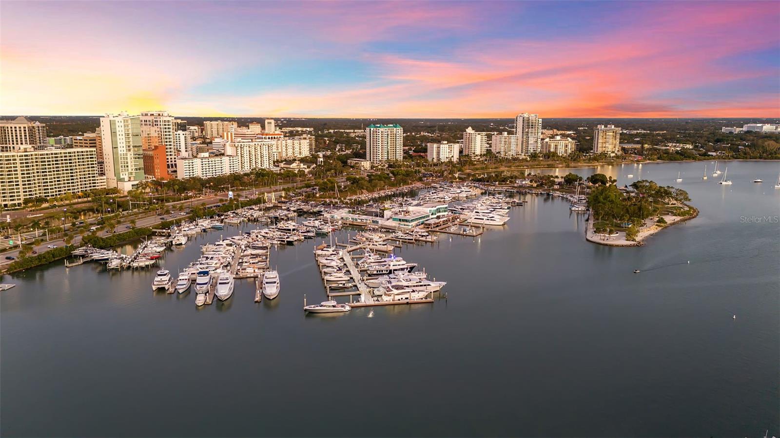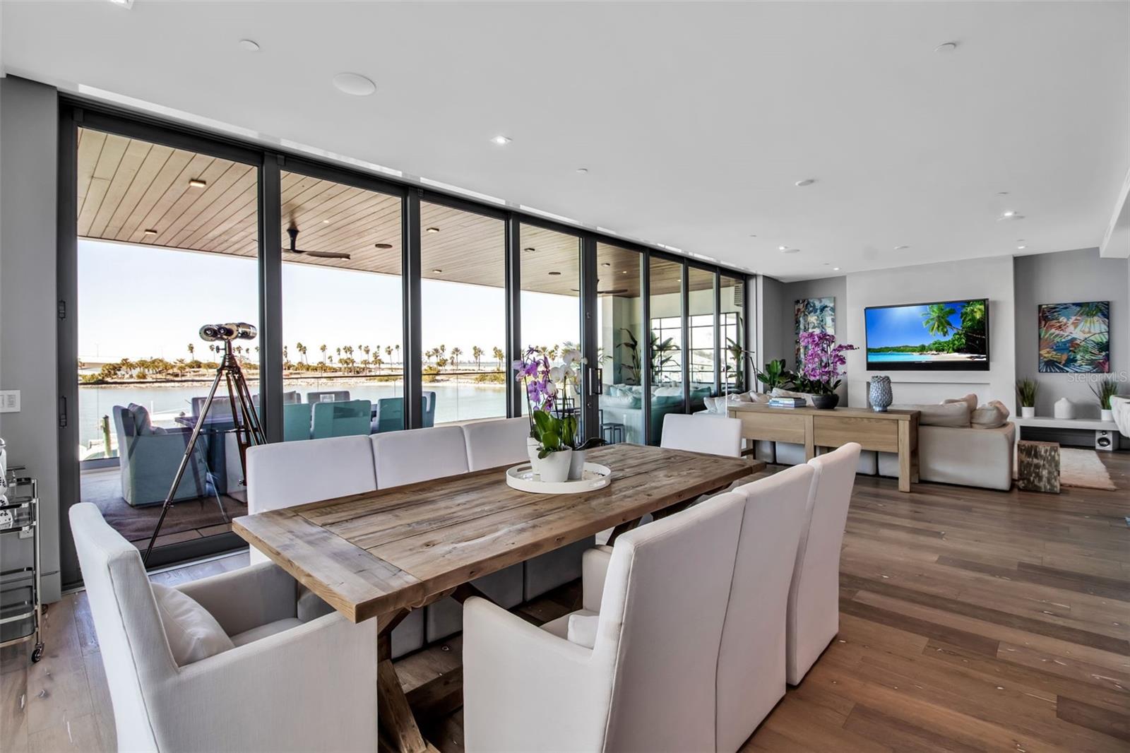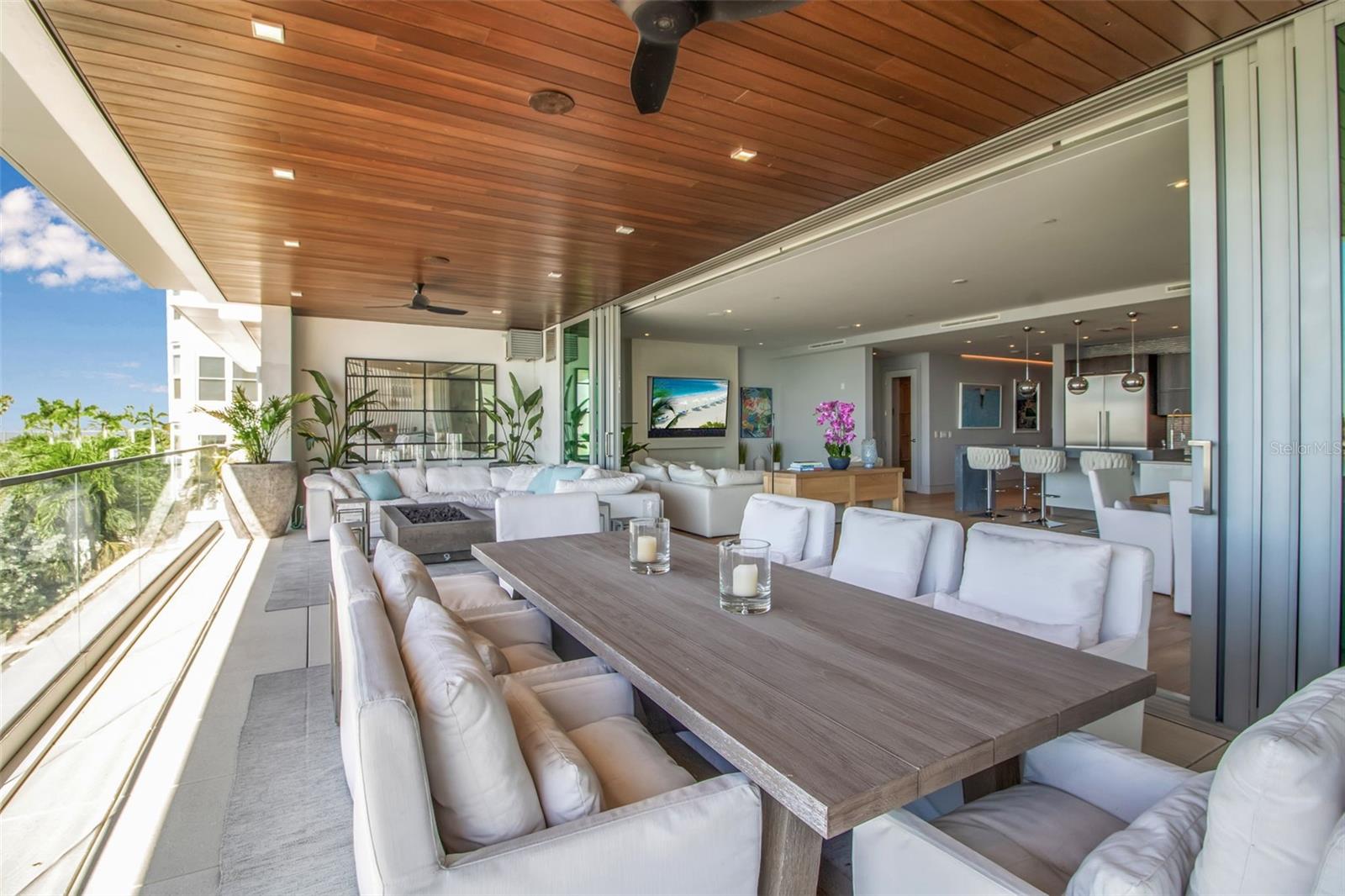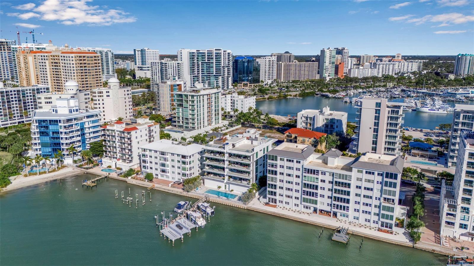 Modern waterfront sophistication takes center stage in this exceptional residence at One88 on Golden Gate Point, a boutique architectural landmark offering just eight private condominiums on Sarasota Bay. Widely regarded as one of Sarasota’s most exclusive addresses, One88 delivers a rare combination of privacy, design distinction, and unobstructed bayfront living. Upon entering the residence, a refined yet highly functional interior unfolds, thoughtfully curated with premier materials and bespoke craftsmanship throughout. Distinguishing features include DuChâteau engineered wood flooring, custom Italian cabinetry by Cucine Ricci, and striking architectural concrete elements by Ben Nettles—featured in the fireplaces, kitchen breakfast bar, and powder bath sink. Additional enhancements include recessed baseboards, two alcohol-burning fireplaces, and a temperature-controlled, 500-bottle wine cellar designed for the serious collector. A full smart-home ecosystem by Wicked Smart Homes seamlessly integrates motorized window treatments, lighting, and surround sound, elevating both convenience and lifestyle. The open-concept kitchen is anchored by a premium Thermador appliance suite, including a dedicated 75+ bottle wine column, complemented by designer Italian cabinetry, a statement tile backsplash, expansive island seating, and a custom-organized walk-in pantry. Positioned to capture sweeping bay views, the kitchen flows effortlessly into the great room, framed by floor-to-ceiling glass doors that open to a 575-square-foot westerly waterfront terrace—creating an exceptional indoor-outdoor living experience unique to this residence with a built-in gas grilling area. As well as 254 sq ft of private Eastern- facing terrace space off the owner’s suite. Secured elevator access into the unit’s foyer, with an additional locking glass door for extra security. The great room offers generous flexibility for furnishing and entertaining, enhanced by a built-in wet bar with dual beverage drawers. The owner’s suite serves as a tranquil retreat, featuring a private morning terrace and a custom spa-style bath unlike any other in the building. Two additional en-suite guest bedrooms, a well-appointed powder room, a spacious laundry room, and multiple storage closets complete the interior layout. This offering includes a private boat dock equipped with a rare 25,000-pound lift, along with two side-by-side parking spaces—one with an additional car lift—plus a utility lift and substantial private storage. Residents of One88 enjoy exclusive amenities including a rooftop terrace, waterfront fire pit, bicycle storage, garage carwash station, and a 70-foot lap pool overlooking Sarasota Bay. Ideally situated on Golden Gate Point, this extraordinary residence is just minutes from downtown Sarasota, St. Armand's Circle, Lido Key, Longboat Key, and Sarasota-Bradenton International Airport—offering unparalleled access to the region’s cultural, culinary, and coastal lifestyle.