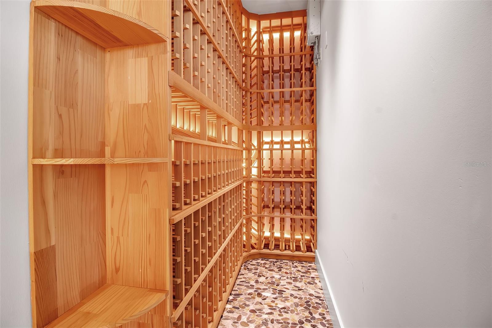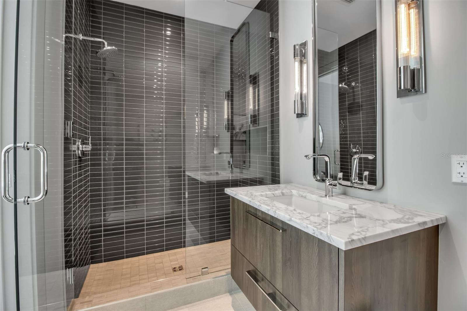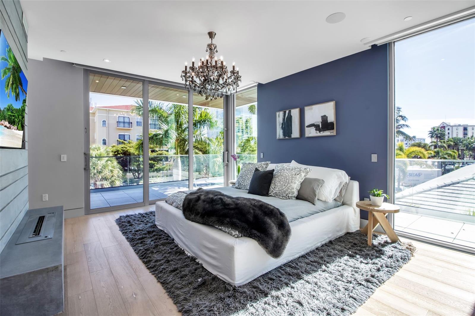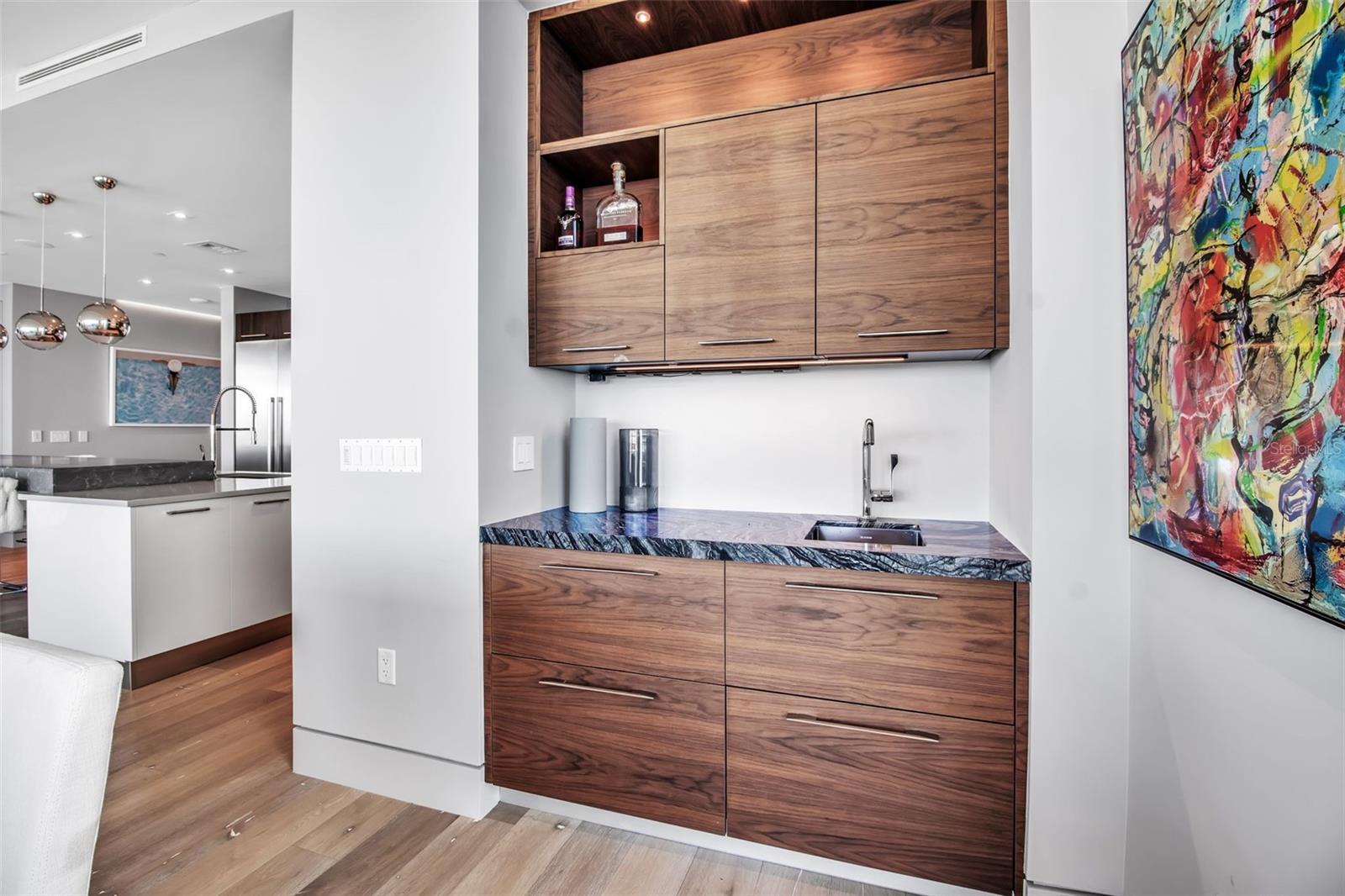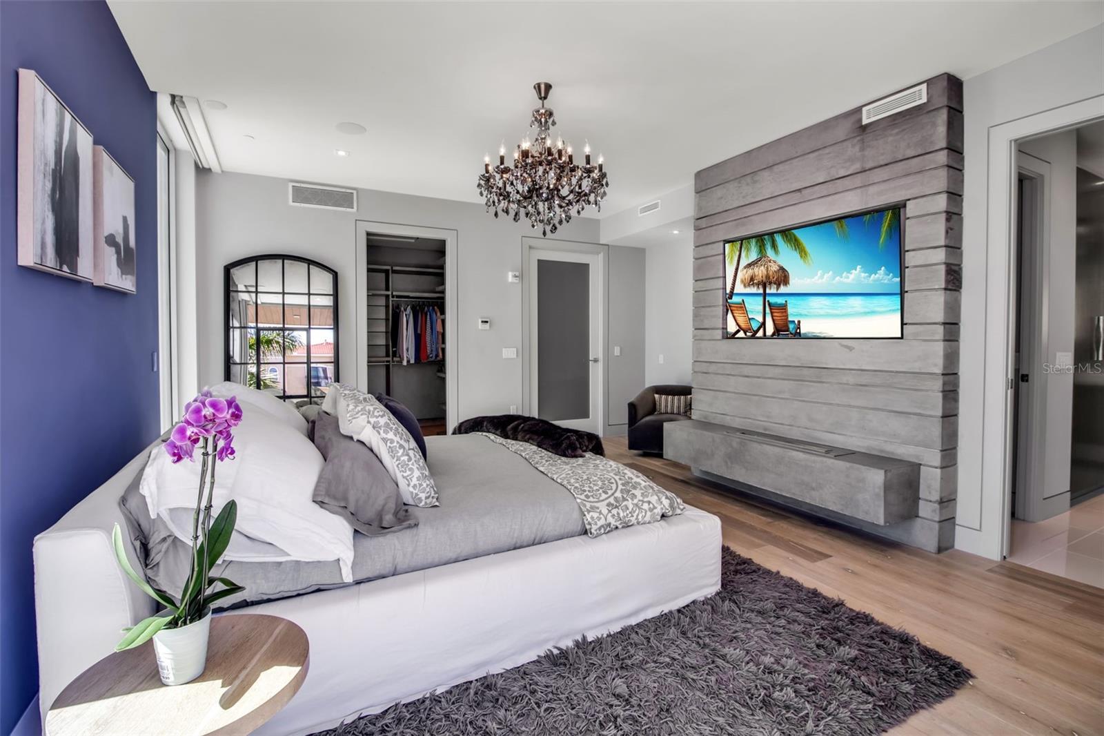 Modern waterfront sophistication takes center stage in this exceptional residence at One88 on Golden Gate Point, a boutique architectural landmark offering just eight private condominiums on Sarasota Bay. Widely regarded as one of Sarasota’s most exclusive addresses, One88 delivers a rare combination of privacy, design distinction, and unobstructed bayfront living. Upon entering the residence, a refined yet highly functional interior unfolds, thoughtfully curated with premier materials and bespoke craftsmanship throughout. Distinguishing features include DuChâteau engineered wood flooring, custom Italian cabinetry by Cucine Ricci, and striking architectural concrete elements by Ben Nettles—featured in the fireplaces, kitchen breakfast bar, and powder bath sink. Additional enhancements include recessed baseboards, two alcohol-burning fireplaces, and a temperature-controlled, 500-bottle wine cellar designed for the serious collector. A full smart-home ecosystem by Wicked Smart Homes seamlessly integrates motorized window treatments, lighting, and surround sound, elevating both convenience and lifestyle. The open-concept kitchen is anchored by a premium Thermador appliance suite, including a dedicated 75+ bottle wine column, complemented by designer Italian cabinetry, a statement tile backsplash, expansive island seating, and a custom-organized walk-in pantry. Positioned to capture sweeping bay views, the kitchen flows effortlessly into the great room, framed by floor-to-ceiling glass doors that open to a 575-square-foot westerly waterfront terrace—creating an exceptional indoor-outdoor living experience unique to this residence with a built-in gas grilling area. As well as 254 sq ft of private Eastern- facing terrace space off the owner’s suite. Secured elevator access into the unit’s foyer, with an additional locking glass door for extra security. The great room offers generous flexibility for furnishing and entertaining, enhanced by a built-in wet bar with dual beverage drawers. The owner’s suite serves as a tranquil retreat, featuring a private morning terrace and a custom spa-style bath unlike any other in the building. Two additional en-suite guest bedrooms, a well-appointed powder room, a spacious laundry room, and multiple storage closets complete the interior layout. This offering includes a private boat dock equipped with a rare 25,000-pound lift, along with two side-by-side parking spaces—one with an additional car lift—plus a utility lift and substantial private storage. Residents of One88 enjoy exclusive amenities including a rooftop terrace, waterfront fire pit, bicycle storage, garage carwash station, and a 70-foot lap pool overlooking Sarasota Bay. Ideally situated on Golden Gate Point, this extraordinary residence is just minutes from downtown Sarasota, St. Armand's Circle, Lido Key, Longboat Key, and Sarasota-Bradenton International Airport—offering unparalleled access to the region’s cultural, culinary, and coastal lifestyle.