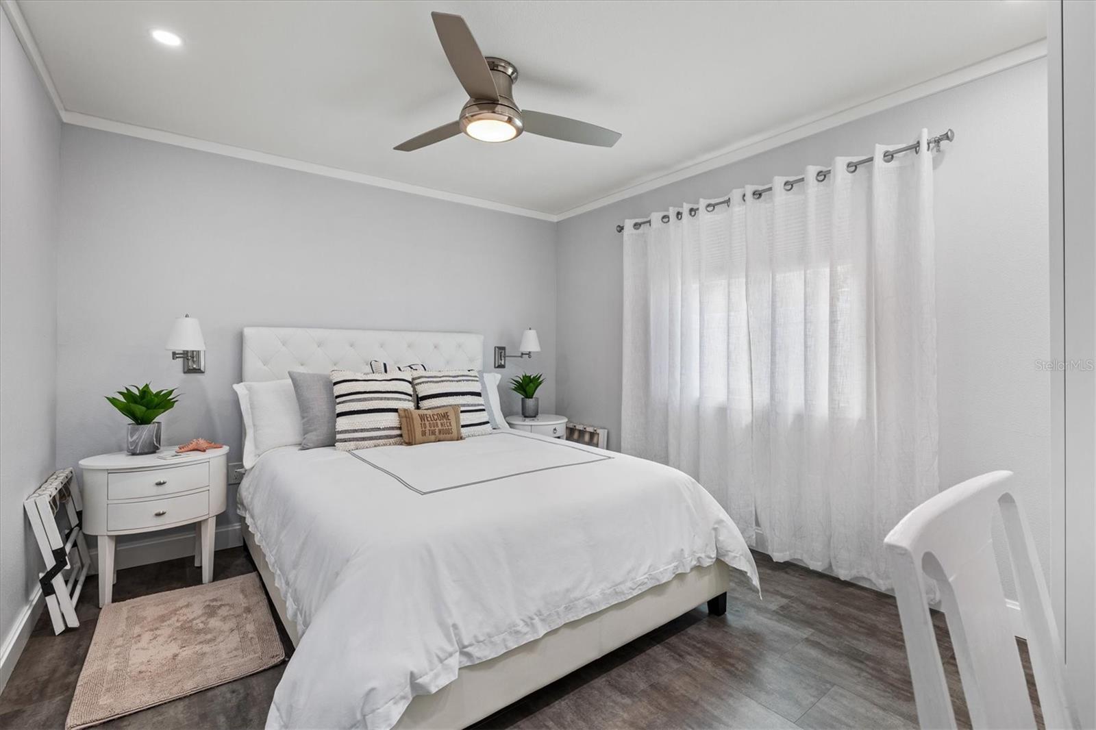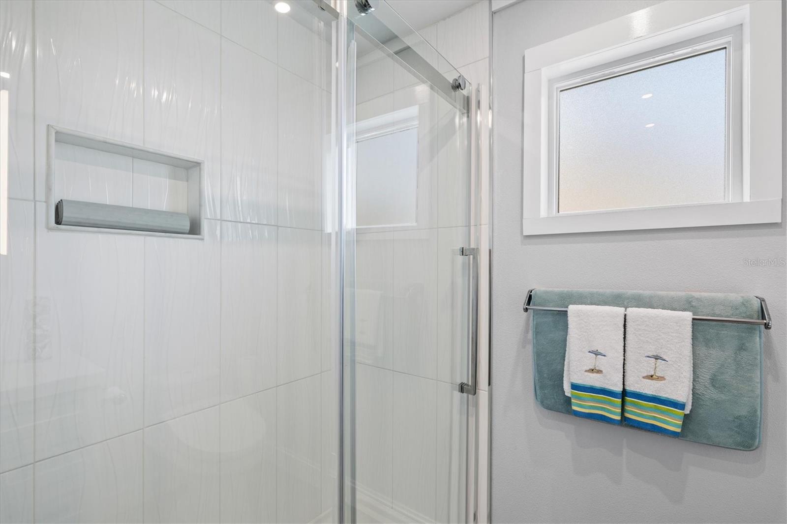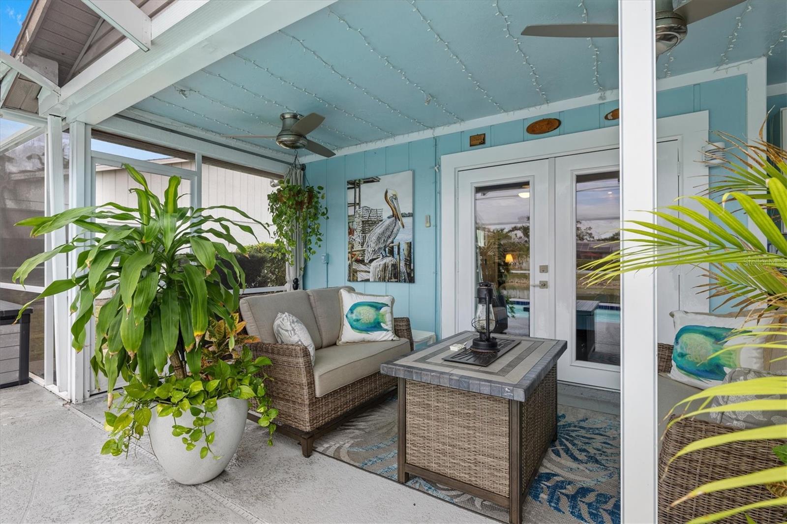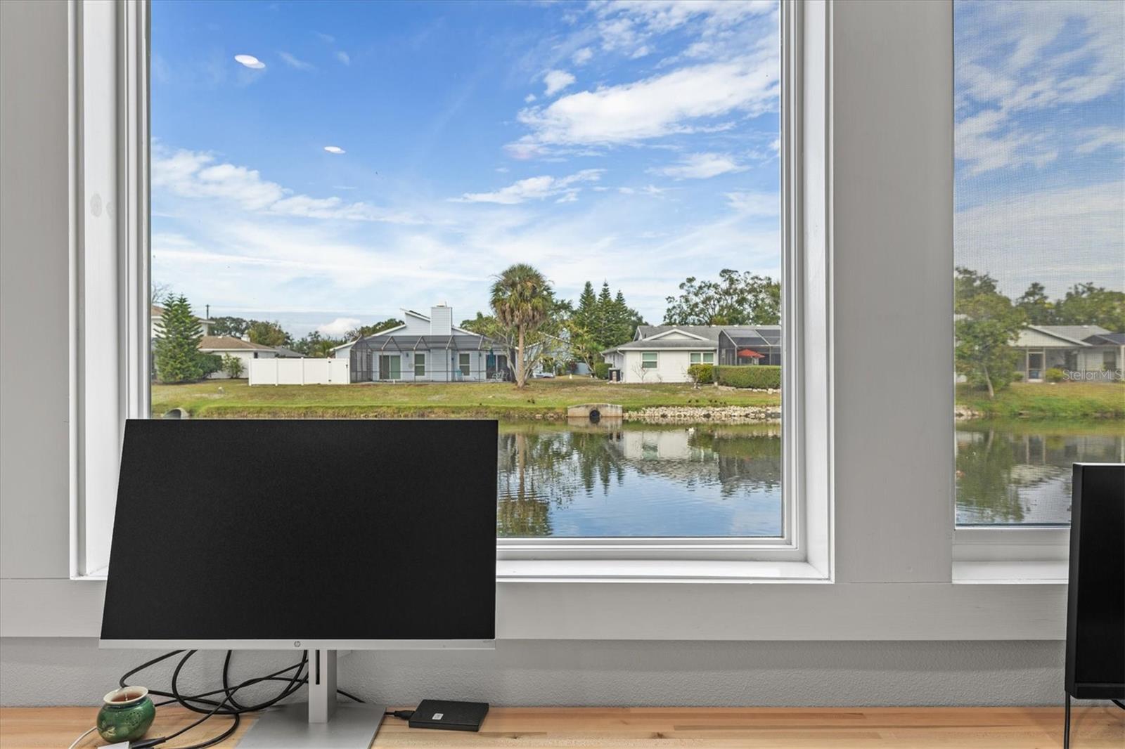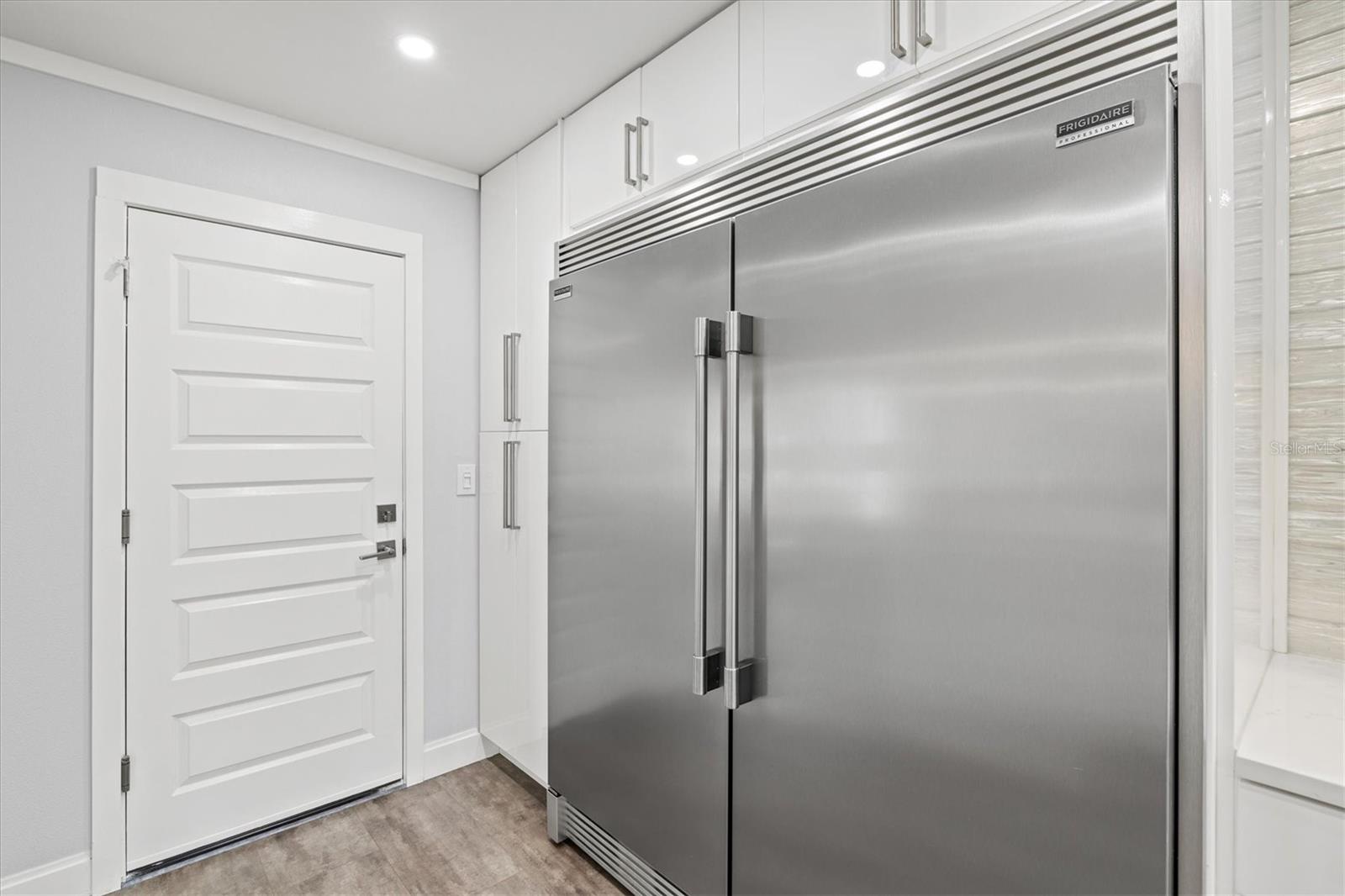 Everything has been done for you, top to bottom, in this completely renovated 3 bedroom, 2 bath, single-story home in Glenbrooke. The kitchen is a chef’s dream with European style high-gloss cabinetry, five-burner propane cooktop stove with pot filler and commercial grade range hood, two electric convection wall ovens, built-in drawer-style microwave and in-kitchen pantries with sliding baskets. You’ll have plenty of space to stock up and prep meals for the week with the full size, side-by-side refrigerator and freezer. Soft close drawers and quartz countertops put the finishing touches on this culinary haven. In the family room, a propane fireplace adds a cozy ambiance on cool evenings. Tall windows bring in plenty of natural light and provide water views. The dining area is thoughtfully designed with access to serving drawers at the breakfast bar, vaulted ceiling, and french doors leading to the pool enclosure and outdoor living space. The primary suite also has direct access to the pool enclosure and features and ensuite bath with marble vanity and dual sinks at counter height, backlit mirrors and frameless glass shower. Two guest rooms and a full bath on the opposite side of the home provide privacy for friends and family (one room currently used as an office). The outdoor space is pleasant for entertaining, with solar heated pool plus solar cover, and a view of the pond, and covered seating area. A propane line is available to connect to a grill. This home was fully renovated to the studs in 2019 as a forever home (not a flip) and brought to hurricane standards including reinforced walls, roof, hurricane impact windows and doors. Home is in the X flood zone and does not require flood insurance. Side yard is fenced and gated and includes a 8 x12 storage shed with shelves. This area can be used as a dog run. Garage is fully insulated and has remote controlled heat/cool split system.