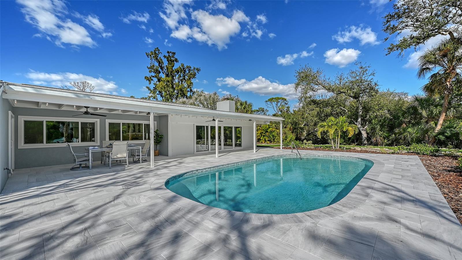 One or more photo(s) has been virtually staged. Set within the gates of the exclusive Sanderling Club on Siesta Key, this exceptional 3-bedroom, 3.5-bath residence presents a rare opportunity to own in one of the island’s most private and storied coastal communities. The Sanderling is a member-owned, Gulf-to-Bay enclave situated along both the bay and the Gulf, celebrated for its low-density design, lush tropical landscape, iconic banyan canopy, and unparalleled access to Siesta Key’s world-famous quartz sand beach. Residents enjoy boat slips for lease, both a clay and hard court tennis court, and several pickleball courts, enhancing the community’s coastal lifestyle. Adding to its uniqueness, the owners of this home also hold one-ninth ownership of the preserve lot next door, ensuring lasting privacy and the feeling of a protected natural buffer beside the property. Beautifully positioned among mature tropical landscaping, this totally renovated home blends timeless charm with meaningful, high-quality upgrades. All windows and doors are impact-rated, offering security, energy efficiency, and a peaceful interior environment. A brand-new roof was installed in 2025, and the home is insulated throughout with isonene foam insulation, creating exceptional climate control, quieter living, and long-term efficiency. Inside, the home is warm, inviting, and designed for relaxed coastal living. The main living spaces feature abundant natural light and tranquil garden views, enhanced by large windows and sliders that connect seamlessly to the surrounding greenery. A rare feature for Siesta Key, the living room includes a fully functioning wood-burning fireplace, creating a cozy focal point for cool winter evenings and adding unique character to the home. The open living and dining areas offer flexible space for entertaining or everyday comfort, while the kitchen provides ample cabinetry, generous workspace, and excellent flow to the surrounding rooms. In addition to the three bedrooms, the home includes a comfortable office ideal for remote work or quiet reading, as well as a large walk-in pantry offering exceptional storage and organization—valuable features that enhance everyday livability. The primary suite is privately situated and offers peaceful views, generous closet space, and an en-suite bath designed for comfort and functionality. Two additional guest suites, each with their own private bathrooms, provide excellent accommodations for family and visitors, while the convenient half bath enhances the main living areas. The layout flows naturally, offering privacy where needed and open gathering spaces where desired. Outdoor living is one of the home’s greatest attributes. Surrounded by mature landscaping and the Sanderling’s natural canopy, the outdoor areas feel serene and secluded. A beautifully installed turf lawn on the side of the home creates a low-maintenance, usable space ideal for pets, play, or additional lounging. A dedicated fire pit area adds to the ambiance, offering the perfect place to gather in the evenings and enjoy the soft Gulf breezes. As a resident of the Sanderling Club, you’ll enjoy access to a members-only beachfront, guard-gated security, clubhouse facilities, tennis and pickleball courts, and boat access—amenities that reflect the community’s architectural heritage, natural beauty, and commitment to privacy. The atmosphere here is timeless serenity, unmatched on the Gulf.