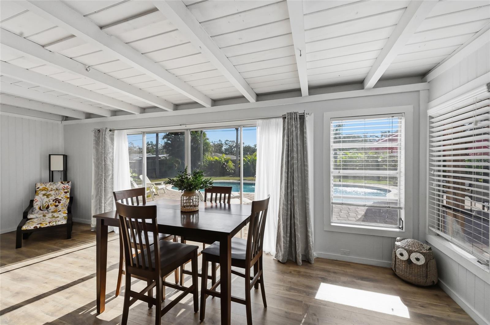 Bright, welcoming, and effortlessly livable—2651 Leafy Lane is one of those homes that simply feels right the moment you arrive. Tucked away in the heart of Sarasota’s beloved South Gate neighborhood, this classic Florida ranch offers an easy blend of comfort, character, and smart updates, all on a generous 0.23-acre lot. Built with solid concrete block construction, the home has been meticulously maintained and thoughtfully improved over time, creating a space that’s as practical as it is inviting. A brand-new roof completed in October 2024, impact-rated front window and garage door, 2019 HVAC system, and a water heater replaced around 2022 all contribute to peace of mind and lower ongoing expenses. At the center of the home, the updated kitchen delivers both function and warmth. Remodeled in 2020, it features cherry wood cabinetry, leathered granite countertops, a farmhouse sink, stone tile backsplash, and stainless steel appliances, with under-cabinet lighting adding a soft glow that works just as well for casual mornings as it does for hosting friends. Both bedrooms are well-sized and comfortable, with the primary suite offering a walk-in closet and an updated en-suite bath complete with a walk-in shower and stone-topped vanity. Updated plumbing fixtures and a whole-house water filtration system round out the interior upgrades, reinforcing the home’s low-maintenance appeal. Out back, your private saltwater pool becomes the star of the show, truly an oasis with it's outdoor fireplace and built-in grill. The fully fenced yard, refreshed in 2018, is beautifully landscaped. With no HOA, no CDD fees, and a non-flood-zone location, this home offers an ownership experience that’s refreshingly uncomplicated. South Gate’s charm extends beyond the front door, with walkable access to local dining, cafés, boutiques, and neighborhood favorites. An optional community center and pool are available, though it’s hard to imagine needing more than what you already have at home. Whether you’re looking for a primary residence, a seasonal retreat, or a rental opportunity, this property delivers comfort, flexibility, and long-term value in one of Sarasota’s most established neighborhoods. Easy living, smart updates, and a location that never goes out of style—this is South Gate at its most inviting.