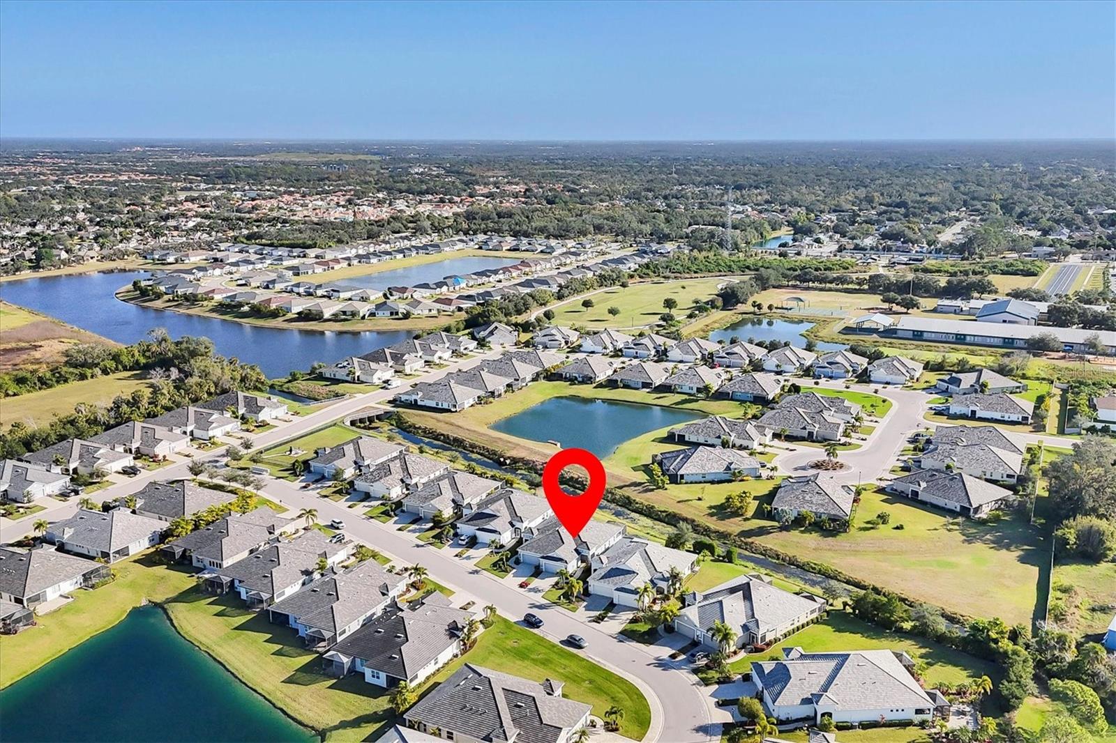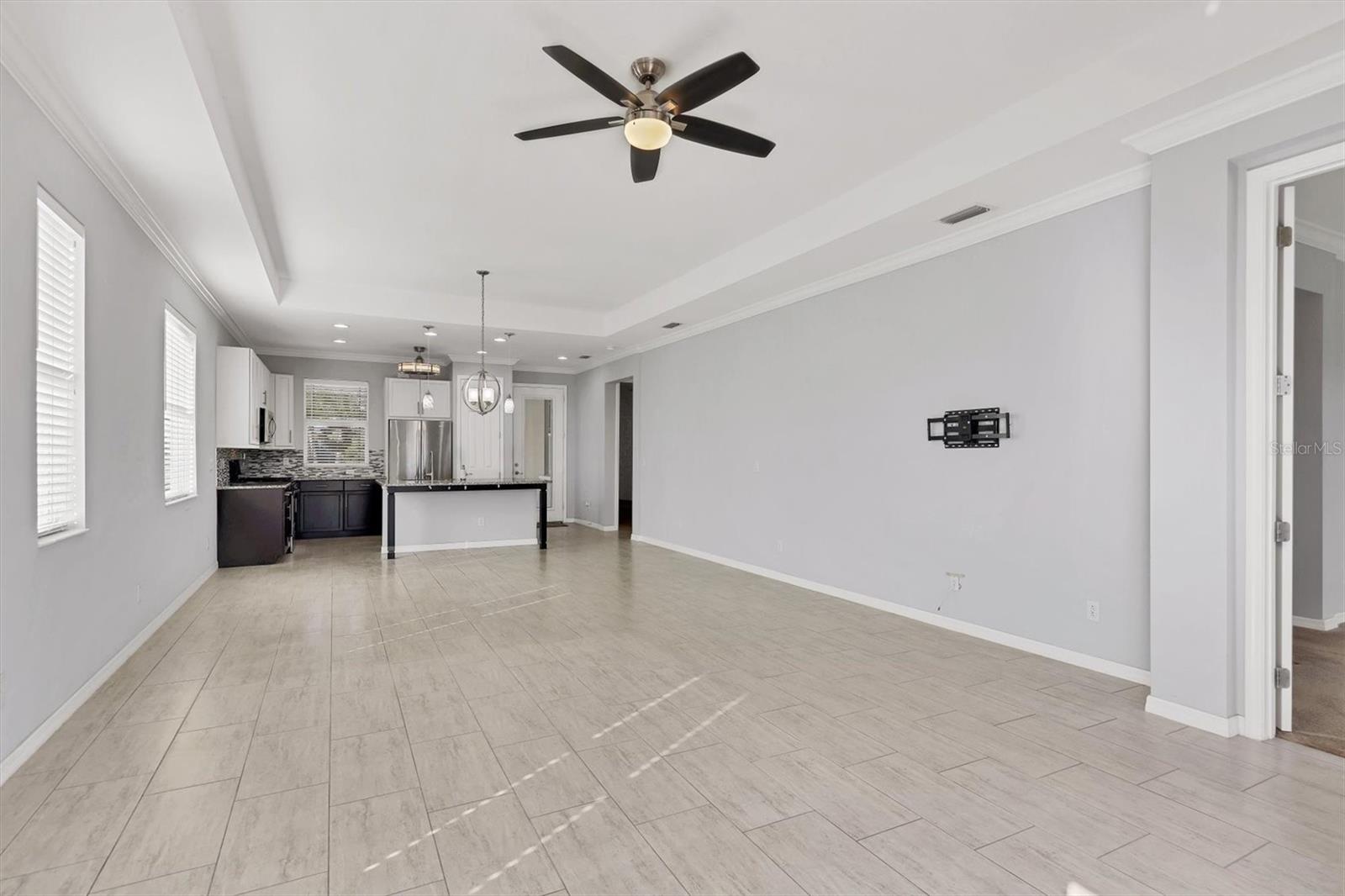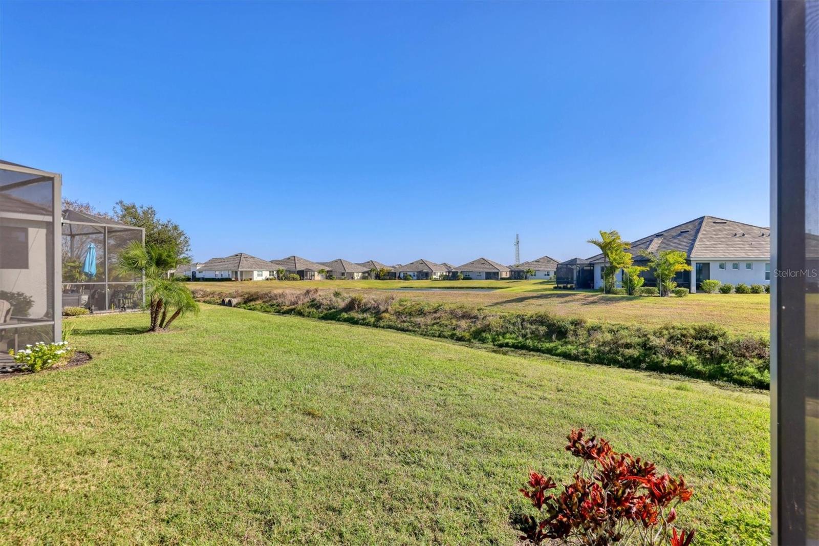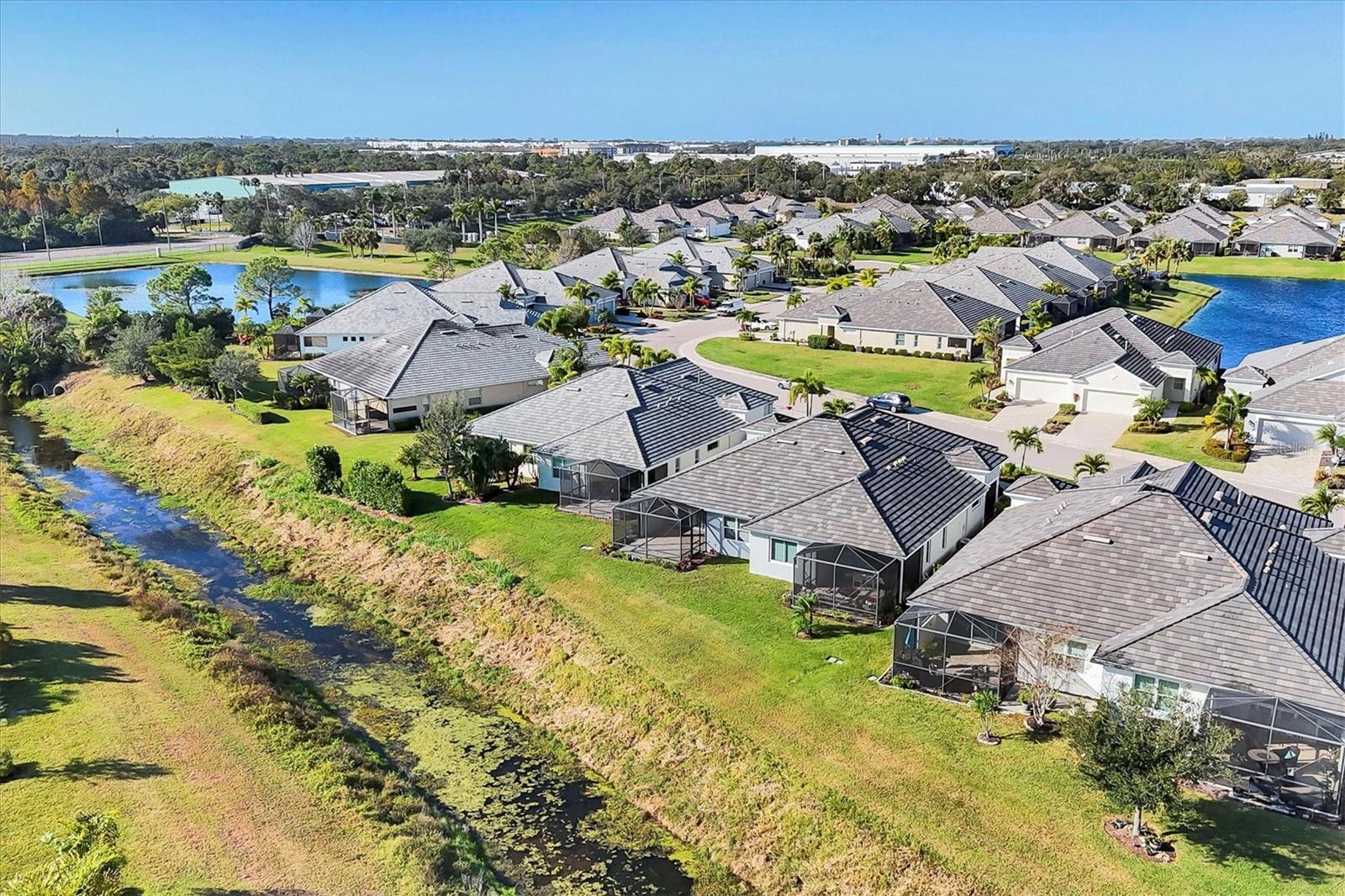 A wide-open layout, stylish finishes throughout, and a peaceful backyard setting define this 2-bedroom, 2-bath villa in University Village. The kitchen sits at the heart of the home, featuring abundant cabinetry, generous granite counter space, stainless steel appliances, and room for bar seating—an easy place to start the day, linger over meals, or settle in with a laptop and a cup of coffee. The dining area and living room connect seamlessly beneath a tray ceiling that adds architectural depth and a sense of openness to the main living space. Sliding doors draw you out to an extended paver lanai, creating a natural extension of the home with room to relax, dine, or simply enjoy the open backyard backdrop. Privately positioned off the back of the living area, the primary bedroom is set apart from the rest of the home, offering a quiet place to reset with two walk-in closets that provide generous, well-planned storage. The en suite bathroom is designed for efficiency and ease, featuring dual vanities and a linen closet that keeps daily essentials neatly within reach. The split-bedroom layout places the second bedroom at the front of the home with a full bathroom just outside, providing flexibility for guests, work-from-home needs, or everyday living that adapts over time. A dedicated laundry room adds another layer of practicality, complete with cabinetry and counter space that keeps storage organized and out of sight. University Village offers a setting that supports an easy, flexible routine, with sidewalks woven throughout the neighborhood, a resort-style community pool, and a dedicated dog park with shaded seating and tables. Association-maintained grounds, along with cable and internet, support a low-maintenance way of living while giving residents the freedom to enjoy the community with fewer day-to-day demands.With its open layout, extended lanai, and low-maintenance setting in University Village, this villa is ready for its next owner—schedule your private showing today!