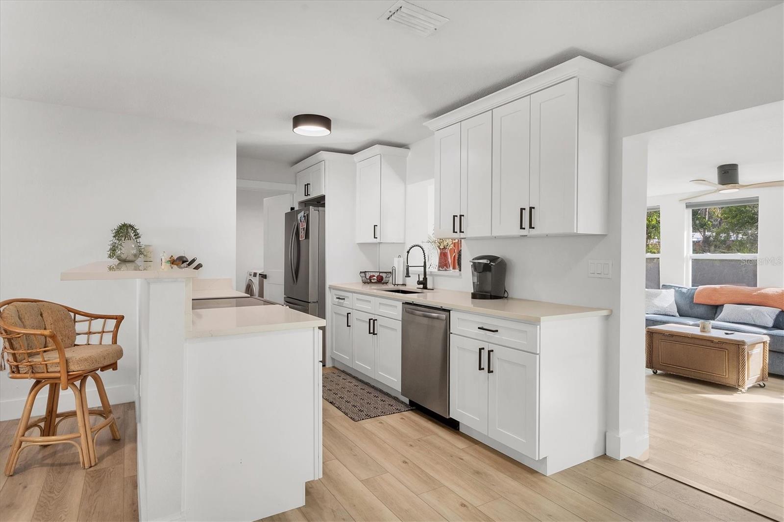 SARASOTA SINGLE FAMILY HOME with 3-bedroom, 1-bath home where comfort, functionality, and style come together seamlessly. Thoughtful updates include LVP flooring throughout, modern kitchen with quartz counters, shaker-style cabinetry and new appliances. Laundry Room includes washer and dryer. New roof 2025. With no HOA. One of the standout features is the air-conditioned Florida room—perfect as an additional living area, home office, or entertainment space. Air-conditioned garage ideal for a workshop, fitness area, or secure storage. Outside, fenced backyard, dedicated BBQ area and storage shed with electric and a window unit. Centrally located just minutes from I-75, shopping, dining, and schools, and approximately 15 minutes from Siesta Key Beach and downtown Sarasota, this move-in-ready home offers a rare combination of upgrades, versatility, and location—perfect for enjoying the Sarasota lifestyle from day one.