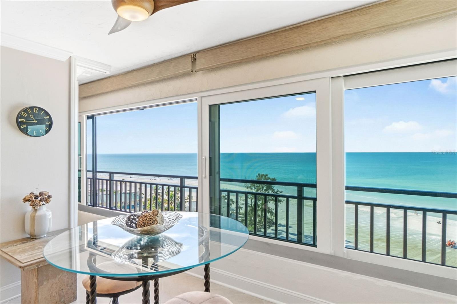 Experience elevated coastal living in this beachfront penthouse condo on Siesta Key, where direct Gulf views greet you the moment you walk through the door. Bathed in natural light, this turnkey furnished residence captures breathtaking sunsets and offers an effortless blend of luxury and comfort. The bright kitchen is thoughtfully designed with granite countertops and solid wood cabinetry, perfect for both everyday living and entertaining. The flexible guest bedroom features Murphy beds, maximizing space while maintaining style and functionality. New impact windows enhance peace of mind while framing endless views of the Gulf. Located within the highly sought-after Whispering Sands, a 25-acre resort-style community, residents enjoy more than 800 feet of private Siesta Beach with powdery white sand. Amenities include two swimming pools, two clubhouses, exercise rooms, a picnic area with tiki hut and grills, kayak and canoe storage, a tranquil lagoon, and meticulously landscaped grounds. Just moments from Siesta Village, this penthouse offers the perfect balance of privacy and proximity to world-class dining, shopping, and entertainment. Whether as a full-time residence or a luxury retreat, this exceptional penthouse delivers the ultimate Siesta Beach lifestyle.
