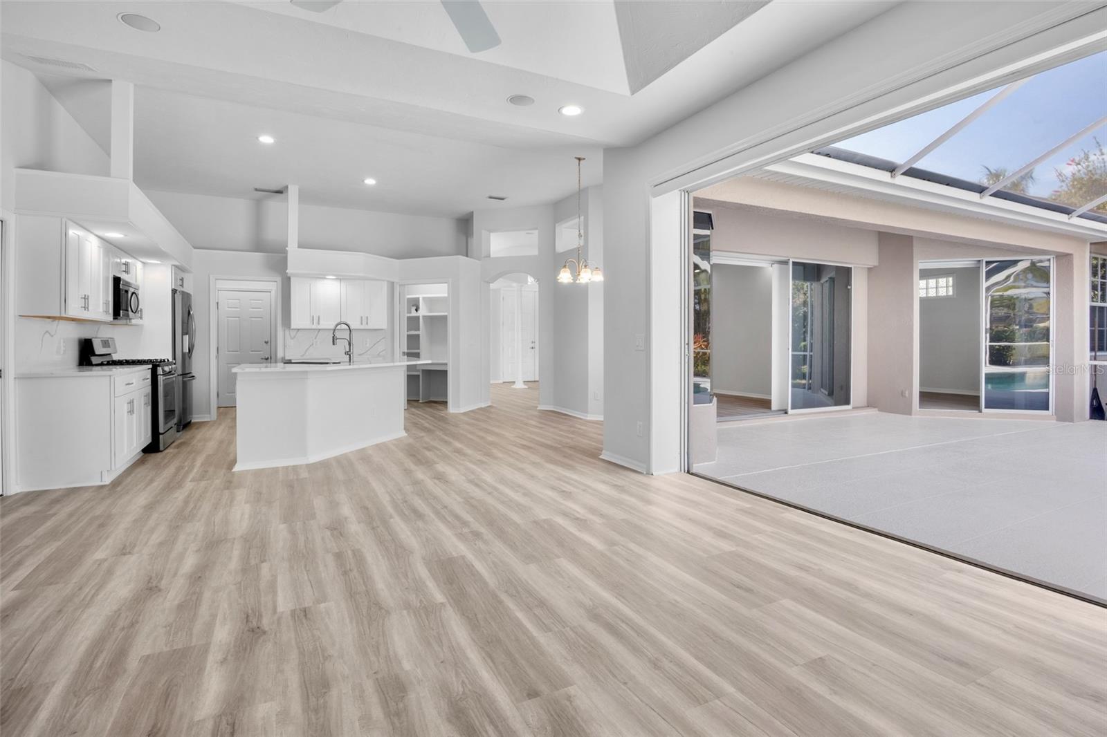 The definition of “move-in ready” has just been elevated with this beautifully updated and elegant Todd Johntson–built WATERFRONT home, ideally located behind the gates of the highly desirable Turtle Rock community in Palmer Ranch, known for its miles of scenic walking and biking trails. Offering just under 2,600 square feet of comfortable living space, this exceptional residence features 4 bedrooms and 3 bathrooms, with the fourth bedroom perfectly suited as an office or flexible living space. Extensively refreshed and meticulously maintained, this home is truly ready for its next fortunate owners. Recent upgrades include a complete interior and exterior repaint in today’s modern color palette, luxury vinyl flooring throughout, and a FULLY RENOVATED KITCHEN showcasing brand-new shaker-style cabinetry, quartz countertops with a matching backsplash, and a farmhouse sink with an elegant faucet. The kitchen is further enhanced by stainless steel appliances, including a natural gas range (Turtle Rock is a natural gas community), dishwasher, microwave, a side-by-side refrigerator with drawer, and an additional refrigerator in the laundry room for added convenience. The house has been completely repipped for peace of mind. Both the primary and guest bathrooms have also been tastefully updated. Additional improvements include a freshly painted garage and a newly finished garage floor. Other notable features are a roof replaced in 2015, an energy-efficient air-conditioning system for economical climate control, and an oversized primary suite with custom built-ins in the spacious walk-in closet. High ceilings, spacious rooms, multiple sliding glass doors, and an aquarium window in the kitchen nook fill the home with abundant natural light while highlighting the beautiful surrounding scenery., LED lighting throughout for more of the updated look and aditional energy savings. The open and airy kitchen sits at the heart of the home and flows seamlessly to the covered lanai and expansive, fully screened outdoor living area. A generously sized pool and tranquil lake views provide the perfect backdrop for family gatherings and year-round entertaining. Residents of Turtle Rock enjoy an optional active social calendar, a community center, heated pool, and tennis courts basket and pickleball courts . Ideally located just minutes from shopping, dining, world-class entertainment, the Legacy Trail, and the world-famous Siesta Key Beach. Schedule your private showing today—this exceptional home will not last.