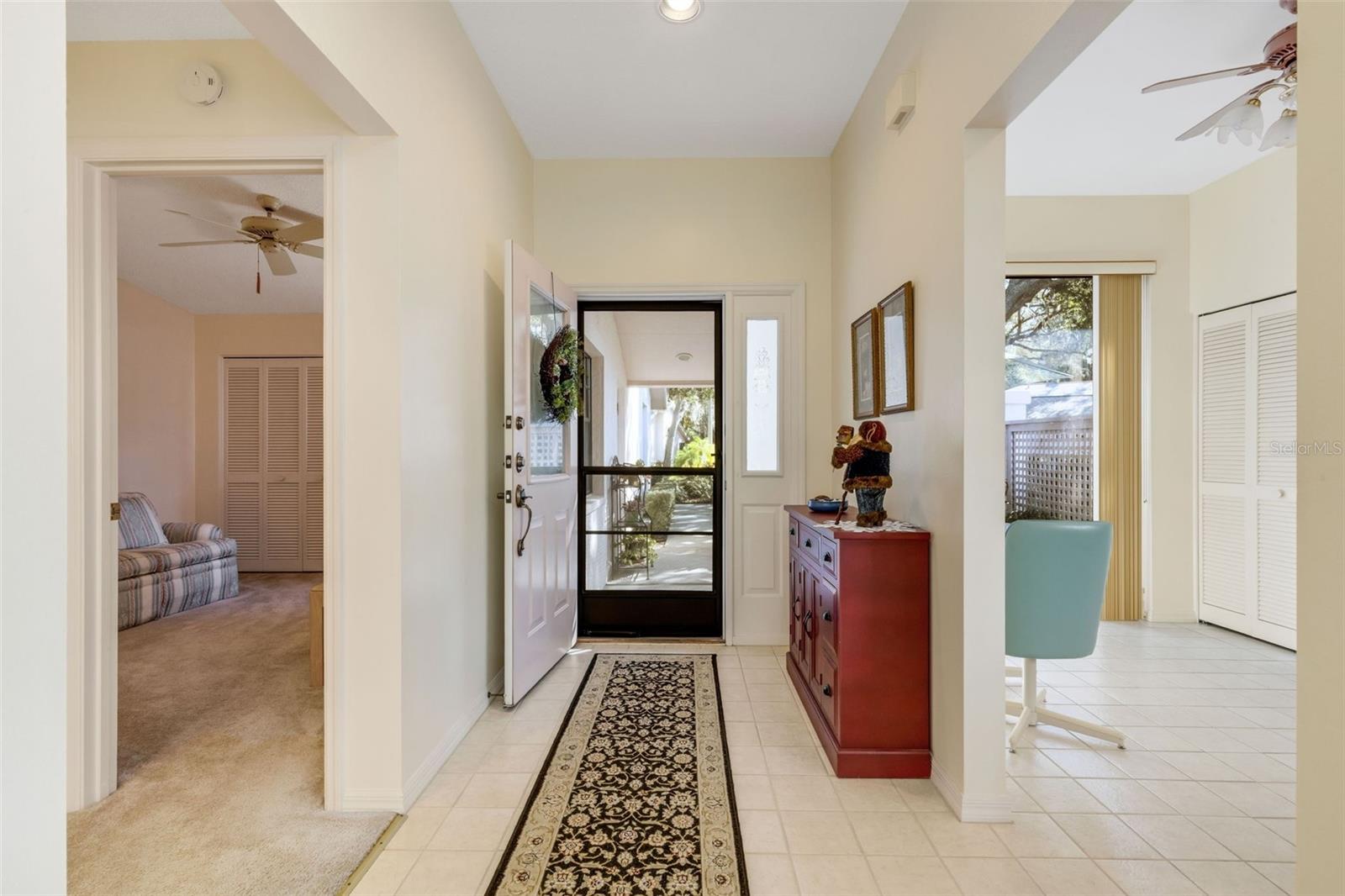 OPEN HOUSE FRIDAY 12/26 from 1:00-3:00. This charming end-unit villa offers two bedrooms and two bathrooms in the desirable Meadows community. Meticulously maintained and completely maintenance-free, the home is in excellent condition and designed for easy, single-level living. A lattice-enclosed patio off the kitchen and a spacious rear lanai with sliding doors provide wonderful indoor-outdoor living, while the expansive grassy backyard is ideal for play or relaxation. Vaulted ceilings and a large dining-room window with plantation shutters fill the home with natural light, creating an open and airy feel. The eat-in kitchen features granite countertops and newer appliances. The generous primary suite boasts a vaulted ceiling, walk-in closet, and en-suite bathroom with a large dual-sink vanity and a walk-in shower with built-in bench. Additional highlights include an attached one-car garage with durable storage shelving, hurricane-rated roofs installed in 2024, and scheduled exterior painting in early 2026—allowing the new owner to select their front-door color. The Hampstead Heath community pool has also been recently resurfaced. The Meadows is a resort-style community spanning 1,600 park-like acres with 14 miles of biking and hiking trails, a fitness center, Junior Olympic pool, pickleball courts, and a full calendar of activities. Conveniently located near downtown, beaches, the airport, I-75, UTC Mall, Nathan Benderson Aquatic Complex, Mote Marine, and endless shopping, dining, and entertainment. No repairs needed—this villa is spotless, move-in ready, and easy to show.