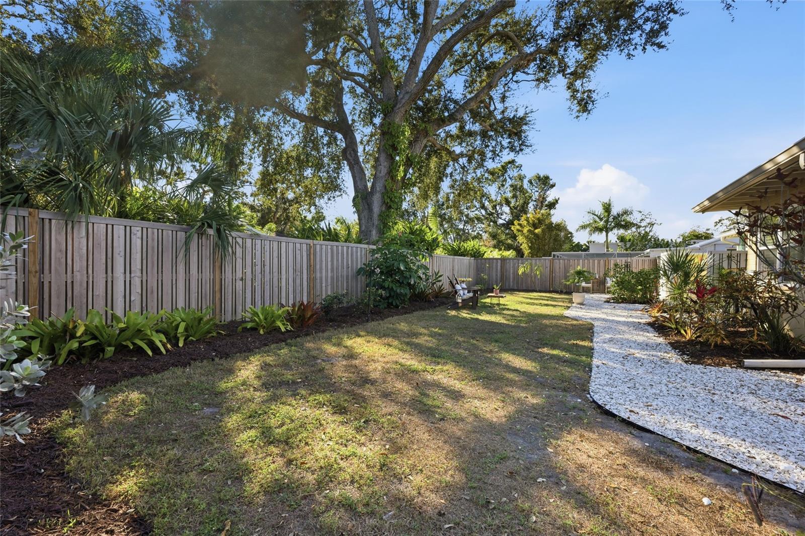 Nestled among tree canopied streets in the sought-after Indian Beach/Sapphire Shores neighborhood west of the Trail, this home blends timeless charm with modern updates – thoughtfully renovated and truly move-in ready. The two bed, one-and-one-half bath home has light filled living spaces with large windows completed with custom fit wood blinds. The interior spaces feel welcoming and effortlessly stylish, while outside, the garden setting combined with the neighborhood’s mature trees and coastal character create a peaceful retreat just minutes from the City’s energy. Recent improvements include a new metal roof, soffits & gutters, new HVAC system, LVP Maple flooring throughout and wonderful outdoor dining and entertaining spaces. Unique features await you like a warm foyer entry, an “eat in” kitchen and an en-suite water closet in the king size primary bedroom. Enjoy the best of Sarasota living; minutes to downtown dining, arts and the recently developed 53-acre waterfront park known as The Bay. Live here and you’ll also be just a short drive (or bike ride!) over the iconic Ringling Bridge to the white-sand beaches of Lido and Longboat Key. Cute, updated, and impeccably maintained, this bungalow offers the rare combination of location, charm and convenience – an ideal full-time residence, weekend escape or investment opportunity in one of Sarasota’s most beloved