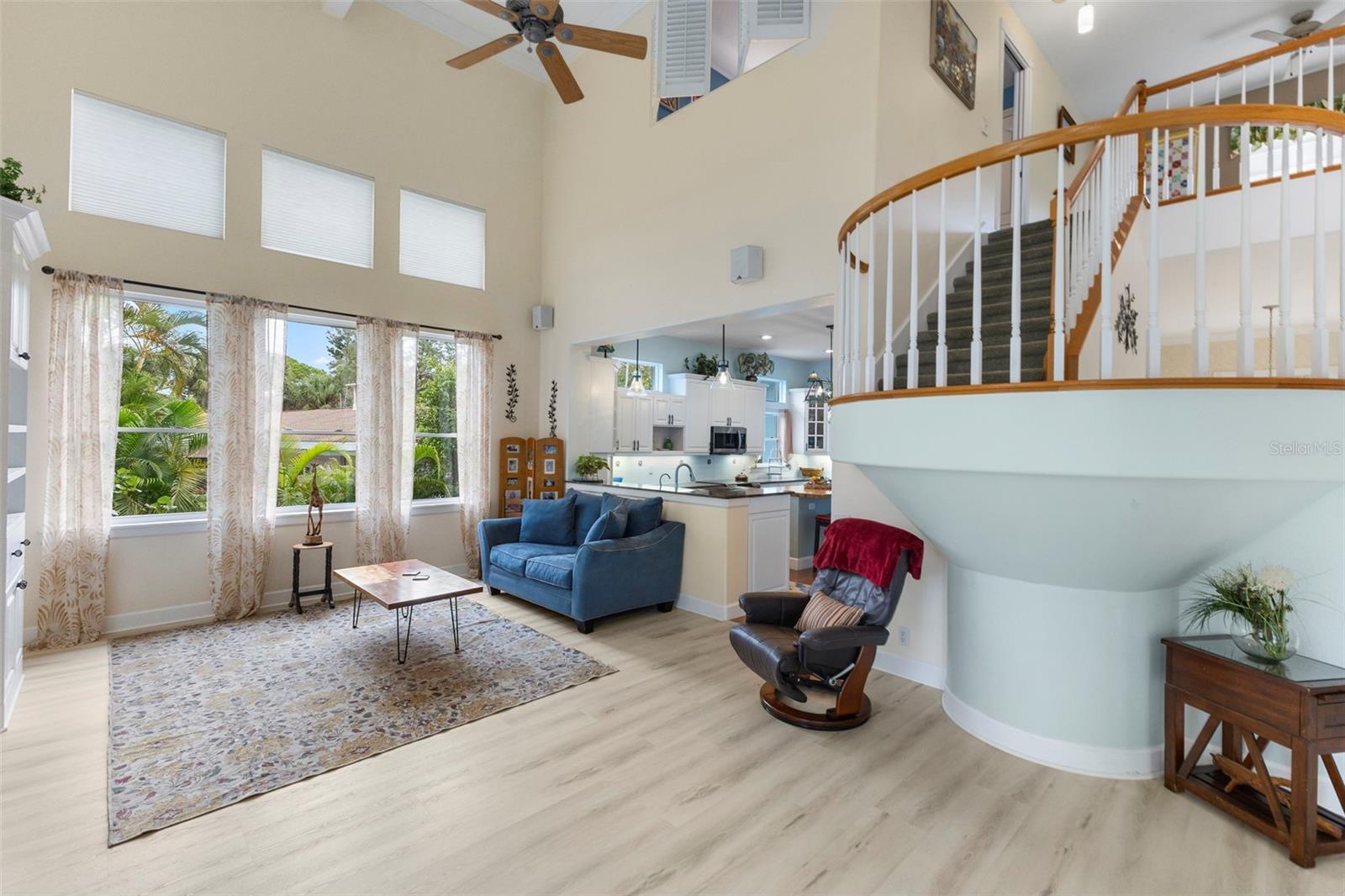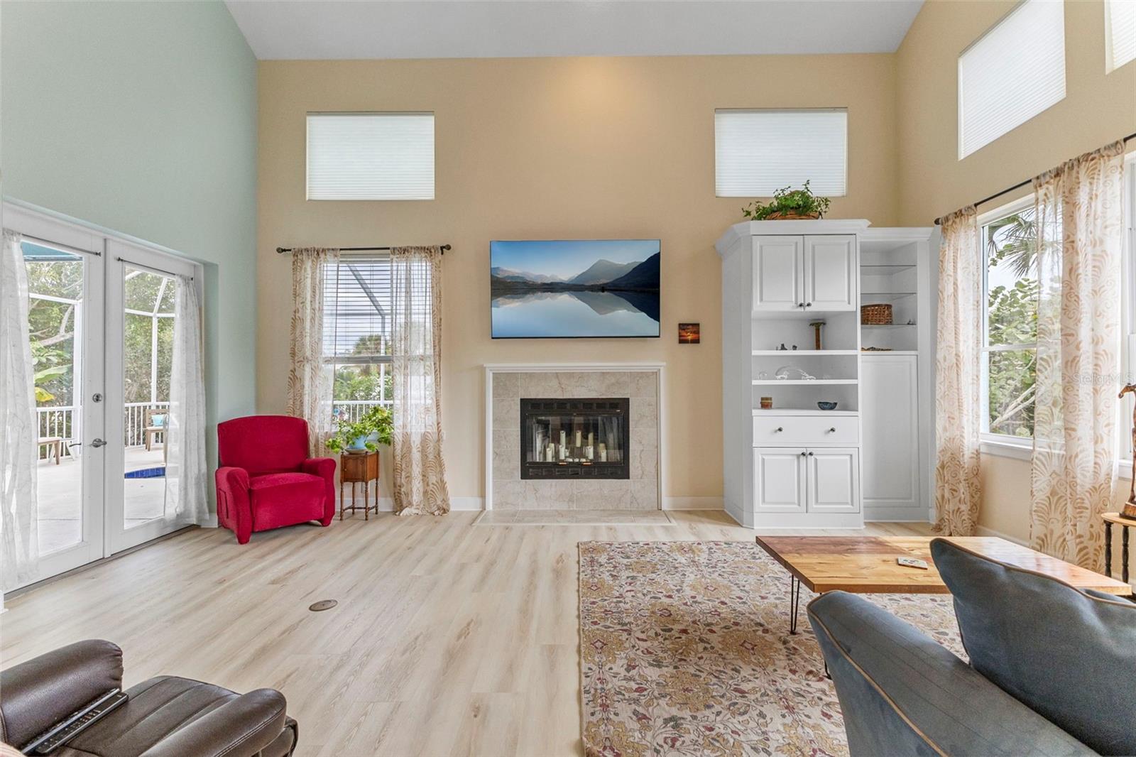Fantastic opportunity to own a unique home on Palm Island, in this exceptional Siesta Key residence, ideally located at 5334 Calle Florida. Situated on a large lot and elevated approximately 10 feet above sea level, the main home has never flooded during any storms, offering peace of mind along with island luxury. This 4-bedroom, 3-bathroom home features 2,838 square feet of thoughtfully designed living space highlighted by a dramatic great room with soaring 20-foot ceilings, creating an open and airy coastal feel. The large primary suite has a custom built window seat, 2 walk in closets and an oversized primary bathroom. The entire home features built in speakers including teh back porch. Designed for comfort and efficiency, the home is equipped with a three-zone air conditioning system and hurricane-rated Kevlar screens, hurricane rated garage and front door for added protection. The spacious two-car garage provides ample storage, perfect for island living. The exterior is landscaped with outdoor lights and power in soffits for seasonal or all year round lighting. Outdoor living is elevated—literally—with an elevated, heated pool and hot tub, an outdoor shower, and plenty of space to relax or entertain in true Florida style. Located on Palm Island, just moments from the world-renowned Siesta Key Beach, this property offers the perfect blend of privacy, elevation, and coastal charm. Whether as a primary residence or luxury retreat, this home is a rare opportunity to own a high-and-dry island property in one of Sarasota’s most sought-after neighborhoods. Roof replaced 2021, Pool resurfaced 2024, Pool cage re painted and re screened 2025, Water heater 2025.