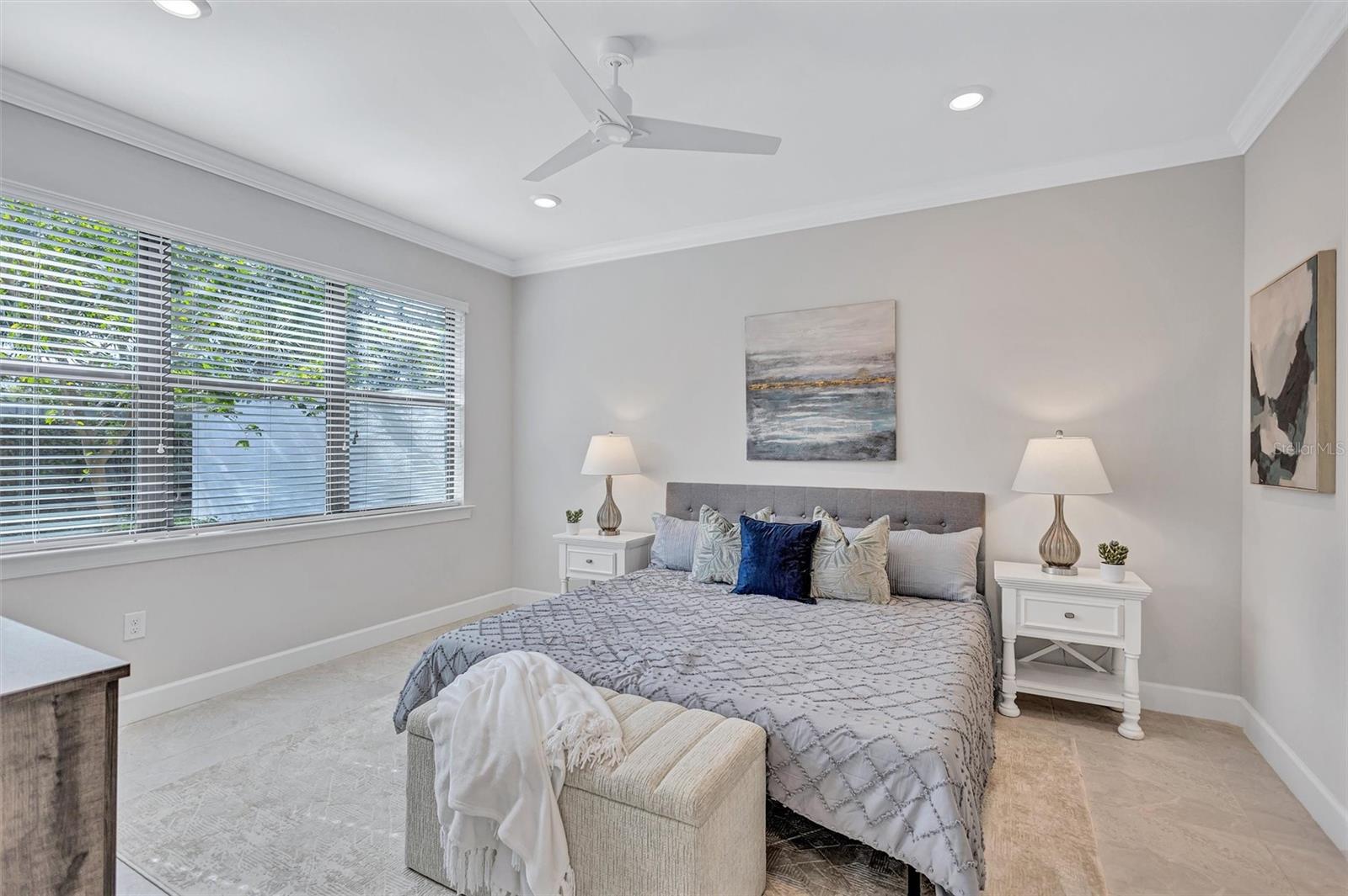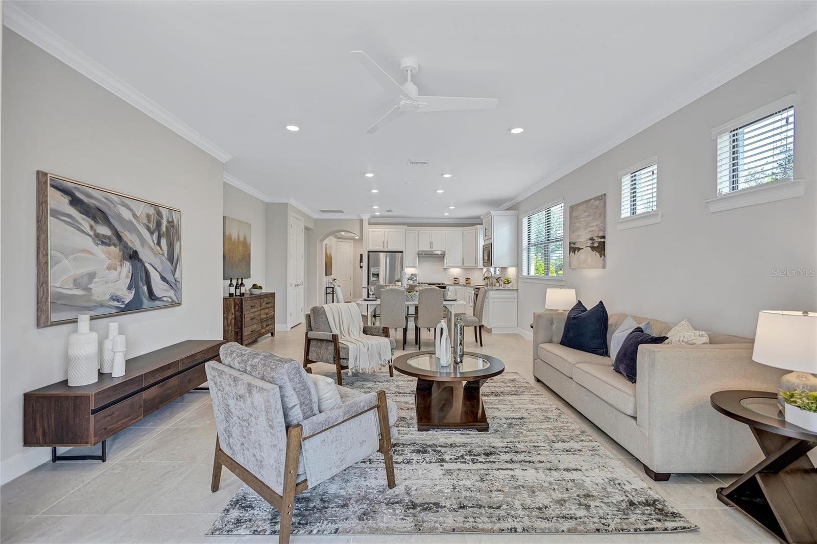 Finally – the one you have been waiting for! This stunning 2021 Cressida model offers Impact Windows & Doors, extensive upgrades inside & out, and an exceptional end-of-the-cul-de-sac location that provides rare privacy. Designed to live like a single-family home, it features a 24-ft Courtyard entry & an impressive 29-ft extended covered lanai overlooking a tranquil, natural Florida backdrop. This open, light-filled floor plan features 9-ft ceilings, 8-ft interior doors, & abundant windows only an end-unit can provide. Easy-care porcelain tile & crown molding throughout complement the coastal-inspired, light-toned finishes. At the heart of the home, the Chef’s kitchen delights with a natural gas 5-burner range, 42-inch solid-wood cabinetry with soft-close drawers & pull outs, granite countertops, upgraded stainless appliances, under-cabinet lighting, a large pantry, and an island with extra storage & breakfast bar seating – perfect for everyday living or entertaining. The gracious living area flows seamlessly through stacking sliders to the extended, pavered, covered and screened lanai for your private outdoor retreat. The luxurious primary Ensuite is a true oasis, offering comfort-height granite counters, double undermount sinks, upgraded fixtures, and enlarged walk-in shower, separate linen storage and oversized walk-in closet & a private water closet. A versatile flex room allow you to personalize the space to your lifestyle, while the separate laundry room and mud-room entry from the 2-car garage add thoughtful convenience. Located in a maintenance-free, gated community, you’ll enjoy Resort-Style Amenities including a Clubhouse, Barefoot Bar, heated Pool & Spa, fitness center, pickleball, tennis, bocce ball, fire pit, fishing pier & an on-site Property Manager. Furry family members are welcome too, with a 2-dided dog park for both large & small pups. All of this with easy access to Downtown Sarasota’s cultural attractions, charming Downtown Venice, world-famous beaches and the 20+ mile Legacy Trail. Don’t miss this special opportunity to own this move-in-ready piece of Paradise!