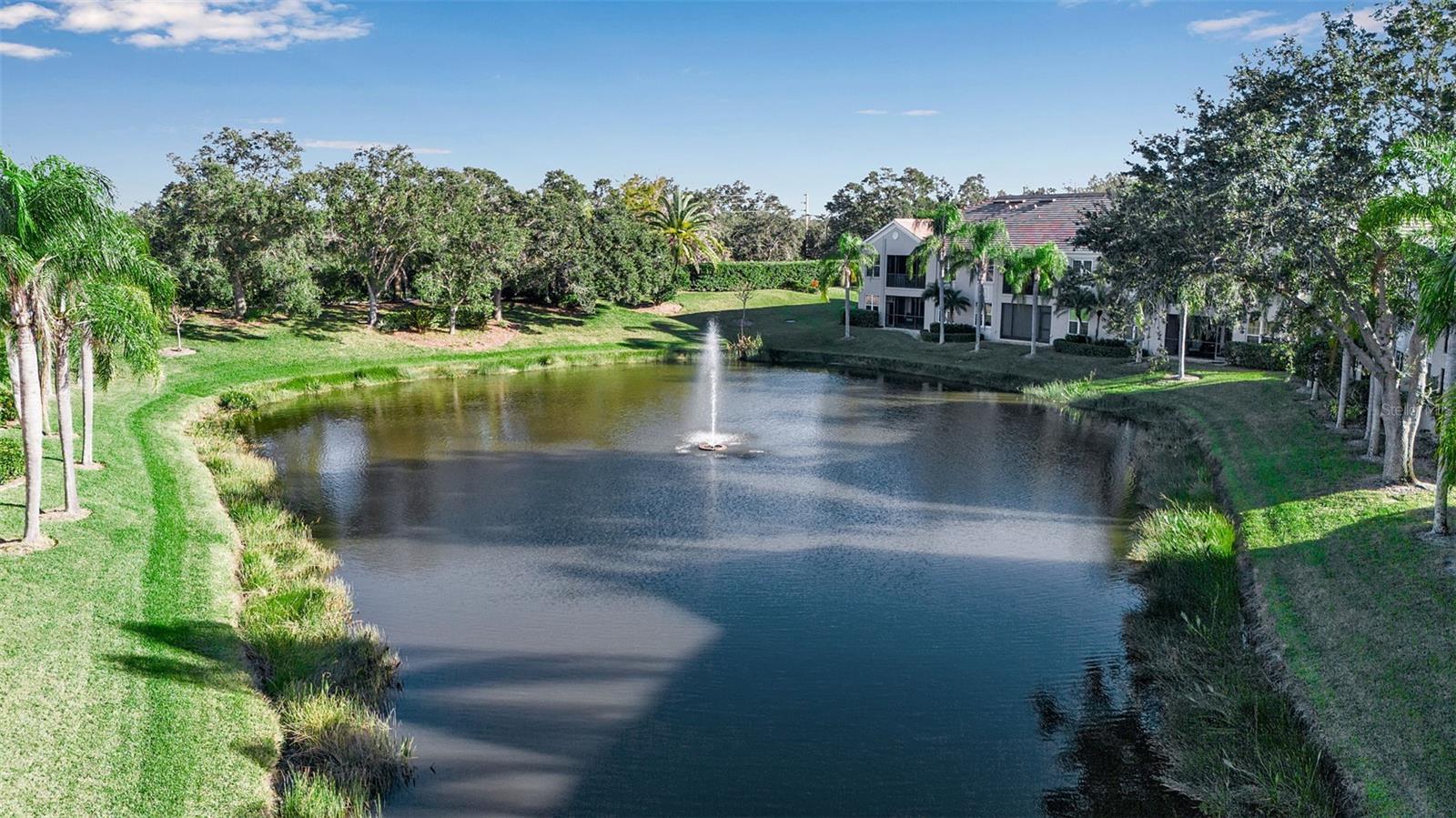 Immaculate, private, and beautifully positioned, this ground floor end and corner residence in Botanica on Palmer Ranch offers a rare combination of elegance, comfort, and true single family home living. The popular Cypress floor plan features two bedrooms plus a den that easily functions as a home office or third bedroom, along with an enclosed one car garage and a completely private side entry that immediately sets this home apart. Custom designed tile welcomes you into the foyer, creating a gracious sense of arrival and an added layer of privacy seldom found in condominium living. The spacious kitchen is thoughtfully designed with granite countertops, generous cabinetry, and a separate dining area that feels both open and intimate. Throughout the home, an abundance of upgrades elevate the space, including glass French doors in the den, wood flooring in the primary suite and den, crown molding plantation shutters, ceiling fans, and custom closet systems. The garage is equally well appointed with additional storage shelving and an oversized paver parking pad, adding both function and curb appeal. The screened and tiled lanai is a true sanctuary, completely private and overlooking a picturesque pond with a tranquil water fountain framed by lush tropical landscaping. Whether enjoying morning coffee or dining alfresco in the evening, the setting is serene, peaceful, and distinctly Florida. Just steps away, the resort style pool and grilling area make entertaining effortless while still allowing the home to remain quiet and secluded. Botanica is an upscale, boutique community of only 168 residences, known for superior construction quality and timeless architectural design. Residents enjoy a well appointed clubhouse with fitness center, catering room, library, conference room, and two beautifully maintained pools, all within a maintenance free lifestyle. Ideally located in the heart of Palmer Ranch, with convenient access to shopping, dining, the Legacy Trail, and the white sand beaches of Siesta Key Beach, this exceptional home offers privacy, refinement, and an effortless Florida lifestyle in one of Sarasota’s most desirable communities.
