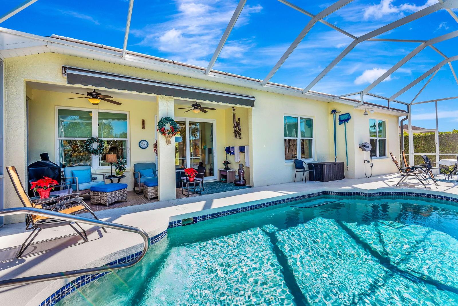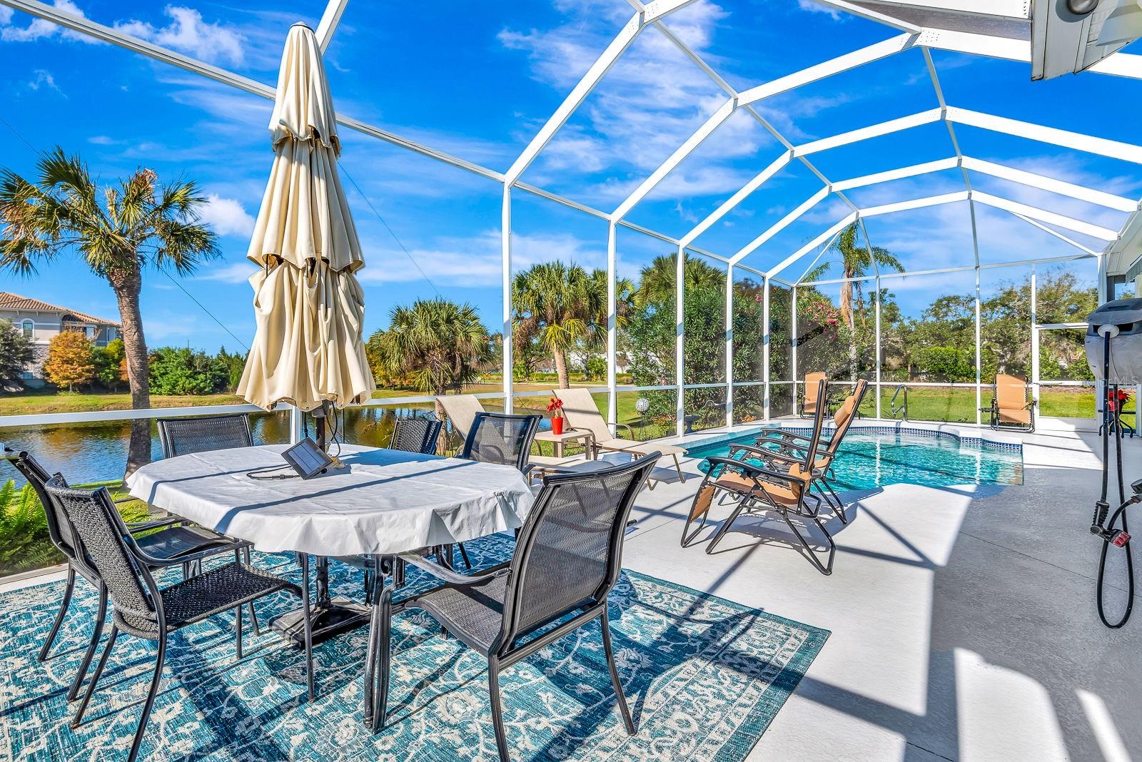 Welcome to an elegantly maintained furnished residence in the heart of Palmer Ranch, one of Sarasota’s most sought-after communities. This three-bedroom, two-bath end unit offers refined living with an open-concept design that welcomes you with light, space, and comfort. From the moment you enter, enjoy serene water views and seamless indoor-outdoor living. The private, solar-heated pool and screened lanai create a tranquil retreat—perfect for year-round enjoyment and effortless entertaining. As an end unit, the home provides added privacy and abundant natural light. This home has been thoughtfully updated and meticulously cared for, offering true move-in-ready confidence: New roof and all windows replaced (2021), Pool cage re-screened (2021), Interior freshly painted (2024); exterior painted (2021), Stainless steel appliances, New AC exterior unit (2023). Every detail reflects pride of ownership and long-term care. Ideally located just minutes from Publix, shopping plazas, Starbucks, Chick-fil-A, and top dining options, this home combines luxury, convenience, and an exceptional lifestyle. A rare opportunity to own a beautifully upgraded home in an unbeatable location—schedule your private showing today.