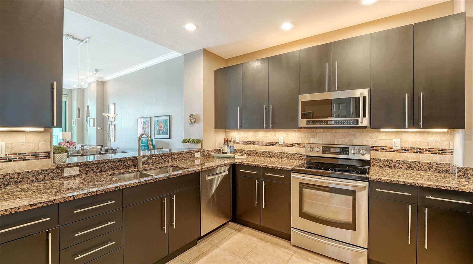 Love the energy of downtown and want a peaceful retreat to welcome you home. Rivo 1206 delivers both—furnished and move-in ready at a standout price in a sought-after community. Stylishly appointed, this 1,615 sq. ft. condo offers indoor–outdoor living with an open layout, nearly 10-ft ceilings, crown molding, designer lighting, and a wall of sliders leading to a large balcony with sweeping city views. Two ensuite bedrooms are joined by a den/home office plus a versatile flex space ideal for an office, creative pursuits, or extra storage. The kitchen features solid wood cabinetry, under-cabinet lighting, granite countertops, and stainless appliances. A new water heater adds peace of mind. Rivo at Ringling provides resort-style living with 24-hr security, heated pool and spa, fitness center, social activities, and a lush interior atrium. Two secure garage spaces and a large storage unit are included. Refined, furnished, and priced to sell—one of downtown Sarasota’s best values.