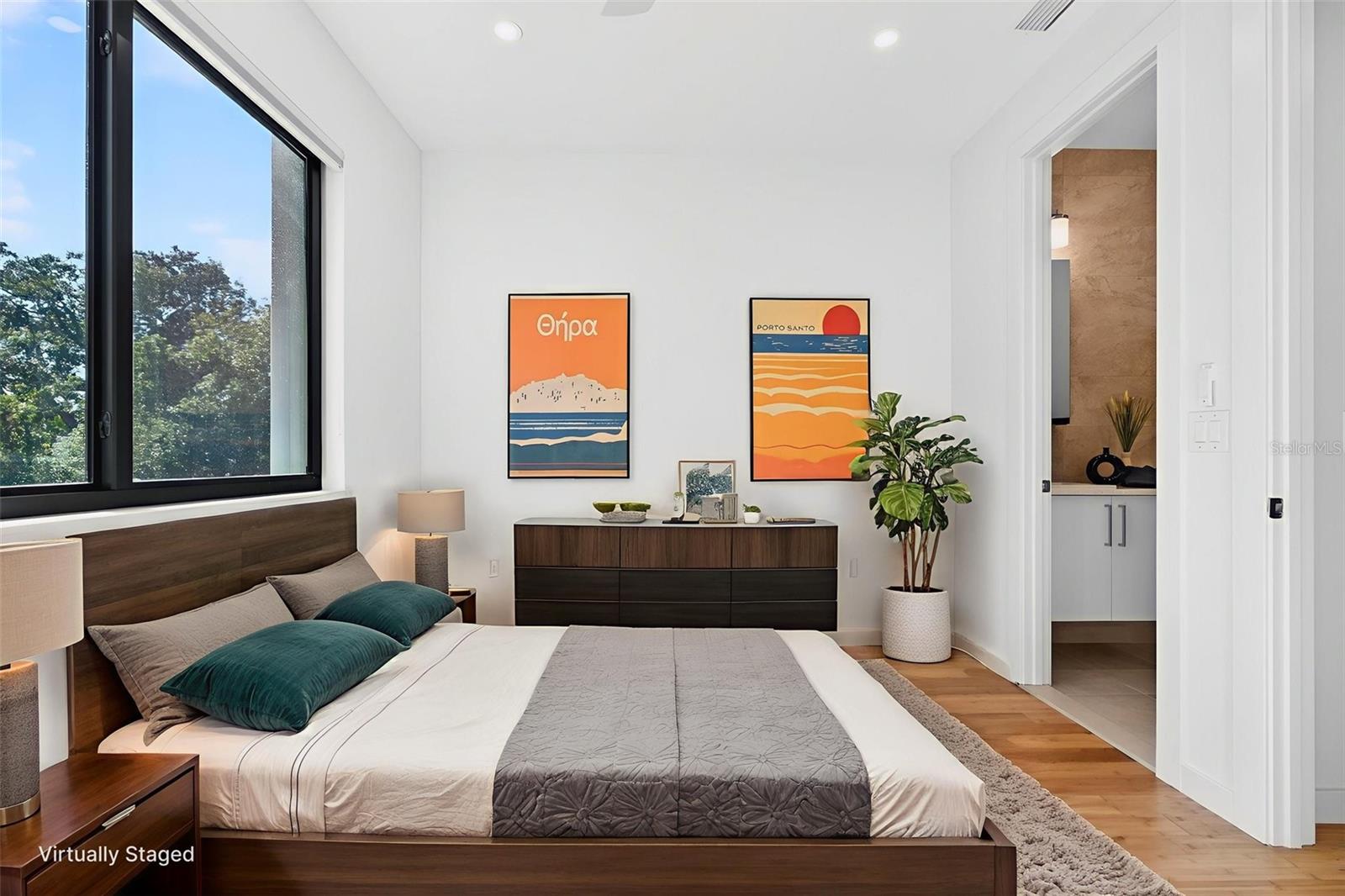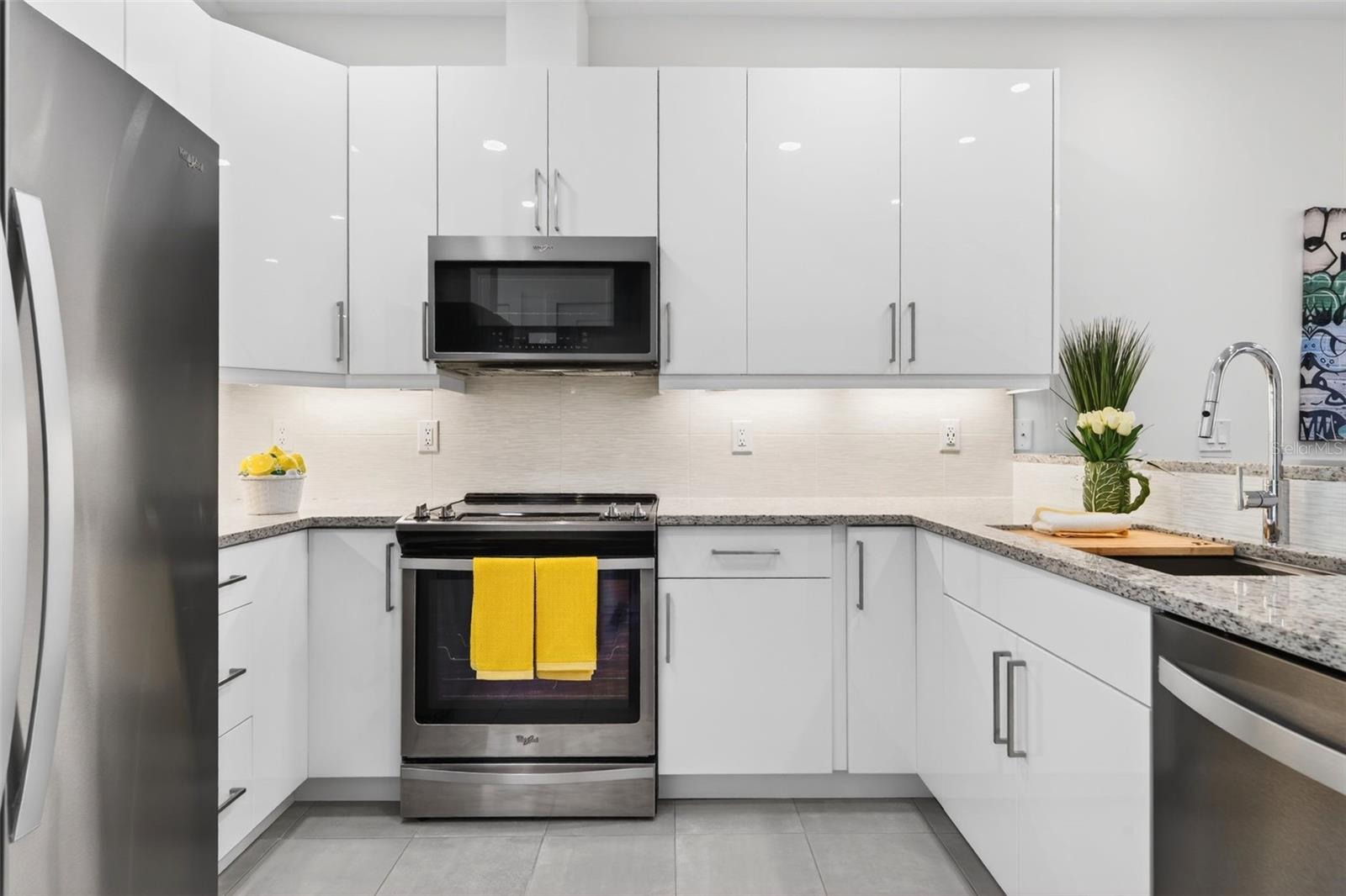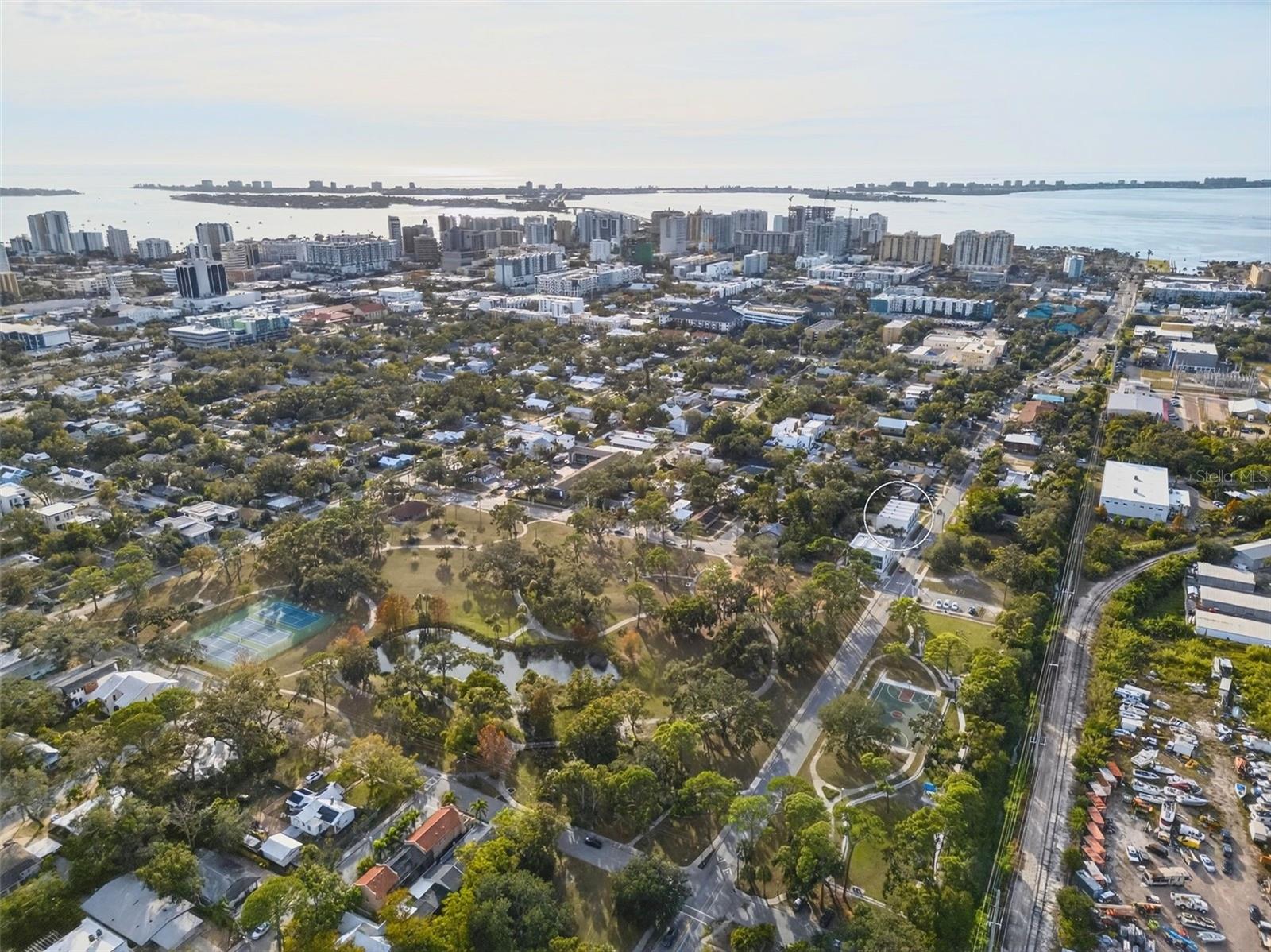 Enjoy new construction just steps from Sarasota's renowned 10-acre Gillespie Park and minutes to the Rosemary District and downtown. This never lived in townhome offers the perfect balance of walkable city living and a peaceful park-side setting, with 2 bedrooms, 2.5 baths, and 2 assigned parking spaces with direct access to the residence. Inside, the open floor plan is designed for both everyday comfort and entertaining, featuring a contemporary kitchen with stone countertops, stainless steel appliances, and quality cabinetry. Thoughtful finishes throughout include hardwood bamboo flooring, designer tile baths, impact windows and doors, and a full-size washer and dryer. Solid concrete block construction with sound-dampening insulation creates an impressively quiet interior, while smart home features and energy-efficient systems enhance convenience and comfort. Step outside to your own outdoor grill and seating area, then take advantage of Gillespie Park's pickleball, tennis and basketball courts, playground, dog park, and shaded green space right across the street. Located in Flood Zone X with a foundation elevated over 18 feet above sea level, this home offers additional peace of mind. A rare opportunity for low-maintenance downtown Sarasota living in a truly move-in-ready new home.