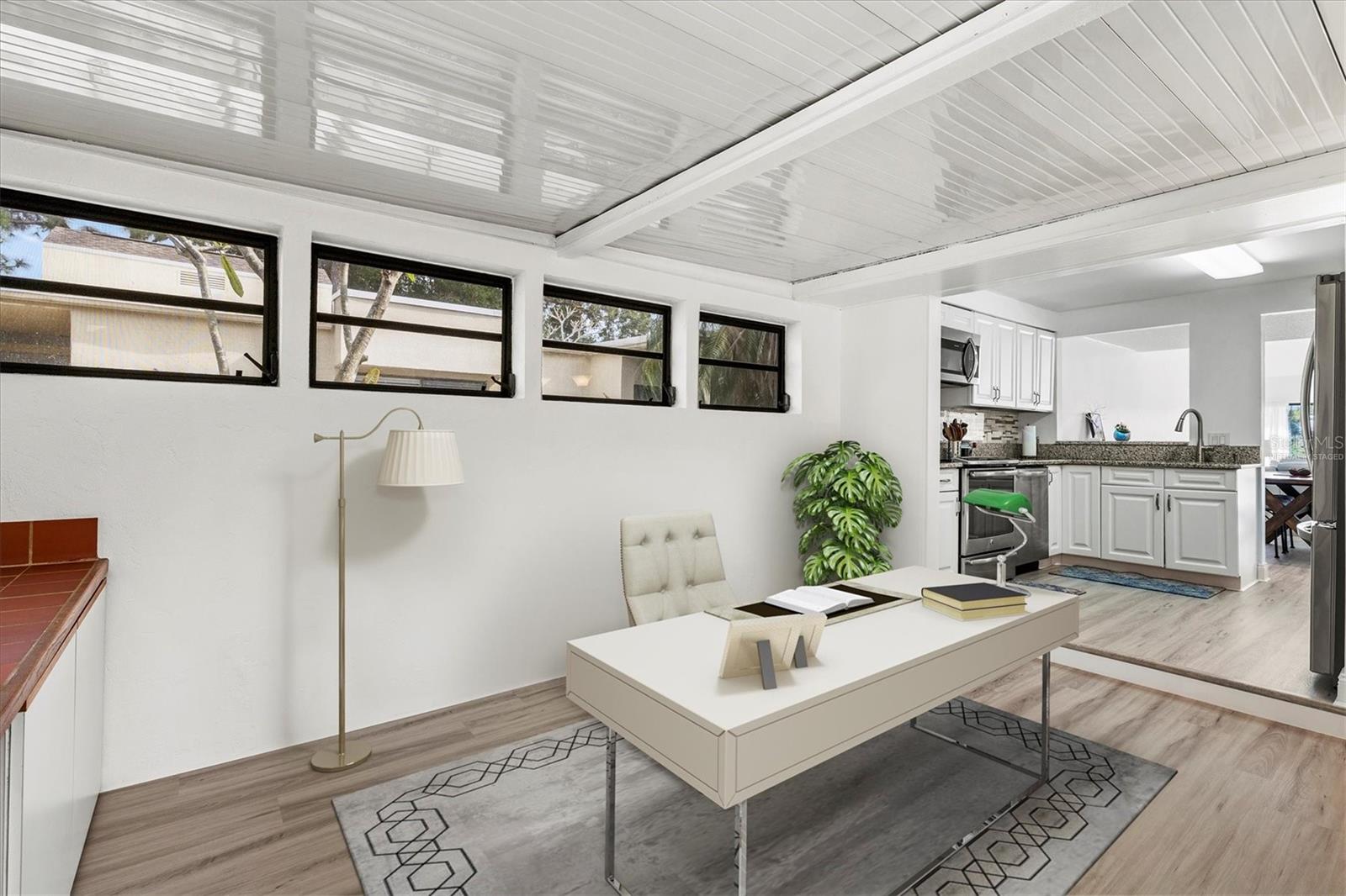 Captivating Views on Crispin Court. Located within the sought-after community of The Meadows in Sarasota, this beautifully remodeled THREE-BEDROOM, two-bath villa offers 1,608 square feet of thoughtfully designed living space, along with a versatile bonus area ideal for a home office, study, or flexible living needs—a feature not typically found in Meadowlake units. The A/C and hot water tank were REPLACED in 2022. This residence enjoys UNOBSTRUCTED WATER-VIEWS from the downstairs primary bedroom, living room, and an upstairs bedroom, all complemented by a picturesque golf course fairway in the distance, creating a serene and private setting. The two-story floor plan features a first-floor primary suite with an UPDATED en-suite bathroom and ample closet space. The spacious living and dining areas showcase VAULTED CEILINGS, enhancing openness, natural light, and the home’s connection to the outdoors. Upstairs, two additional bedrooms provide comfort and privacy, ideal for guests or added flex space. The kitchen is well-appointed with granite countertops, abundant cabinetry, generous storage, a newer refrigerator, and a pantry, offering both functionality and timeless appeal. NEWLY INSTALLED luxury vinyl flooring runs throughout the home, while the entire interior has been freshly painted, providing a clean, move-in-ready presentation. Just beyond the living space, a screened-in lanai offers an inviting open-air seating area, perfect for morning coffee, evening relaxation, or enjoying peaceful water views—an ideal extension of the indoor-outdoor lifestyle. The surrounding landscape, both around the home and throughout The Meadows, feels more like a park with homes rather than a dense subdivision. Residents enjoy an active, amenity-rich lifestyle spanning over 1,650 acres of mature oak canopies, scenic lakes and waterways, golf courses, tennis courts, new pickleball courts, a fitness center, 14 miles of walking and bike trails, and a junior Olympic-size community pool. The Meadowlake neighborhood also offers TWO PRIVATE POOLS. Conveniently located near shopping, dining, cafés, University Towne Center (UTC), Mote Marine Aquarium, cultural attractions, and approximately 13 miles to Sarasota’s renowned beaches, this villa offers comfort, lifestyle, and an exceptional location. Schedule your private showing today to experience the setting, views, and quality this Meadowlake villa offers—an exceptional opportunity within one of Sarasota’s most established communities.