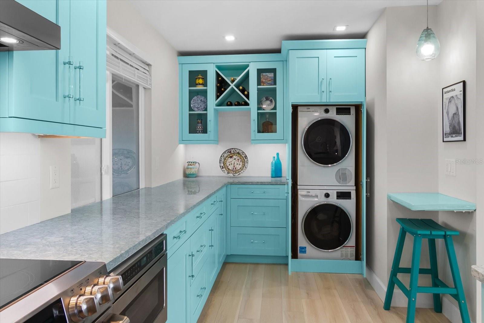 Convenient LOCATION! Expansive WATER VIEW! Handsome RENOVATION! Welcome to your Personal Paradise! DOWNTOWN Sarasota on prized GOLDEN GATE POINT. View of SARASOTA BAY and the elegant John Ringling bridge from all rooms. This Third Floor Condo has been beautifully redone. *New Kitchen from studs out *High Quality GE Café Kitchen Appliances *Convenient Undercounter Microwave Drawer *All New Electrical Wiring and Electric Panel *CAT5 Wiring installed *Stylish -not the usual- Ceiling Fans and Recessed Lighting *New HVAC Air Handler and Compressor *New Water Heater *New Bathrooms, one with Rain-showerhead *New Crown Molding *New Wood Flooring throughout. Light and Bright Kitchen with its Sea green Quartz Countertop, Ample Cabinets and Storage, with a hidden stacked Full-sized Washer/Dryer on the pantry end of the kitchen. Living Room space features a sleek, electric Fireplace, with decorative color-changing crushed glass rocks, that also provides heat. Hunter Douglas Window shades for all windows. Two Bedroom Suites, each with plenty of closet area, split plan, one currently being used as an office/guest suite. Closets with Container Store quality closet organizer, shelving changeable as you choose. Assigned carport parking with your own storage room, ready for your beach chairs, bicycles and paddleboards! SARASOTA is known for its beaches, its restaurants, its arts and entertainment: this Central Location lets you easily reach them all! And if you don’t want to leave home, most delightful is being able to enjoy this wonderful view from your armchair in your modern condo!