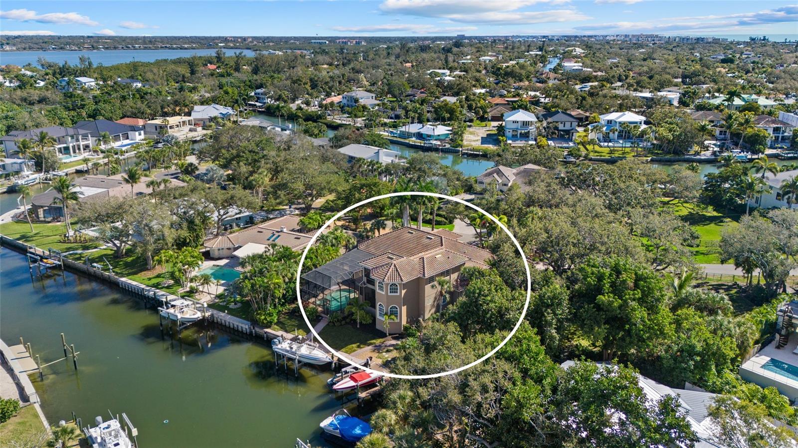 A spectacular offering on one of Siesta Key’s most coveted streets, this stunning canal-front residence on Tremont Street represents a truly special opportunity to own a home that seamlessly blends boating, timeless island charm, and refined coastal living. Tucked beneath mature trees in a quiet, established enclave known for its old Siesta character, the property offers private canal frontage with a lift and a short, easy boat ride to the Intracoastal Waterway, all just minutes from Siesta Village and the world-renowned white sands of Siesta Beach. Homes of this caliber and setting are seldom available and must be experienced in person to be fully appreciated. Offering 4,194 square feet under air, the thoughtfully designed floor plan is both impressive and highly livable, ideal for full time residents and seasonal owners alike. Soaring ceilings, abundant natural light, and quality craftsmanship define the interior. The main floor primary suite is complemented by additional bedrooms on the main level, providing the ease of one level living, while the second floor offers a spacious guest suite and bonus room with peaceful views of the pool and canal. Exceptional indoor-outdoor living is at the heart of the home. Multiple pocketing sliding glass doors open wide to an expansive covered and fully screened lanai, creating a seamless connection between interior and exterior spaces. The outdoor living area is generous in scale and designed for entertaining, featuring a heated pool and spa, summer kitchen, gas fireplace, and multiple areas for dining and relaxation. The large screened layout allows you to comfortably enjoy outdoor living year round, regardless of the weather. Lush tropical landscaping enhances privacy and creates a tranquil island setting, while boating enthusiasts will appreciate the private lift and convenient access to open water. Impact-rated windows and doors, a generator, and a three-car garage provide peace of mind and everyday practicality. 611 Tremont Street combines location, boating, and lifestyle in a way few homes can. If you have been waiting for an exceptional Siesta Key property in one of the island’s most desirable neighborhoods, this is one you should see in person before it sells.