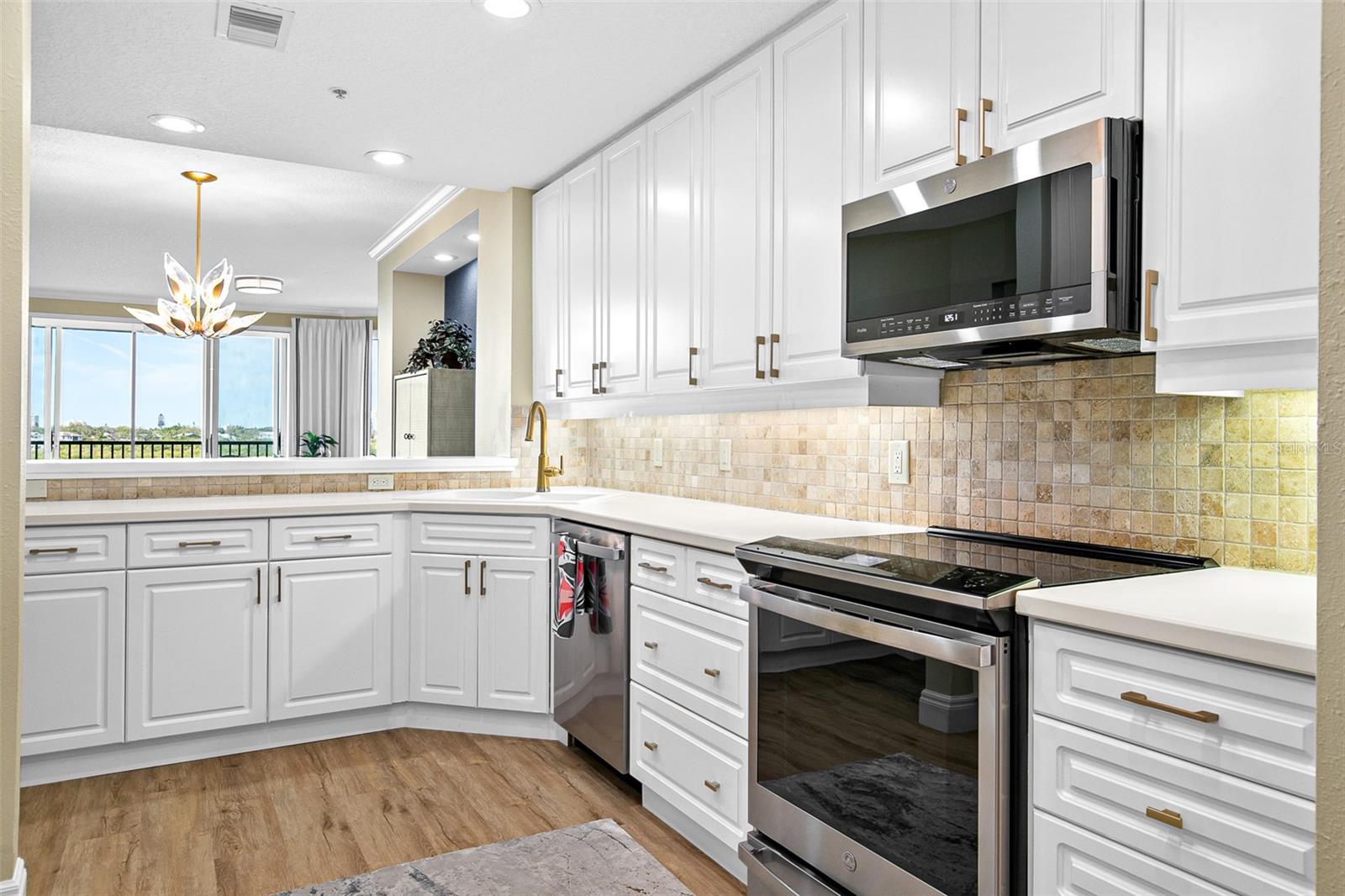 Experience the ultimate coastal lifestyle in this turn-key, professionally designed 2-bedroom, 2-bathroom residence located in the popular Landings community. This bright, west-facing unit offers a seamless blend of luxury and comfort, featuring all new furnishings, new flooring throughout and a custom designed interior aesthetic. The bright kitchen is a chef’s dream, fully equipped with brand new high-end appliances, including a custom built-in refrigerator, range, microwave, dishwasher, and a premium washer/dryer set. Every detail has been considered, from the tasteful lighting and ceiling fans to the custom drapery and convenient remote-controlled sun shades. The thoughtful layout includes a versatile second bedroom complete with a brand-new, built-in Murphy bed. Relax on your private, screened-in lanai and take in breathtaking views of the iconic Siesta Key Susnets over Sarasota Bay. It is the perfect vantage point for observing local wildlife and lush mangroves. The ammenities at the Landings are second to none. Spend the day on the courts with friends, relax by the pool or take a walk on the nature trails that lead to the bay. Pack your suitecase and move right in, your little piece of paradise is awaiting your arrival!