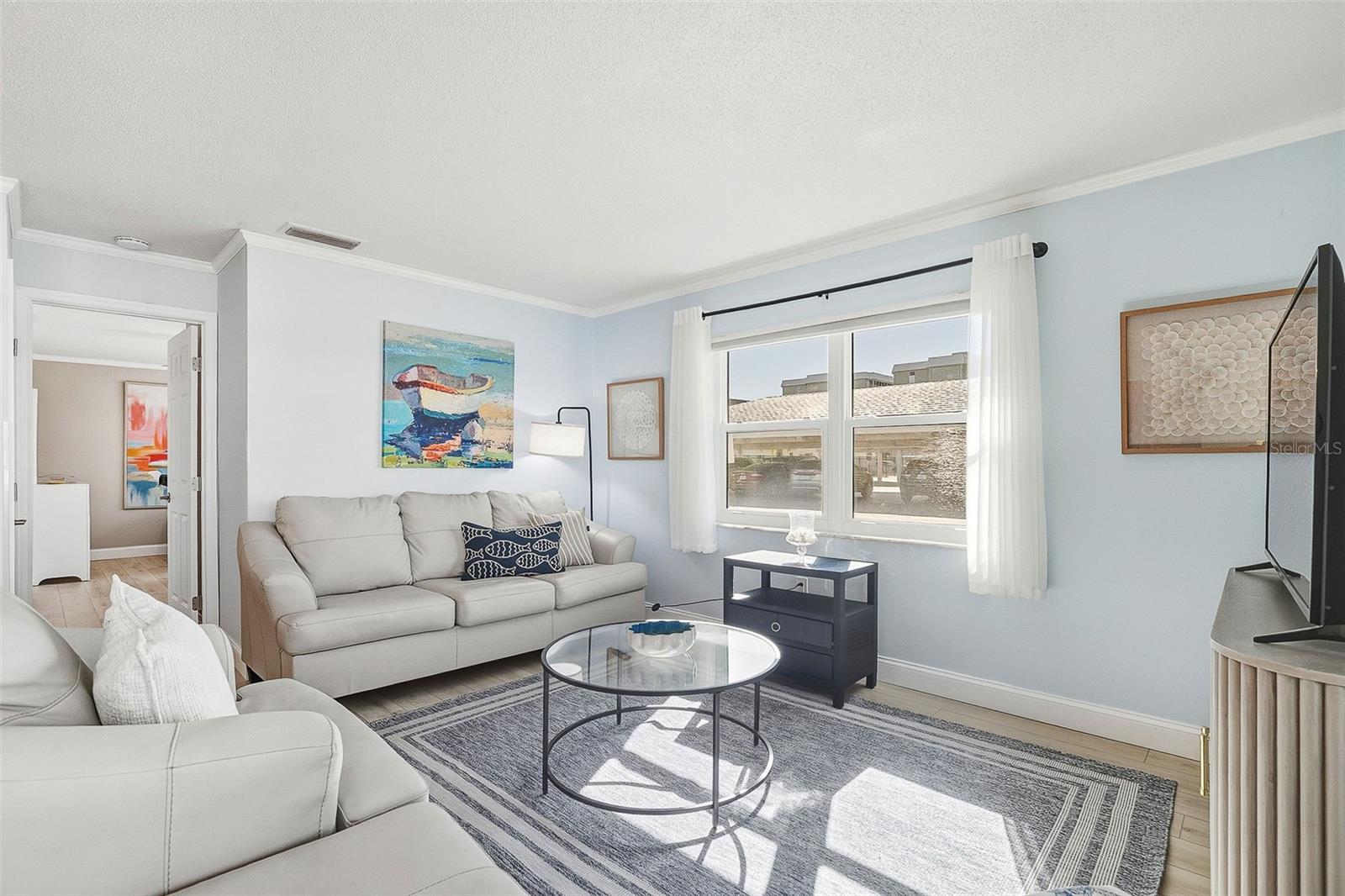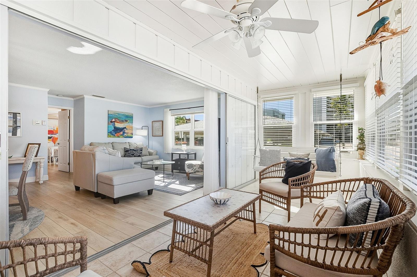 Everything is brand new in this beautifully renovated, turnkey furnished two bedroom, two bath end-unit villa offering an exceptional Siesta Key beach lifestyle just steps from the Gulf. The desirable split floor plan features spacious bedrooms, generous closets, and an open-concept living area filled with natural light, enhanced by a sun-lit Florida room. The updated kitchen is thoughtfully designed with granite countertops, a coordinating backsplash, soft-close cabinetry, and new stainless steel appliances. The primary suite offers a wall-to-wall closet, transom window, and sliding glass doors opening to the Florida room. Additional highlights include luxury vinyl plank flooring, all-new furnishings, and an attached one-car garage with washer and dryer plus ample storage for beach gear. Whether enjoyed as a private coastal retreat or a lock-and-leave rental opportunity, this residence truly offers the best of both worlds. Crystal Sands is a well-managed, financially stable beachfront community that has remained highly desirable since 1969 due to consistent upkeep and thoughtful renovations. The condominium comprises a collection of one, two, and three bedroom villas along with a Gulf-front high-rise tower, all set within beautifully maintained grounds. Residents and guests enjoy private beach access with umbrellas and loungers, two heated swimming pools, a clubhouse, on-site rental management, and night security, all just moments from Siesta Key’s renowned dining and shopping.