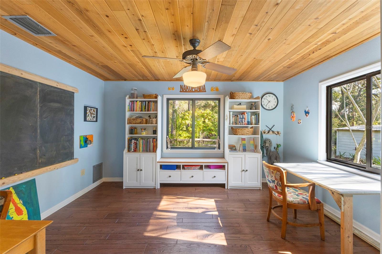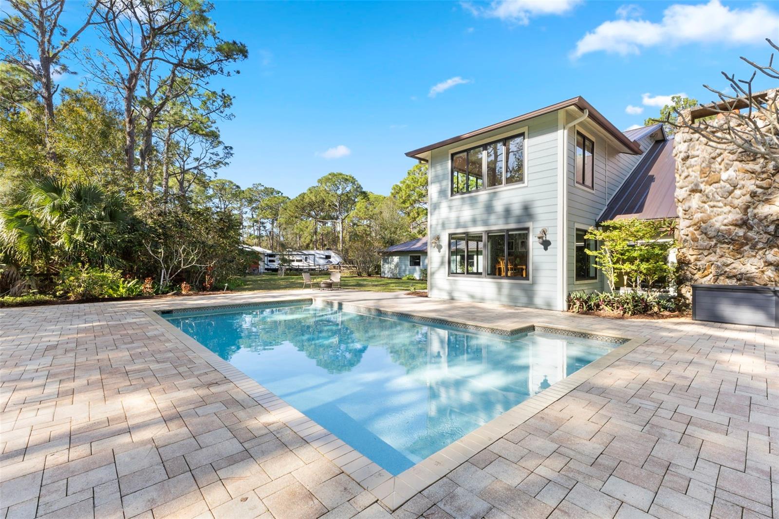 LOCATION/LOCATION/LOCATION! This exceptional estate is set on more than five fully fenced acres of beautifully manicured, lush grounds. Tucked away you will enter through a winding, tree-canopied driveway. Welcome to “The Ranch at Pine Acres ” a five-bedroom residence, where complete privacy and peaceful natural surroundings create a country feel. Delight in the endless possibilities of this private home in Pine Valley Ranches. This hidden gem is perfectly positioned on the most desirable 5 acre lot in this exclusive community, offering the perfect balance of tranquil country living and easy access to I75, Sarasota’s downtown, University Town Center, Waterside, and the renowned Gulf beaches. The main home offers nearly 4,000 square feet of professionally designed living space, with expansive views from every window of this private estate. This unique property is move-in ready. Recent upgrades include a new metal roof on both the home and barn, pavered walkways and patio, wood and Trex decking, a large saltwater pool, three air-conditioning systems. Impact windows and French doors throughout offer abundant natural light with cedar plank tongue-and-groove vaulted ceilings. At the heart of the home, the gourmet kitchen flows seamlessly into the formal dining room and is open to the oversized great room that has a beautiful wood-burning fireplace with specialty coquina stone. Designed for both function and style, the kitchen showcases rich 5/4" cherry cabinetry with under-cabinet lighting, multiple copper farm house sinks, imported granite countertops, Mulga White Turkish marble backsplash extending to the ceiling, built-in appliances including a cabinet-faced KitchenAid refrigerator, Miele built-in oven, THOR induction cooktop, Bosch dishwasher, GE infrared microwave and an exceptionally spacious butler’s pantry with even more storage. A large multipurpose room with laundry area provides flexible space for a playroom, office, or additional family room or storage. The generous primary suite overlooks the front picturesque grounds with its private balcony/deck. This second-level retreat features a luxurious Indian Rainforest marble bathroom fully equipped with soaking tub and large shower, dual walk-in closets and beautiful oak floors. A second two room suite completes the upper level. Adjacent flex space is ideal for an office, playroom, or additional bedroom overlooking the trees of “The Ranch at Pine Acres ”. Three additional bedrooms are located on the first floor, offering comfortable accommodations for a large family and/or guests. Attached 3 car oversized garage with a hurricane room and RV hookup. Adding to the property’s versatility is a massive, detached barn featuring a horse stalls, workshop, tack room, generous storage space, two more RV hookups, and a surrounding horse paddock—ideal for equestrian use, recreational vehicles, or additional storage. A Sarasota premier location...where private acreage meets the charm of country life... yet right in Sarasota!