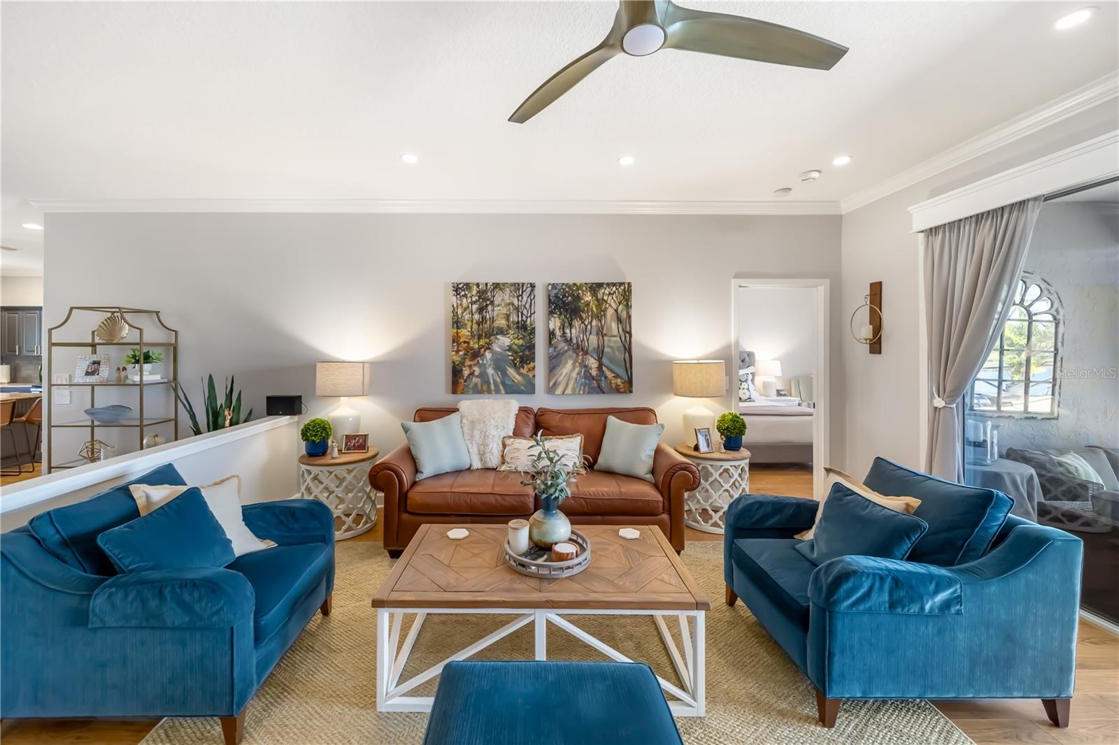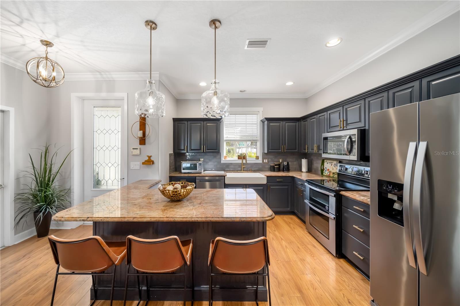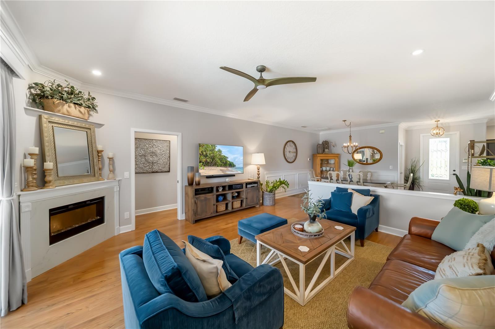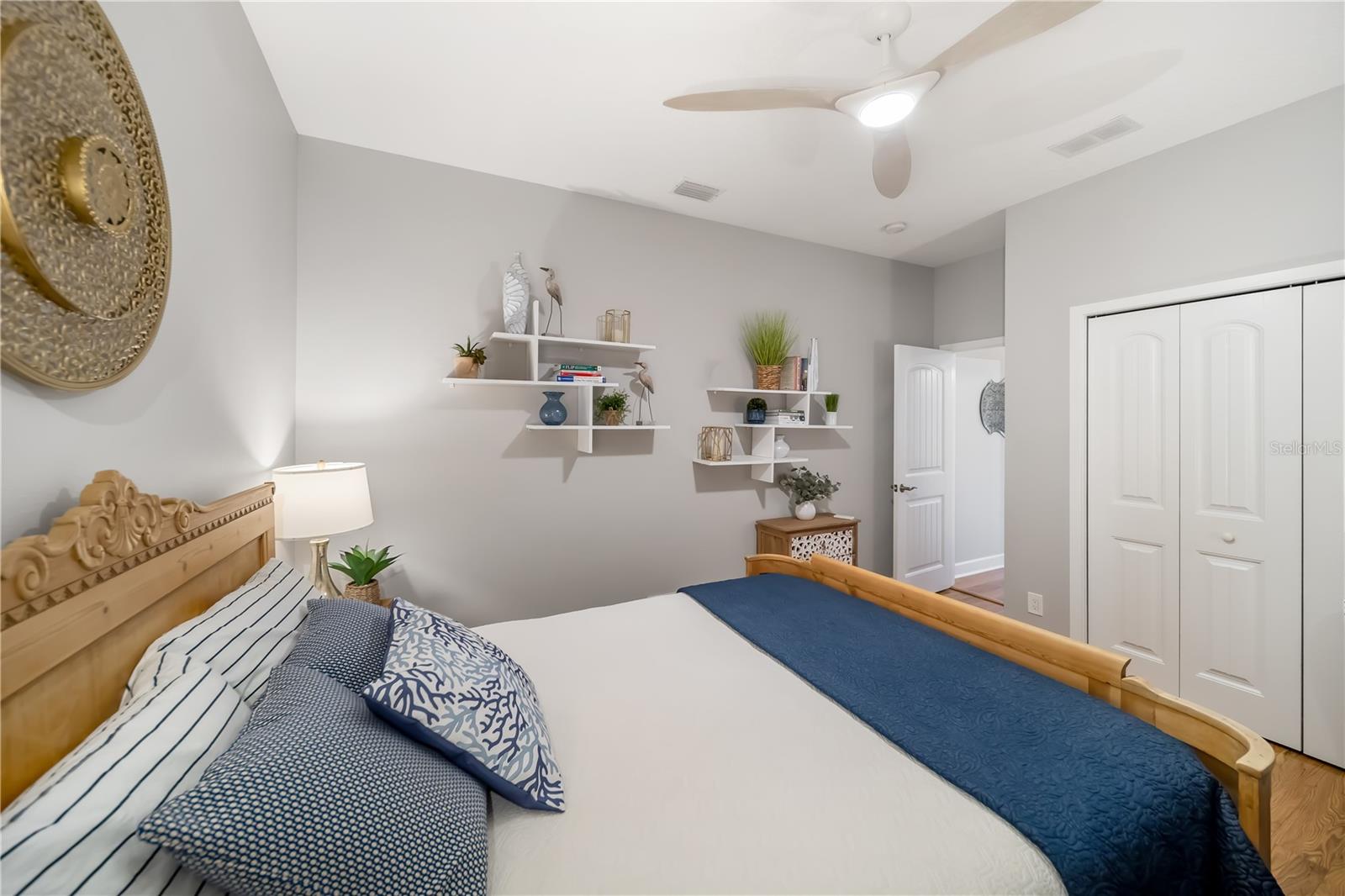 Enjoy breathtaking views and stunning Florida sunsets right from your backyard in this 3 Bedroom, 2 Full Bath, model-like Home on the Water, with NEW ROOF! NO CDD fees and low HOA dues, this exceptional Lakefront Home offers outstanding value. The expansive lanai features a 28’ x 40’ seamless illusion screen blending indoor and outdoor living, with a heated saltwater pool, covered sitting area with a 10’ x 18’ motorized retractable awning, TV, outdoor kitchen with Lynx BBQ grill, updated burner and briquette tray, refrigerator, vent hood, and sink—perfect for outdoor entertaining! There's also a playground right across from your front door as well! Inside, the beautiful look of hardwood flooring with the convenience and durability of laminate flows throughout the house, complemented by updated light fixtures and a palette of natural, neutral hues. The kitchen offers stainless steel appliances, granite countertops, decorative backsplash, and large porcelain farmhouse-style sink. The primary suite is separate from guest bedrooms and includes dual vanities, updated countertops, a walk-in shower, and lanai access. Beautiful landscaping enhances both the front and rear yards, supported by an efficient irrigation system. A new roof adds peace of mind. Additional highlights include hurricane shutters, a garage with hanging storage racks and attic pull-down access. Ideally located near UTC Mall, the airport, great dining options, & more! this home offers Florida living at its finest.