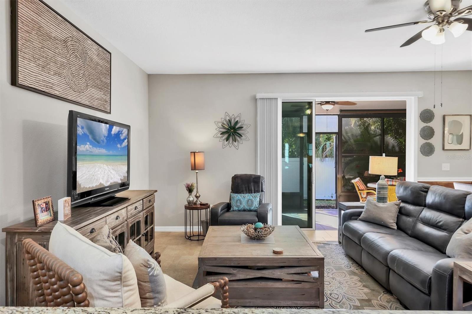 Beautiful 3-bedroom, 2.5-bath townhouse in Baytown Square, offering an open floorplan and low-maintenance Florida living. As you enter, ceramic tile flooring flows throughout the main living areas, creating a light and spacious feel. Designed with entertaining in mind, the kitchen opens seamlessly to the living and dining spaces and features espresso cabinetry, granite countertops, stainless steel appliances, and a classic subway tile backsplash. Sliding glass doors lead to a screened-in lanai, providing a comfortable outdoor space to enjoy Florida’s year-round weather. Upstairs, the spacious primary bedroom includes an en-suite bath with dual vanities, while two additional bedrooms provide flexibility for guests, family, or a home office. A convenient half bath on the main level enhances everyday functionality. Additional features include a private garage with storage and a stair lift, offering added accessibility. Baytown Square is a gated community with amenities that include a community pool, grounds maintenance, and exterior building insurance, all covered by the HOA. Ideally located near Sarasota’s local beaches, shopping, and dining, this townhome is well suited as a primary residence, second home, or seasonal retreat. Schedule your private showing today.