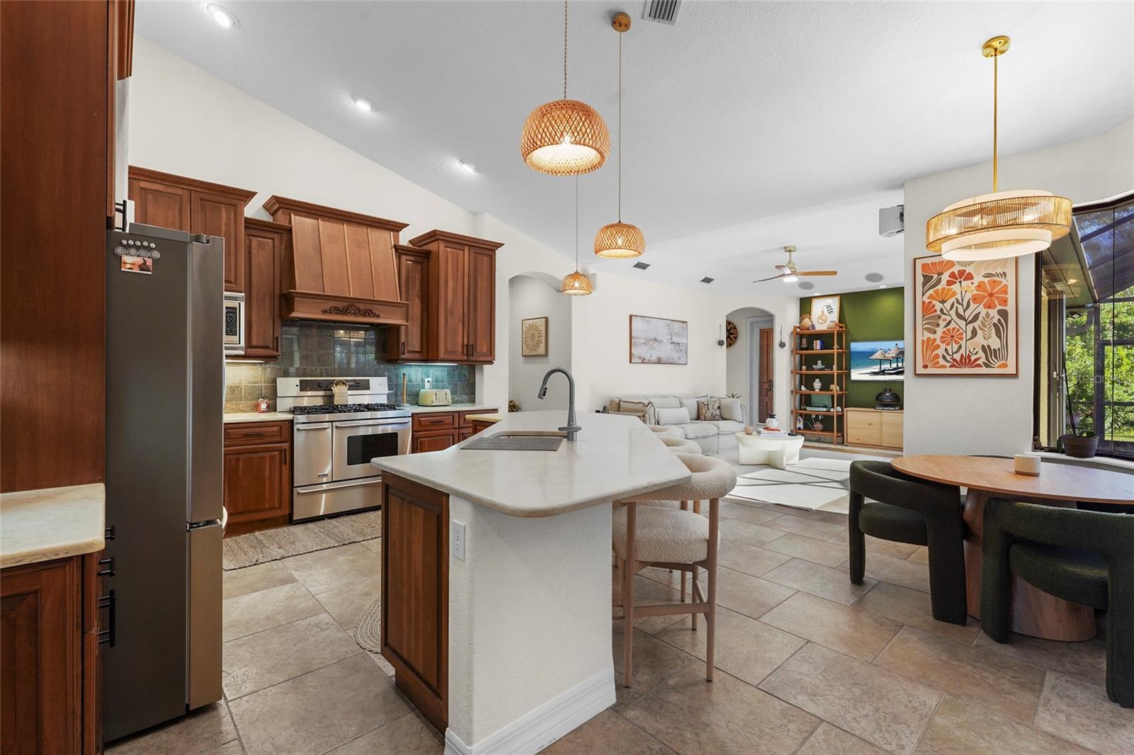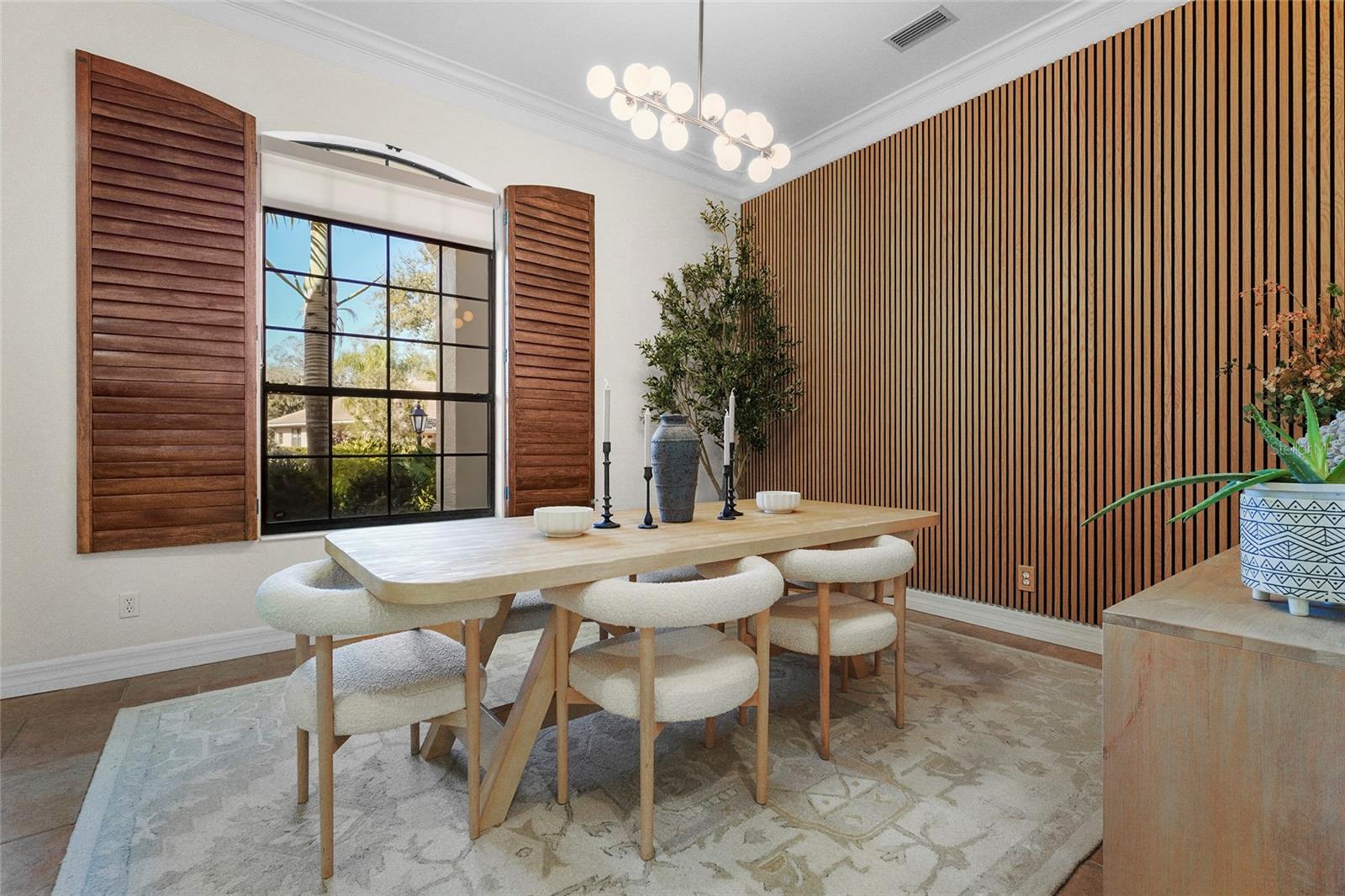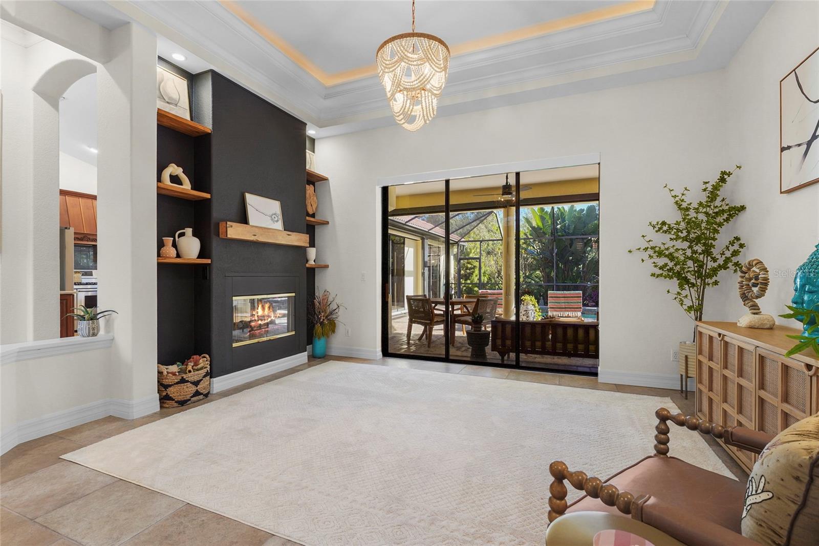 Located in the desirable gated community of The Hammocks, this custom pool home is set on a premium preserve-view lot with mature landscaping. 4 bedroom 3 bathrooms an office and a three-car garage! The open layout flows from the formal living areas to an expansive lanai with a heated pool and spa overlooking tranquil preserve views. The chef’s kitchen features a five-burner gas cooktop with updated vent, double ovens, large center island, slide-out cabinetry, and a double-sided gas fireplace shared with the living room. A unique highlight is the fully enclosed, climate-controlled second kitchen/outdoor entertaining space with gas grill, side burner, commercial vent hood, refrigerator, dishwasher, wine and beverage coolers, and direct pool access. The primary suite includes double-door entry, private lanai access, dual walk-in closets with upgraded systems, tray ceiling with crown molding, Jacuzzi tub, walk-in shower, and dual vanities. Additional features include a custom-built office with wood flooring, full hurricane protection, and a whole-house gas generator (2019). Major updates include A/C systems (2021 & 2016), pool pump (2020), pool heater (2023), dishwasher (2025), washer and dryer (2021), wine and beverage refrigerators (2021), refrigerator (2025) and a new water heater. Private well irrigation and landscape lighting complete this well-maintained home in one of Sarasota’s desirable gated communities.