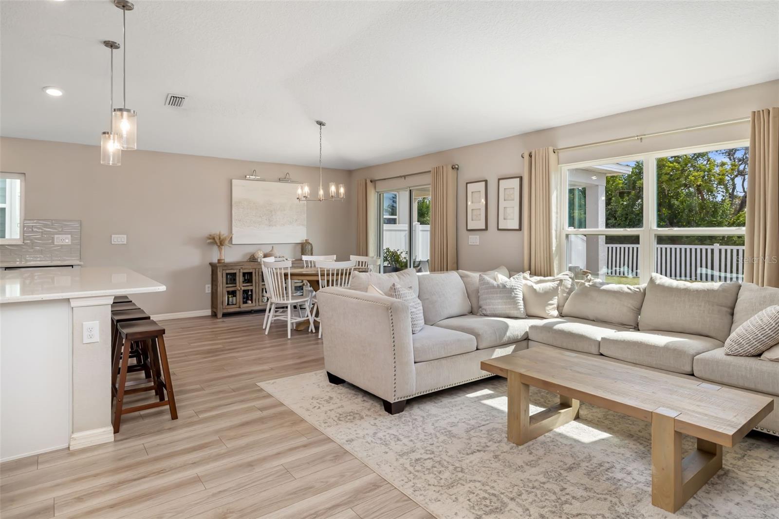 Built in 2021 and meticulously maintained, this stunning 3-bedroom, 2-bath home offers 1,541 square feet of thoughtfully designed living space that feels both modern and welcoming. From the moment you step inside, pride of ownership is evident in the sleek contemporary finishes, granite and quartz countertops, and an oversized entertainer’s island that anchors the kitchen—perfect for hosting gatherings or casual everyday living. A spacious pantry, custom-designed closets, ample additional storage, and a built-out attic provide exceptional functionality without sacrificing style. The electric fireplace adds a warm, inviting touch to the main living area, making this home truly move-in ready. The desirable Grady Pointe location sets this property apart. Situated directly next to Ron DeSantis Park, you’ll enjoy immediate access to a large dog park, two playgrounds, walking trails, and pickleball and tennis courts—an extension of your own backyard lifestyle. Kinnan Elementary School is just a quarter-mile away, Sarasota-Bradenton International Airport is under 10 minutes away, and University Parkway offers quick access to downtown Sarasota, world-class dining and shopping, and top-rated Gulf beaches. A unique bonus: enjoy scenic views of planes taking off and landing from the backyard—close enough to watch, yet far enough away to remain quiet and undisturbed. Step outside to a covered porch and a fully fenced backyard overlooking a peaceful treebelt, providing privacy rarely found in newer construction. An enclosed outdoor storage den adds even more convenience for tools, gear, or hobbies. With NO CDD fees and a low HOA that includes DIRECTV, fiber-optic internet, and a community dog park, this home offers outstanding value. Whether you’re looking for a primary residence or a strong investment opportunity, this property seamlessly combines modern construction, prime location, and a private outdoor retreat—an exceptional opportunity you won’t want to miss.