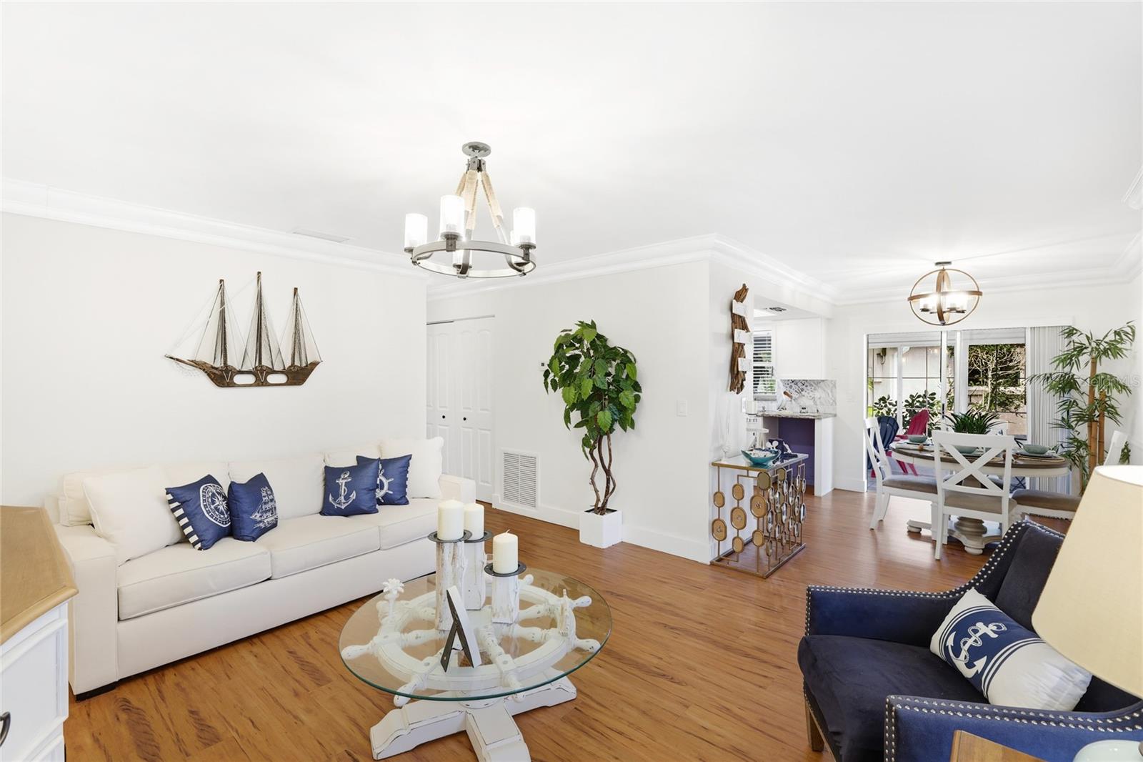 Tucked away in Jefferson Pines, this beautifully renovated 2-bedroom, 2-bath villa offers a rare blend of privacy, style, and proximity to Downtown Sarasota. Just minutes from the city’s dining, arts, and waterfront, the neighborhood feels quiet and residential while remaining effortlessly connected to everything Sarasota has to offer. Inside, the home has been thoughtfully updated throughout with flooring, fresh finishes, and an open, light-filled layout that flows easily from living to dining and kitchen spaces. The redesigned kitchen features crisp cabinetry, stone countertops, stainless steel appliances, and a functional layout ideal for both everyday living and entertaining. Crown molding, updated lighting, and clean architectural lines add a polished touch throughout the interior. Both bathrooms have been tastefully renovated, with the primary ensuite offering dual sinks. Bedrooms are well-proportioned and comfortable, making the layout equally well suited for a full-time residence, seasonal retreat, or investment opportunity. An extended enclosed lanai provides additional living space and a peaceful spot to relax, surrounded by mature landscaping that enhances the home’s serene setting. Jefferson Pines is a community known for its well-kept grounds and convenient location near Legacy Trail, Ed Smith Stadium, Sarasota-Bradenton International Airport, and the cultural attractions of downtown. With flexible rental options and move-in-ready updates, this villa delivers easy ownership and an exceptional Sarasota lifestyle in one of the area’s best-kept secrets. **THIS PROPERTY QUALIFIES FOR A 1% LENDER INCENTIVE IF USING PREFERRED LENDER. INQUIRE FOR MORE DETAILS.**