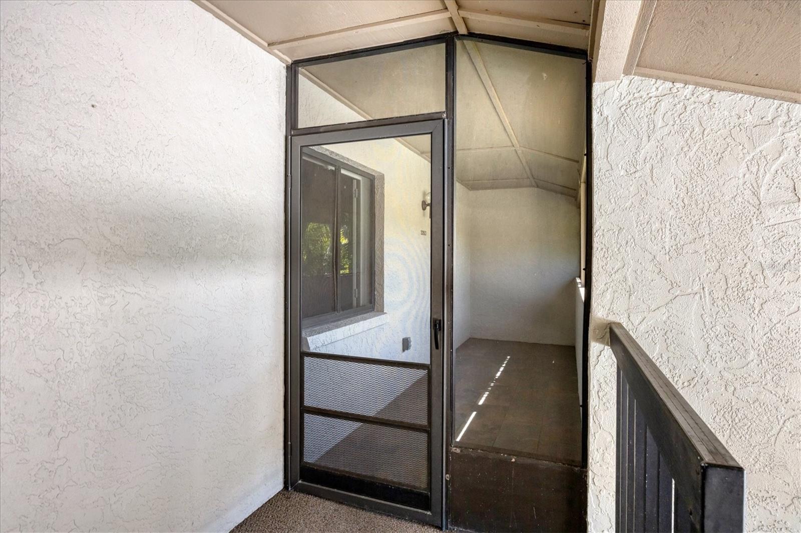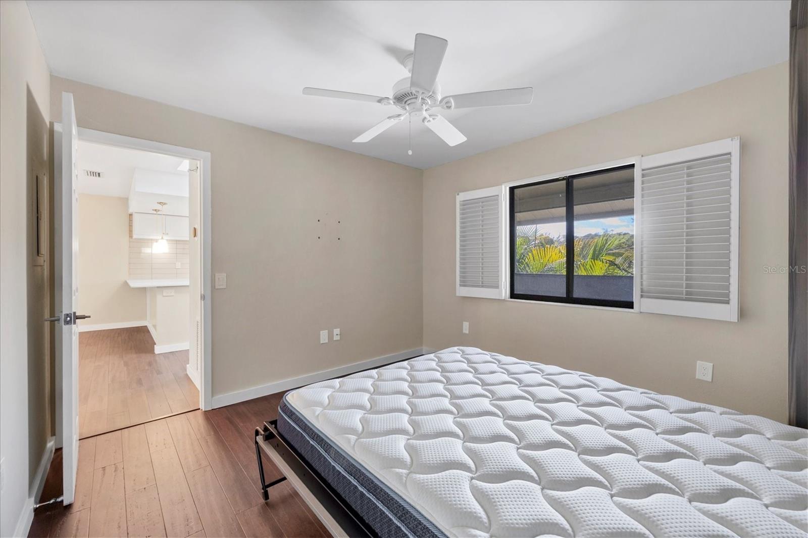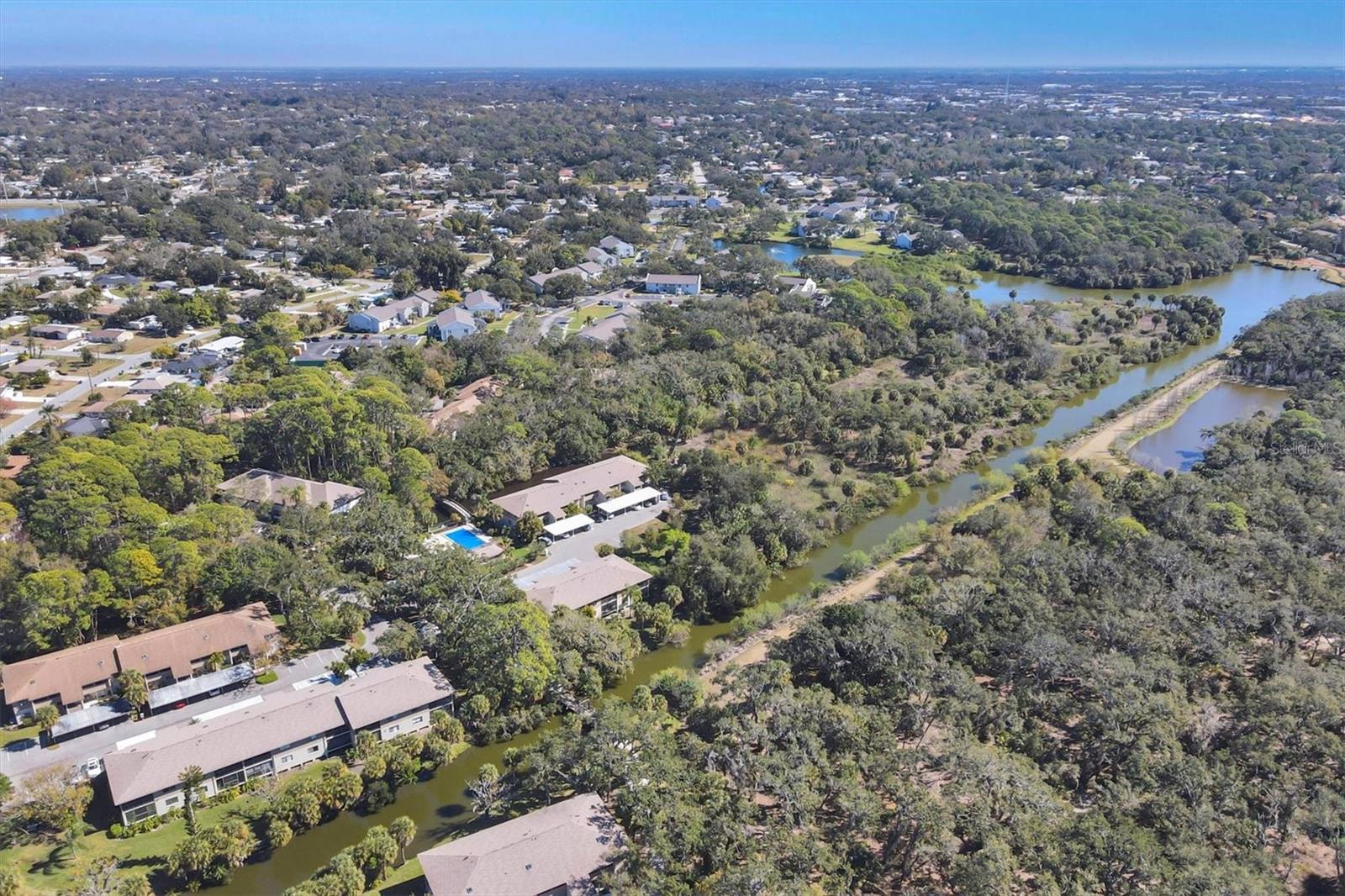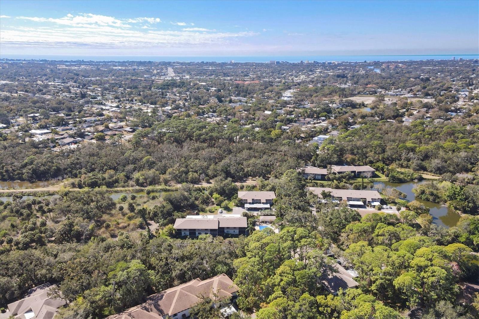 Welcome to Crooked Creek, a hidden gem in Sarasota adjacent to the Red Bug Slough Preserve. This beautifully maintained 2-bedroom, 2-bath 2nd floor residence was completely updated in 2021 and offers serene views of Crooked Creek, a charming wooden bridge, and lush park-like surroundings. The open and airy floor plan features hardwood floors and tile throughout, plantation shutters, a skylight at entry, and modern finishes. The updated kitchen includes white cabinetry, solid surface countertops with a large peninsula, tile backsplash, smart stainless steel appliances, a spacious pantry, and a garden window. The primary suite enjoys peaceful water, a walk-in closet, linen closet and sliding doors to a covered screened lanai. The updated bath has a washer/ dryer closet, as well as tile floors, a modern vanity, and tile shower . The guest bedroom offers flexible use with a built-in workstation and queen-size Murphy bed. Additional features include two screened covered lanais, reverse osmosis water system, covered carport, and ample guest parking. Crooked Creek is a 78-unit community offering a heated resurfaced pool, updated poolside kitchen, gazebo with seating, gas and charcoal grills, tennis/pickleball court, community storage with individual lockers, newer roofs (2019), new carports, and recently painted buildings. HOA fees have been reduced by $69 per month from 2025, reflecting strong reserves and excellent financial management. Conveniently located minutes from Siesta Key Beach, Gulf Gate, downtown Sarasota, shopping, and dining. A true nature lover’s paradise.