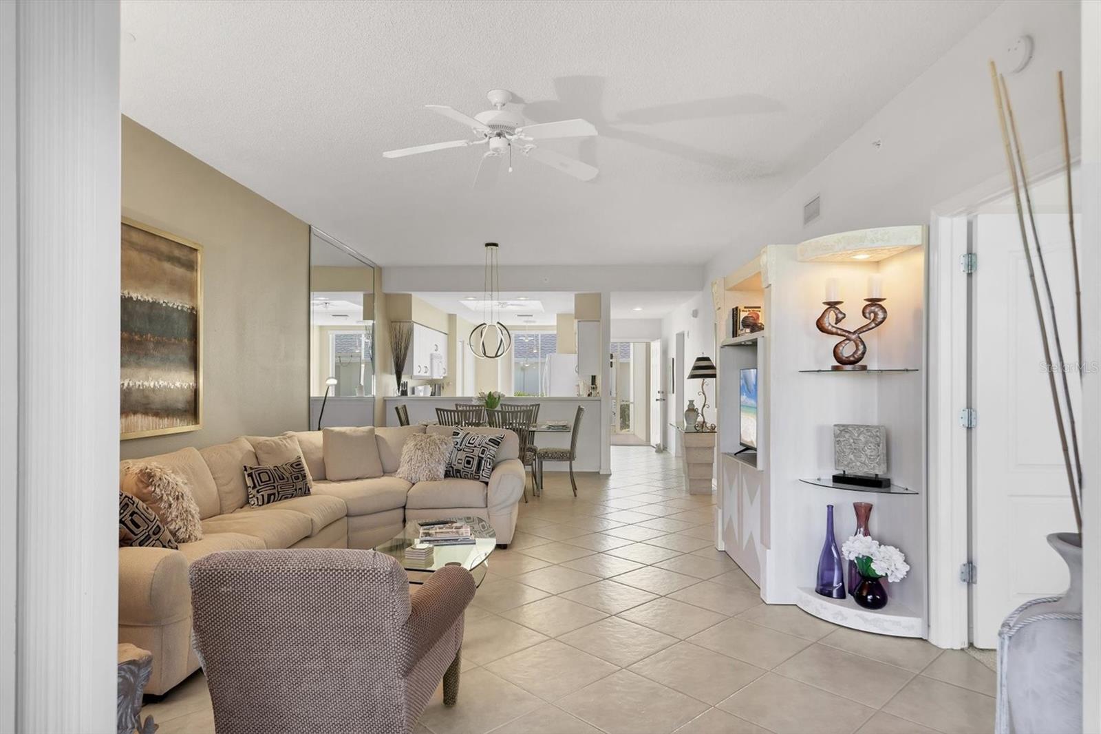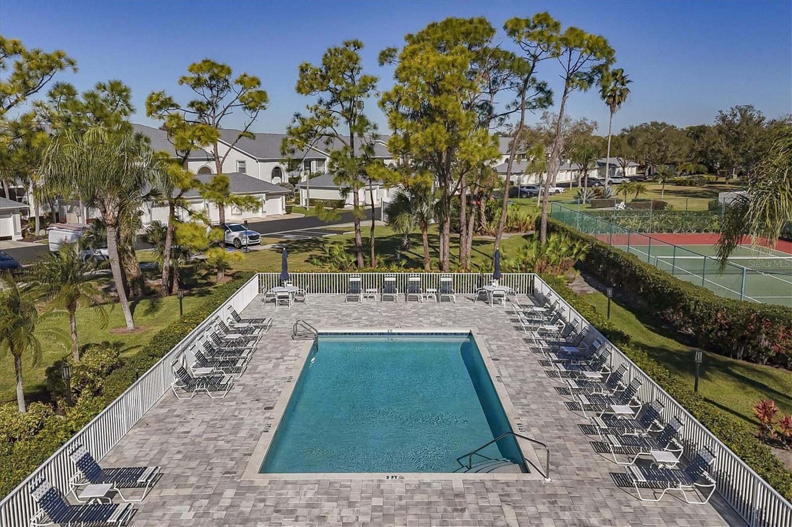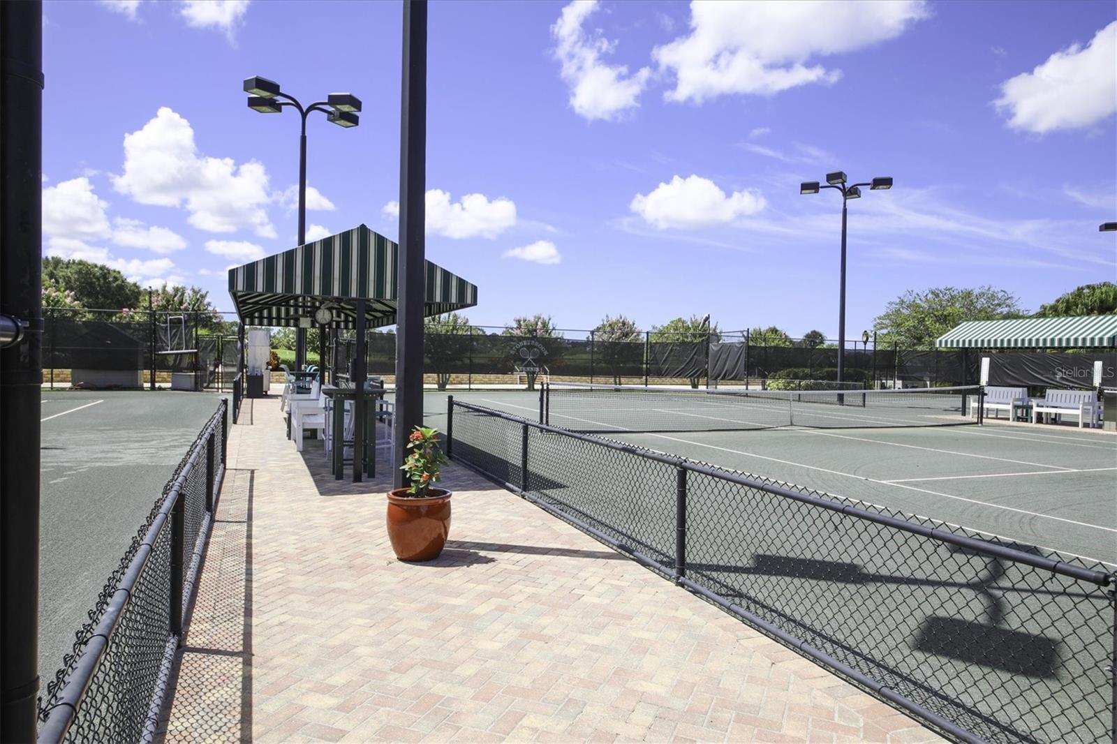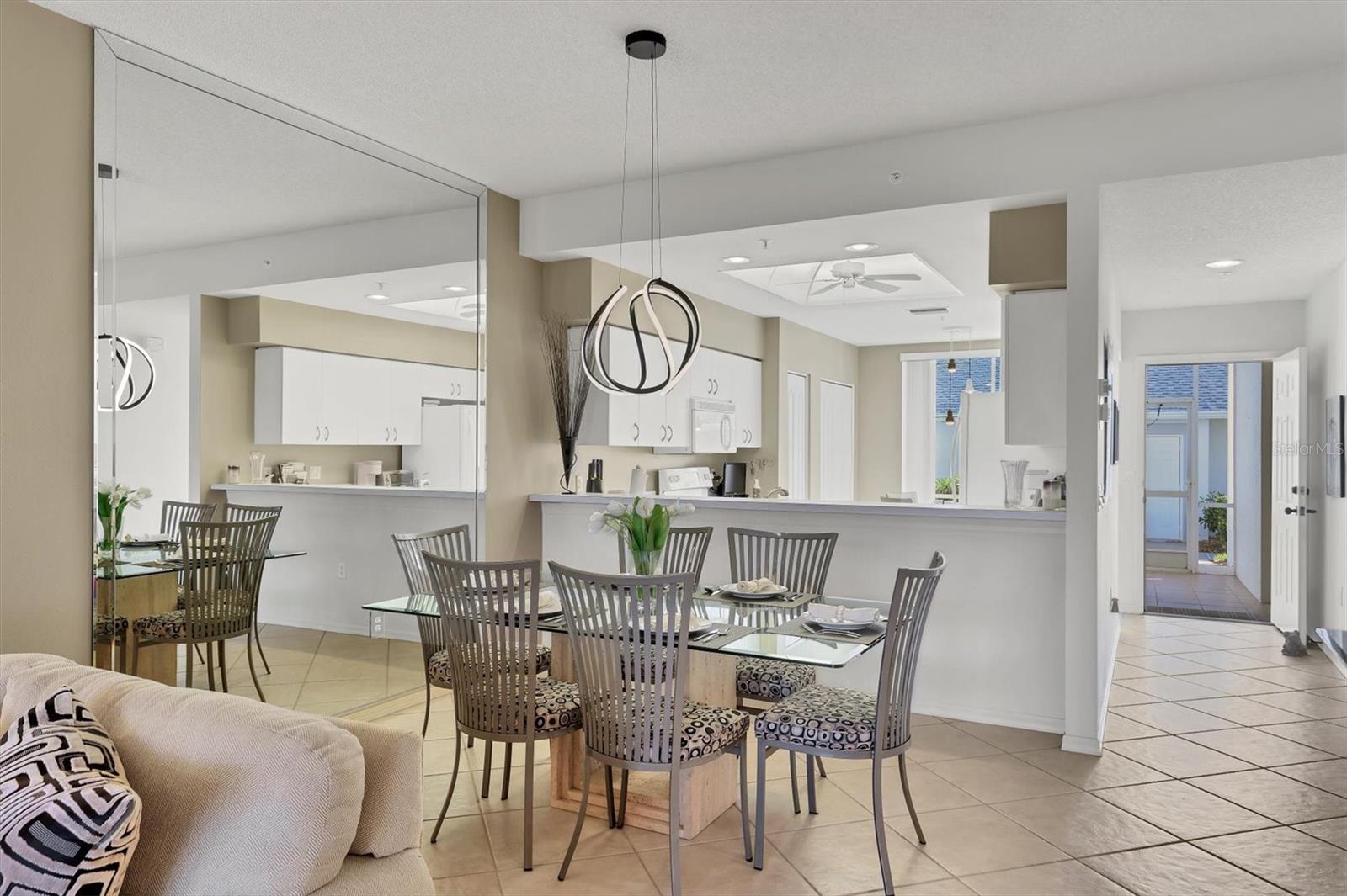 This highly sought-after first-floor condo, in Stoneybrook Golf & Country Club, offers 2 bedrooms, 2 full baths, front and rear lanais, and a detached garage. Thoughtfully updated, the residence features newer appliances, tile flooring throughout the main living areas, and a glass-enclosed rear lanai—perfect for enjoying year-round indoor-outdoor living. Enjoy serene views of the 18th fairway with a picturesque backdrop of a pond, palm trees, and mature live oaks. Located in Veranda Greens North, residents enjoy a nearby community pool and tennis court, along with full access to the exceptional Stoneybrook Golf & Country Club lifestyle. Amenities include a recently modernized 18-hole championship golf course, tennis, fitness center, pro shop, bocce ball, and a restaurant with both indoor and outdoor dining, plus a full bar. Ideally situated near the Legacy Trail and just minutes from Nokomis Beach, Siesta Key Beach, shopping, dining, and entertainment. This unit is being sold turnkey furnished, making it truly move-in ready. As an added value, the seller has paid the 2024 golf course modernization assessment in full saving the buyer over $6,000. More than a home, this is the Stoneybrook lifestyle.