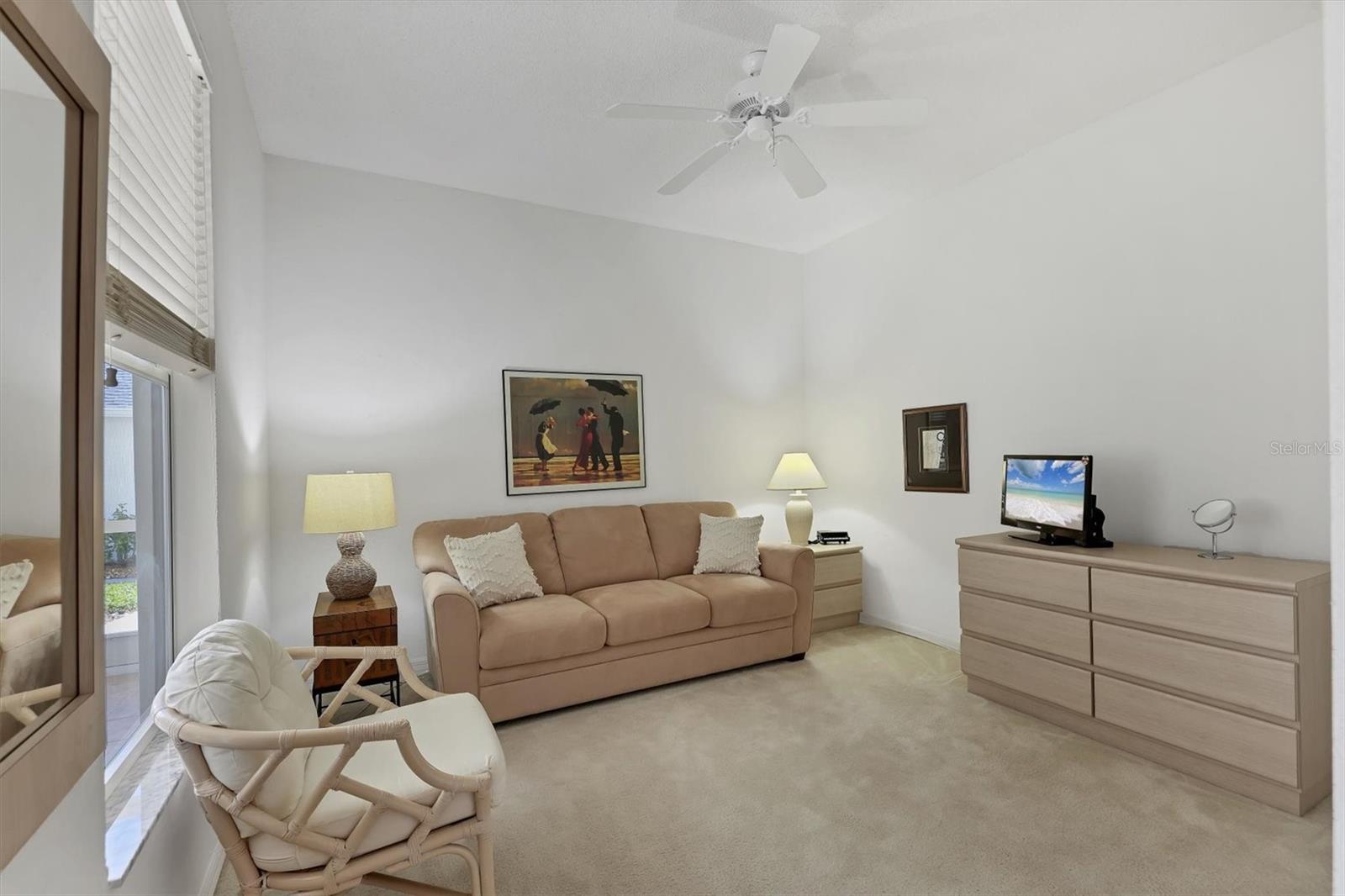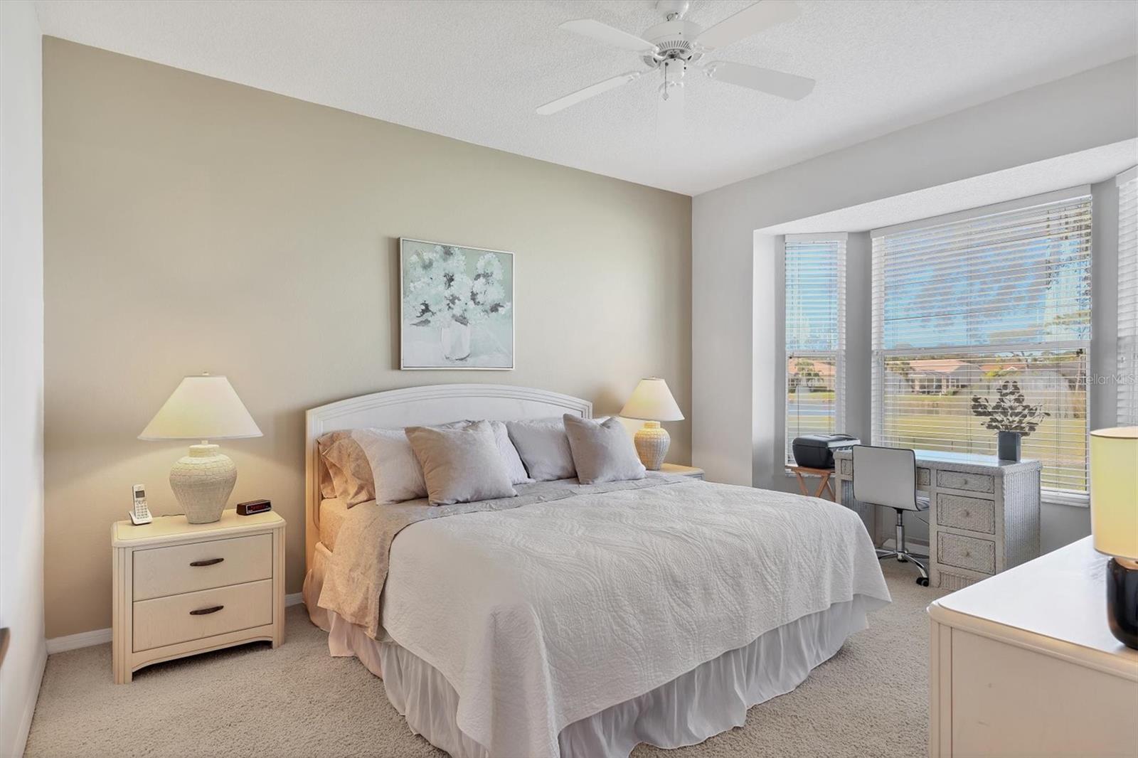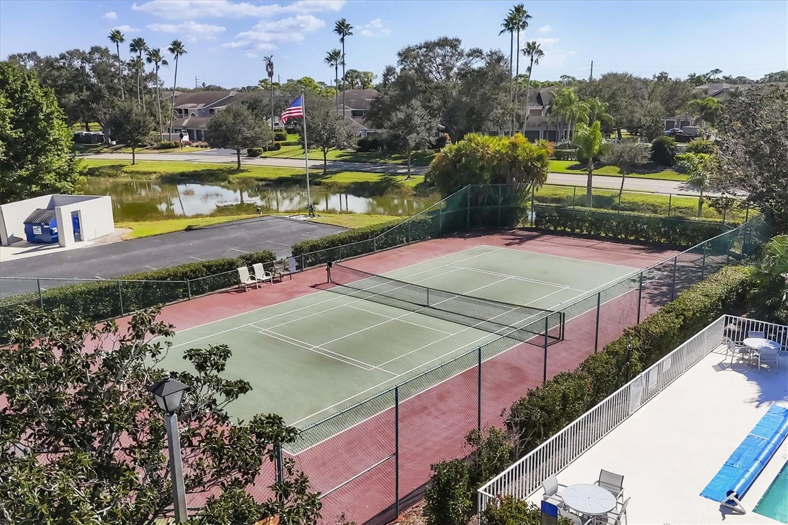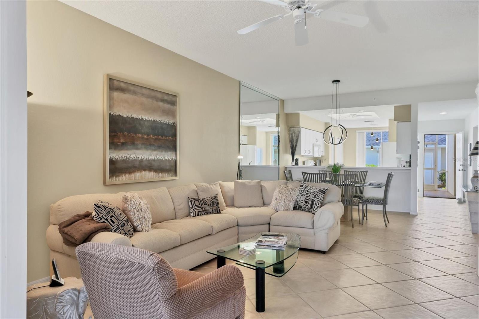 This highly sought-after first-floor condo, in Stoneybrook Golf & Country Club, offers 2 bedrooms, 2 full baths, front and rear lanais, and a detached garage. Thoughtfully updated, the residence features newer appliances, tile flooring throughout the main living areas, and a glass-enclosed rear lanai—perfect for enjoying year-round indoor-outdoor living. Enjoy serene views of the 18th fairway with a picturesque backdrop of a pond, palm trees, and mature live oaks. Located in Veranda Greens North, residents enjoy a nearby community pool and tennis court, along with full access to the exceptional Stoneybrook Golf & Country Club lifestyle. Amenities include a recently modernized 18-hole championship golf course, tennis, fitness center, pro shop, bocce ball, and a restaurant with both indoor and outdoor dining, plus a full bar. Ideally situated near the Legacy Trail and just minutes from Nokomis Beach, Siesta Key Beach, shopping, dining, and entertainment. This unit is being sold turnkey furnished, making it truly move-in ready. As an added value, the seller has paid the 2024 golf course modernization assessment in full saving the buyer over $6,000. More than a home, this is the Stoneybrook lifestyle.