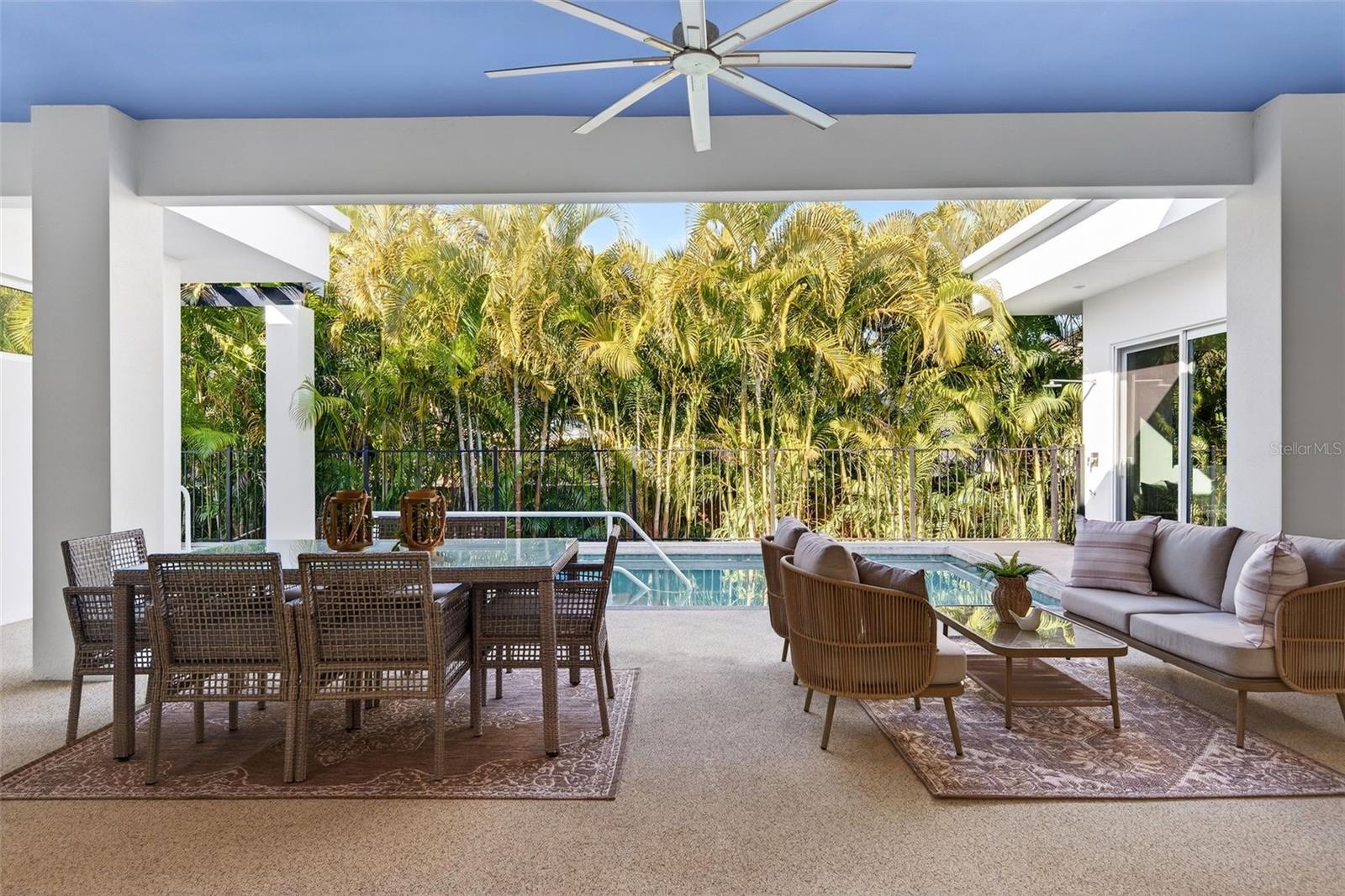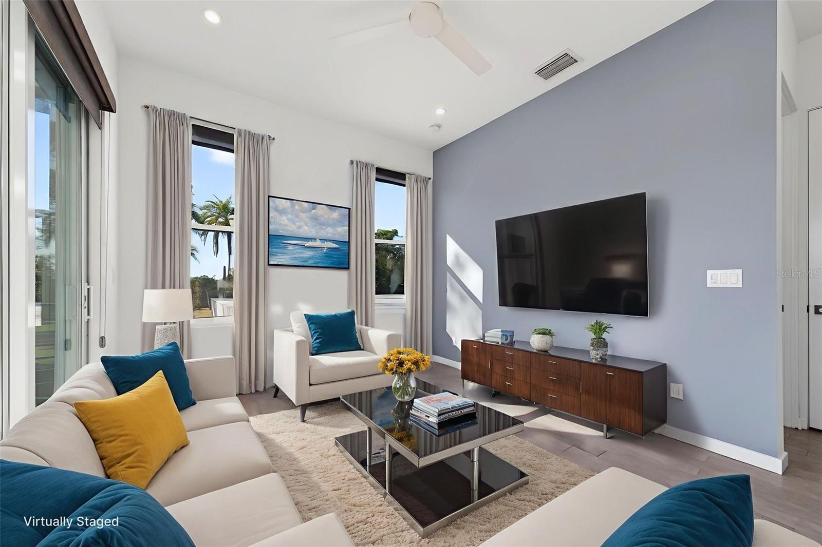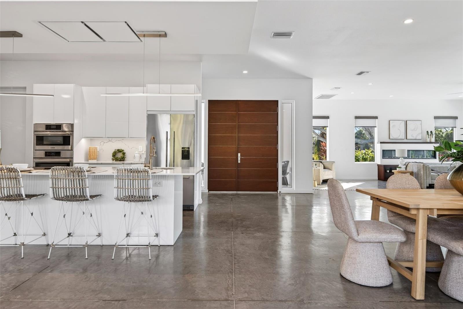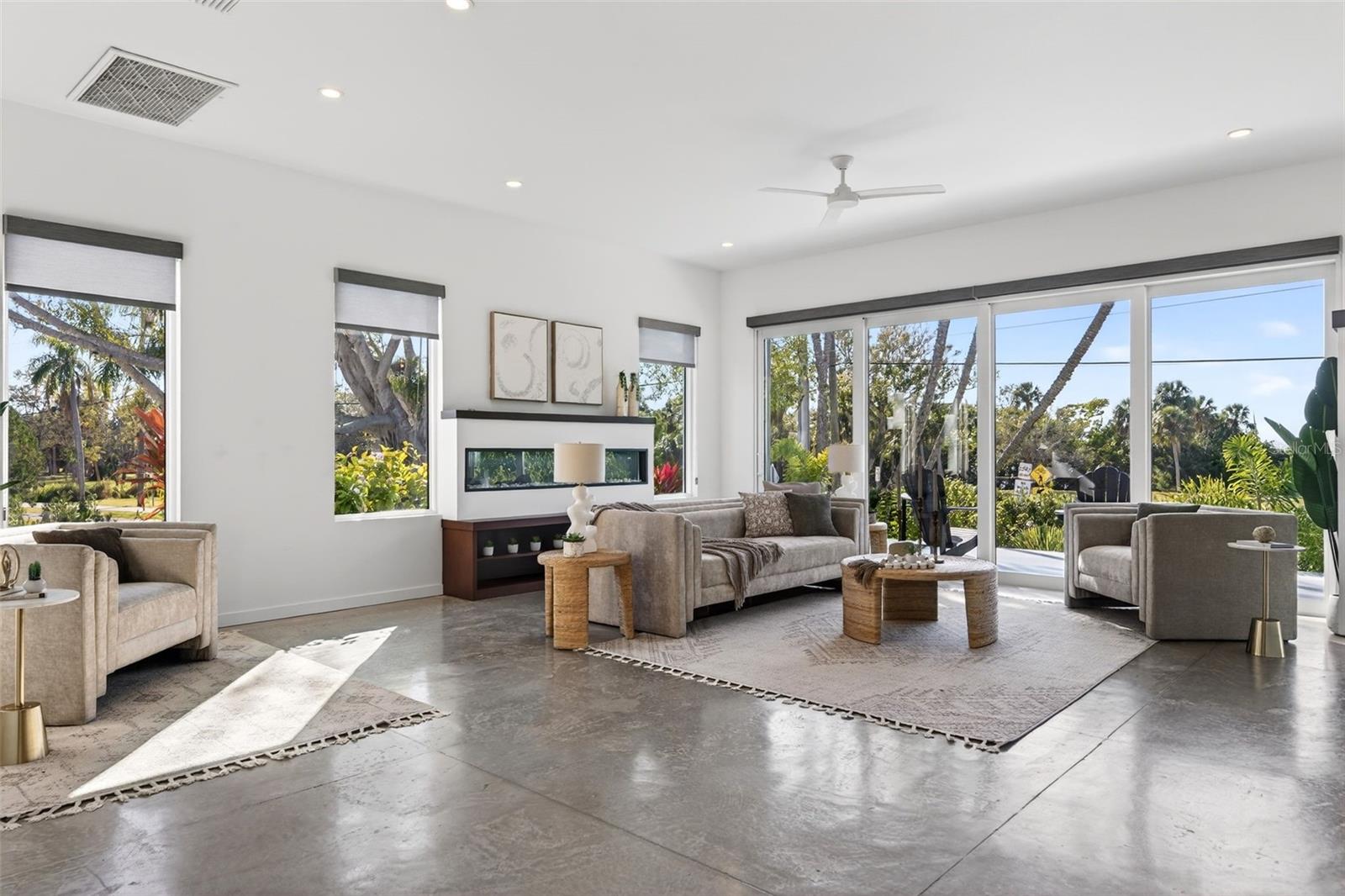 Tucked away in one of Sarasota's best-kept secrets, just steps from Sarasota Bay and moments from The Ringling Museum, 405 Edwards Drive offers a rare blend of privacy, architecture, and flexibility. Built in 2019, this thoughtfully designed residence feels like a private retreat, centered around a serene courtyard pool that brings light, air, and effortless indoor-outdoor living to the heart of the home. The main residence lives entirely on the first floor, with four bedrooms thoughtfully arranged to create both connection and separation. Walls of glass and clean architectural lines frame views of the courtyard, while the open living spaces flow seamlessly to the outdoor lounge and pool area, perfect for quiet mornings, afternoon swims, or evenings under the stars. The layout is both functional and inviting, ideal for everyday living as well as entertaining. Adding to the homes versatility is a separately accessed second-floor guest residence. Complete with its own bedroom, full bath, kitchen, living area, and private terrace, this space is ideal for extended family, long-term guests. Located in a quiet bay front neighborhood that many overlook but few forget, this home offers immediate access to waterfront sunsets, cultural landmarks, and downtown Sarasota all while feeling tucked away from it all.