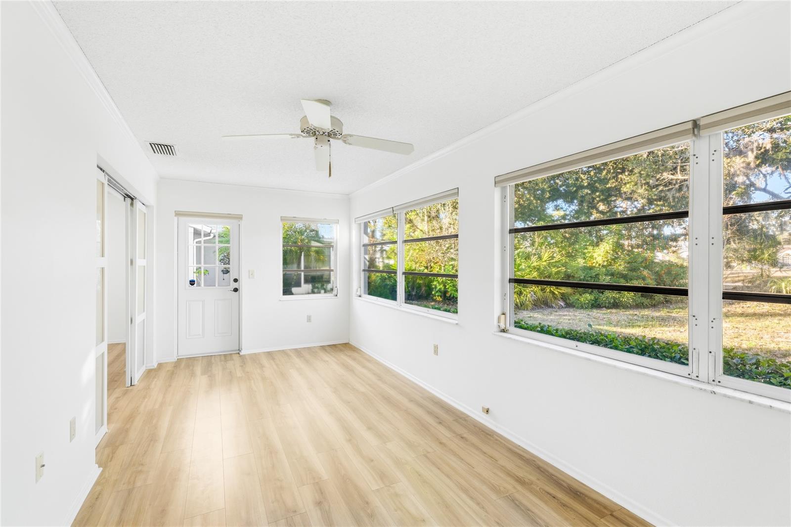 One or more photo(s) has been virtually staged. Located in the Villas of Cedar Creek, this well-maintained 2-bedroom, 2-bath villa offers just over 1,400 square feet of light-filled living space designed for comfort and ease. Surrounded by mature trees and greenery, the setting feels peaceful and established while remaining close to UTC Mall, I-75, Lakewood Ranch, shopping, dining, and everyday conveniences. Inside, the home features updated laminate wood flooring throughout the main living areas and bedrooms, creating a clean, cohesive look. The spacious living and dining areas offer flexible layout options and are enhanced by abundant natural light. The kitchen is bright and functional with stainless steel appliances, ample cabinetry, and a convenient layout that opens easily to the main living space. A highlight of the home is the enclosed Florida room, which adds valuable additional square footage and functions beautifully as a sunroom, home office, or secondary living area. Large windows frame views of the surrounding greenery, reinforcing the calm, residential feel throughout the home. Both bedrooms are generously sized, with the primary suite offering a comfortable retreat complete with a private bath and ample closet space. Additional features include modern lighting, ceiling fans, neutral finishes, and a full-size interior laundry area. The attached two-car garage, accessed via a screened breezeway, provides everyday convenience and extra storage. Residents of Cedar Creek enjoy low HOA fees and access to a community pool and hot tub, along with a walkable neighborhood setting filled with mature landscaping, ponds, and wildlife. This villa is an excellent option for a primary residence, seasonal retreat, or lock-and-leave lifestyle in one of Sarasota’s most convenient locations. **THIS PROPERTY QUALIFIES FOR A 1% LENDER INCENTIVE IF USING PREFERRED LENDER. INQUIRE FOR MORE DETAILS.**