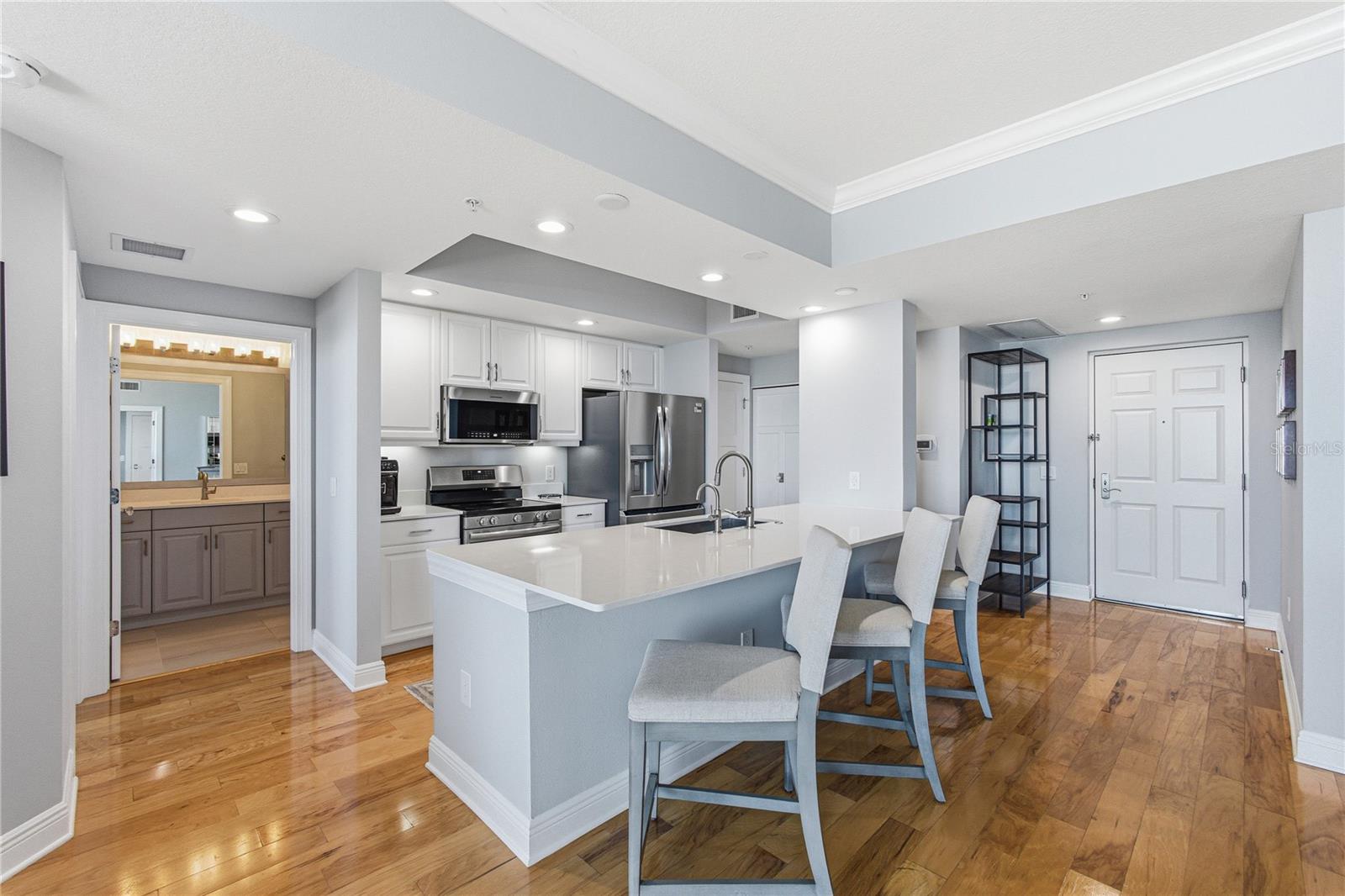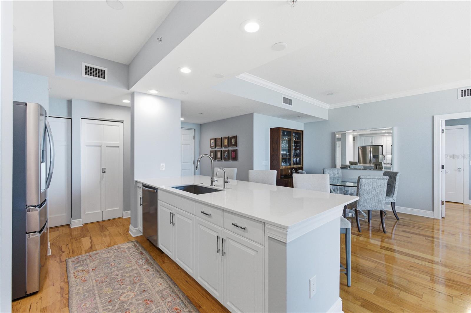 Prepare to be wowed. This expansive water-view and renovated residence on the 12th floor delivers breathtaking Sarasota sunsets and tranquil bayfront vistas the moment you step inside. Thoughtfully designed and impeccably maintained, the home is ideally situated within Sarasota’s cultural epicenter—just steps from world-class performing arts, tranquil garden spaces, the waterfront promenade, and The Bay Park’s scenic walking and cycling paths and multitude of activities. The building itself presents a truly elevated lifestyle, featuring an exceptional array of amenities including a resort-style pool and spa, fitness center with sauna, private theater, billiard room, library, club and tea rooms, business center, wine storage, bicycle storage, private storage, and three guest suites. Residents also enjoy the convenience and security of a 24-hour doorman and two deeded parking spaces. Inside the residence, refined updates enhance both form and function. Features include fresh paint, newer interior doors with glass knobs, custom closets, and plantation shutters. The kitchen has been tastefully updated with a reconfigured island showcasing a single-level quartz countertop, new sink, and new appliances installed in December 2024. The spa-inspired primary bath and renovated second bath offer a calming, contemporary aesthetic. Major system updates include a 2019 HVAC and a 2017 water heater, ensuring peace of mind. This is elevated Sarasota living—where sweeping water views, walkable culture, and turnkey luxury come together in one exceptional home.