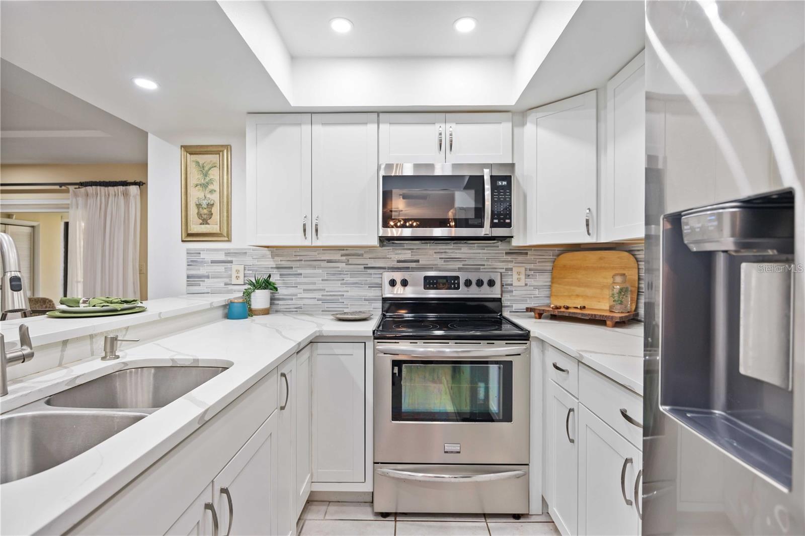 UPDATED 2 BEDROOM, 2 BATH CONDO . . . FIRST FLOOR END UNIT . . . . . COVERED ASSIGNED PARKING RIGHT AT THE FRONT DOOR . . . OPEN AND BRIGHT . . . INDOOR OUTDOOR PATIO SPACE . . .SPLIT FLOOR PLAN . . . Introducing a beautifully updated 2-bedroom, 2-bath condo centrally located in Terraces of Forest Lakes off Beneva. The tasteful updates combine modern elegance with comfort and function. The newly updated contemporary kitchen with solid wood cabinets, quartz countertops, ceramic tile flooring and stainless steel appliances makes it a perfect space for cooking and entertaining. Both bathrooms have also been thoughtfully updated, enhancing the overall appeal of the home. The unit has been freshly painted, giving it a bright and inviting atmosphere throughout. Enjoy the convenience of a full-size washer and dryer right inside the home, eliminating the hassle of laundry days. Say goodbye to dated popcorn ceilings, as this condo proudly showcases updated ceilings, stylish new ceiling fans and recessed lighting, adding a fresh and airy ambiance to the living space. The enclosed lanai offers a serene spot to unwind, providing a perfect blend of indoor and outdoor living. For your convenience, covered carport parking is steps from your front door, keeping your vehicle protected from the Florida sun and ensuring easy access to your home. Located just a short distance from downtown Sarasota, the beautiful beaches of Lido and Siesta Key, and the scenic Legacy Trail, this condo is ideally situated for those who appreciate both leisure and convenience. Don’t miss the opportunity to make this exquisite condo your own! All information provided by the seller is deemed reliable but is not guaranteed. Buyers are encouraged to verify all information independently.