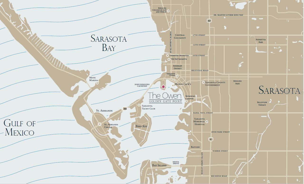 One or more photo(s) has been virtually staged. Under Construction. An intimate gated community of just 29 residences, The Owen is nestled along the southern point of downtown’s Golden Gate Point. Interior finishes include a private elevator entry, 10-foot ceilings per plan, Sub-Zero refrigerator, Wolf five-burner gas cooktop, Wolf wall ovens, quartz countertops, Rohl fixtures, contemporary cabinetry, an oversized island, porcelain tile flooring and a built-in outdoor gas grill. Distinctive resort-style spaces are designed for wellness and leisure, including a 1,700 S.F. fitness center with Technogym equipment, dual locker rooms, steam and sauna, owners' social room, conference/work-from-home suites, game room with pool table, shuffleboard, ping pong table, large screen TV, self-serving outdoor bar and grill area, infinity-edge saltwater pool, spa, and cozy fire pit. A walking path encircling the property and a dog park area are the perfect places for you and your furry friend to get a daily run. The two-story grand entry lobby features relaxing spaces, reception desk with concierge, and separate mail and package rooms. Two parking spaces, one with an outlet for an EV charger are included, along with owner storage and bike storage. Easy access to the restaurants, boutiques, and galleries of downtown, St. Armands Circle, and the beaches of Lido and Longboat Keys, personalized homeowner services, and the security of all new construction make life at The Owen carefree and convenient.