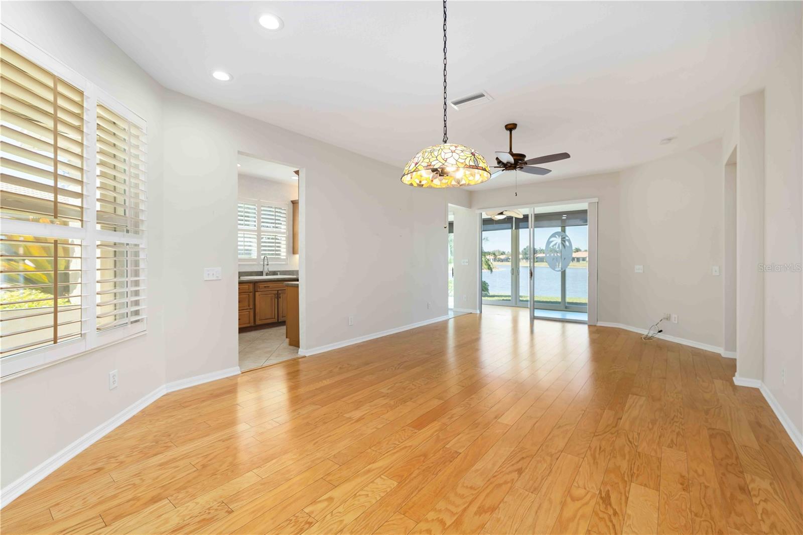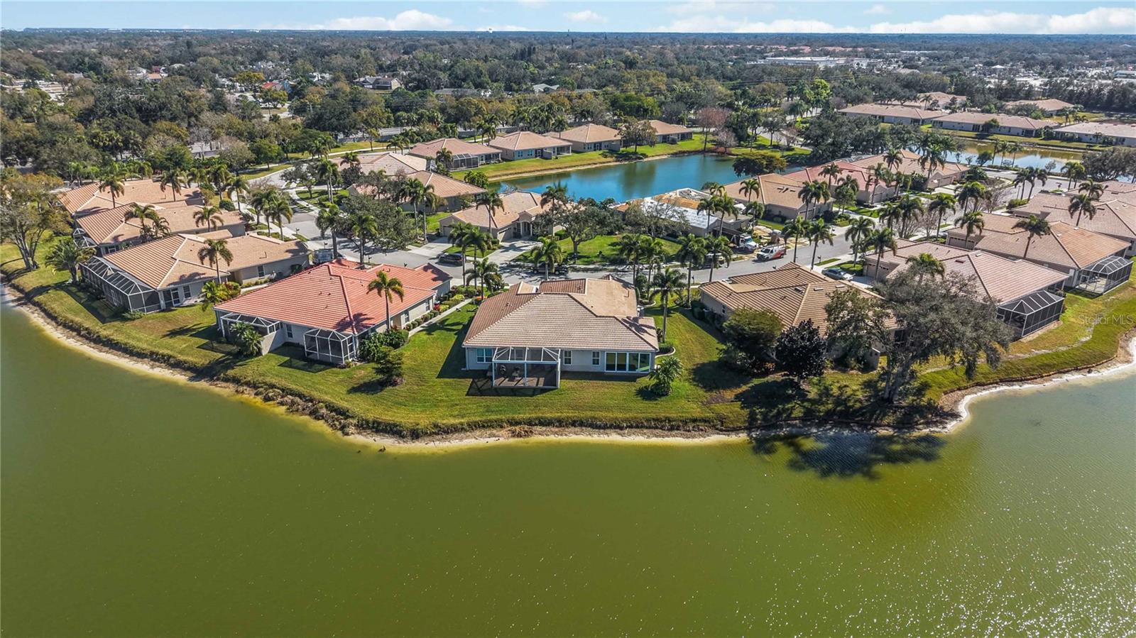 Welcome home to comfort, confidence, and truly worry-free living in this 2 Bedroom plus Den, 2 Bathroom, 2 Car Garage paired Villa. This thoughtfully upgraded home has been meticulously maintained with long-term peace of mind in mind, offering the perfect blend of safety, efficiency, and everyday ease. Major improvements include a NEW ROOF (2025), wind mitigation (2025), HURRICANE-IMPACT WINDOWS throughout, REINFORCED GARAGE DOOR, and a WHOLE-HOUSE GENERATOR—providing security and protection in every season. The Florida room has air conditioning and heat, sunshades, ceiling fan and hurricane doors creating a relaxing, year-round retreat ideal for morning coffee or evening unwinding while enjoying the spectacular lake view. The front lanai is screen enclosed with hurricane shutter. Inside, warm oak flooring flows through the great room and den spaces, complemented by plantation shutters and abundant natural light. The den/office has a built-in desk and storage - perfect for hobbies or a home office. The kitchen is designed for convenience with upgraded cabinetry, pull-out drawers, under-cabinet lighting, and custom-crafted corner cabinets, includes all appliances—making daily living effortless and organized. Home is a split bedroom design offering a spacious en-suite primary bedroom with views of the lake, ceiling fan, carpeting and 2 walk-in closets. Guest bedroom has ceiling fan, carpeting and regular closet. Both bathrooms with accessibility and comfort were clearly prioritized, with beautifully upgraded walk-in showers, grab bars, and comfort-height toilets thoughtfully installed to support ease of movement now and in the future. There are skylights in both bathrooms and the laundry room. Energy efficiency upgrades include additional attic insulation (2024), HEPA and allergen filtration, and LED lighting throughout, helping keep utility costs low and indoor air quality high. Additional highlights include custom closet systems, professional garage storage, motion-activated exterior lighting, landscaped curbing, and transferable home service and A/C maintenance contracts already in place. This is a move-in-ready home designed to simplify life, reduce maintenance concerns, and allow you to fully enjoy the Florida lifestyle. Lakeridge falls is a 24-hour guard gated, 55+ community which includes a state-of-the-art clubhouse with a community heated/cooled lap pool, hot tub, fitness center, grand salon, bocci ball court and card room. Active social calendar with many events including water aerobics, yoga, art league, mahjong, etc. Miles of walking trails, lush landscaping, and pet-friendly sidewalks. HOA covers landscaping maintenance, lakes and sidewalks for stress-free living. Perfect location close to shopping, Publix, Panera, Starbucks, Detweillers, dining, medical facilities, and the UTC Mall. Easy access to downtown Sarasota, Lido Key, Siesta Key, and Anna Maria Island. Schedule an appointment to make this your perfect Florida retreat!
