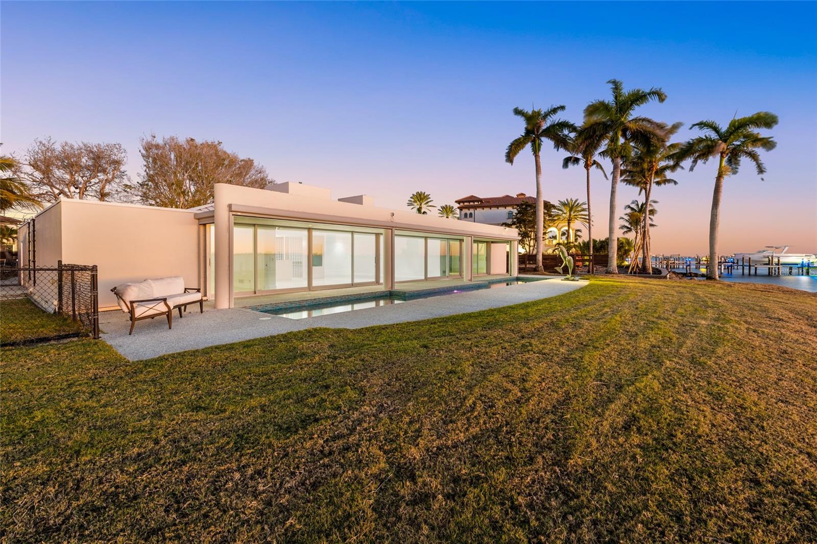 Positioned at the tip of Stephens Point, where Sarasota Bay opens wide and the sky feels endless, 320 South Shore Drive commands what many consider the finest views in the city. With sweeping 180-degree panoramas across North Sarasota Bay, glowing downtown lights and elegant arc of the Ringling Bridge, this is a setting that delivers unforgettable sunsets, constant water activity, and a front row seat to dolphins and wildlife passing by daily. The home’s clean lines, open layout, and extensive use of glass create a seamless connection between indoors and out, allowing the surrounding water and sky to become part of everyday life. From the moment you arrive through the gated entry and enter into the all-glass foyer, the experience is unmistakable. Light pours in, sightlines extend in every direction, and the bay immediately takes center stage. Set on nearly half an acre with expansive direct frontage on Sarasota Bay, the property offers a sense of privacy and an exceptional relationship to the water. Boating enthusiasts will appreciate direct access to the bay, while those drawn to quieter moments will enjoy watching the colors of sunset shift across the horizon and the calm rhythm of the water below. The interior spaces are well-suited for everyday living and entertaining. The living and dining areas are wrapped in glass and flow seamlessly to the outdoor areas, creating an easy indoor-outdoor lifestyle. The kitchen is functional and well-positioned, offering generous workspace, quality finishes and uninterrupted bay views. The primary suite serves as a private retreat, positioned to capture long water views and enhanced by a spa-inspired bath that blends indoor and outdoor living. Additional guest accommodations are thoughtfully arranged, offering comfort and privacy for family and friends while maintaining the home’s cohesive modern aesthetic. Outdoors, the full width lanai and lap pool overlook Sarasota Bay, offering an inviting space to relax, entertain and take in the sunsets that define this location. Mature landscaping, including a striking banyan tree, adds character and a sense of place to the property. 320 South Shore Drive is more than a waterfront home. It is a legacy property that brings together architectural significance, extraordinary views and one of Sarasota’s desired locations. A modern masterpiece designed for those who value design, setting and simple luxury of living on the water at its best.