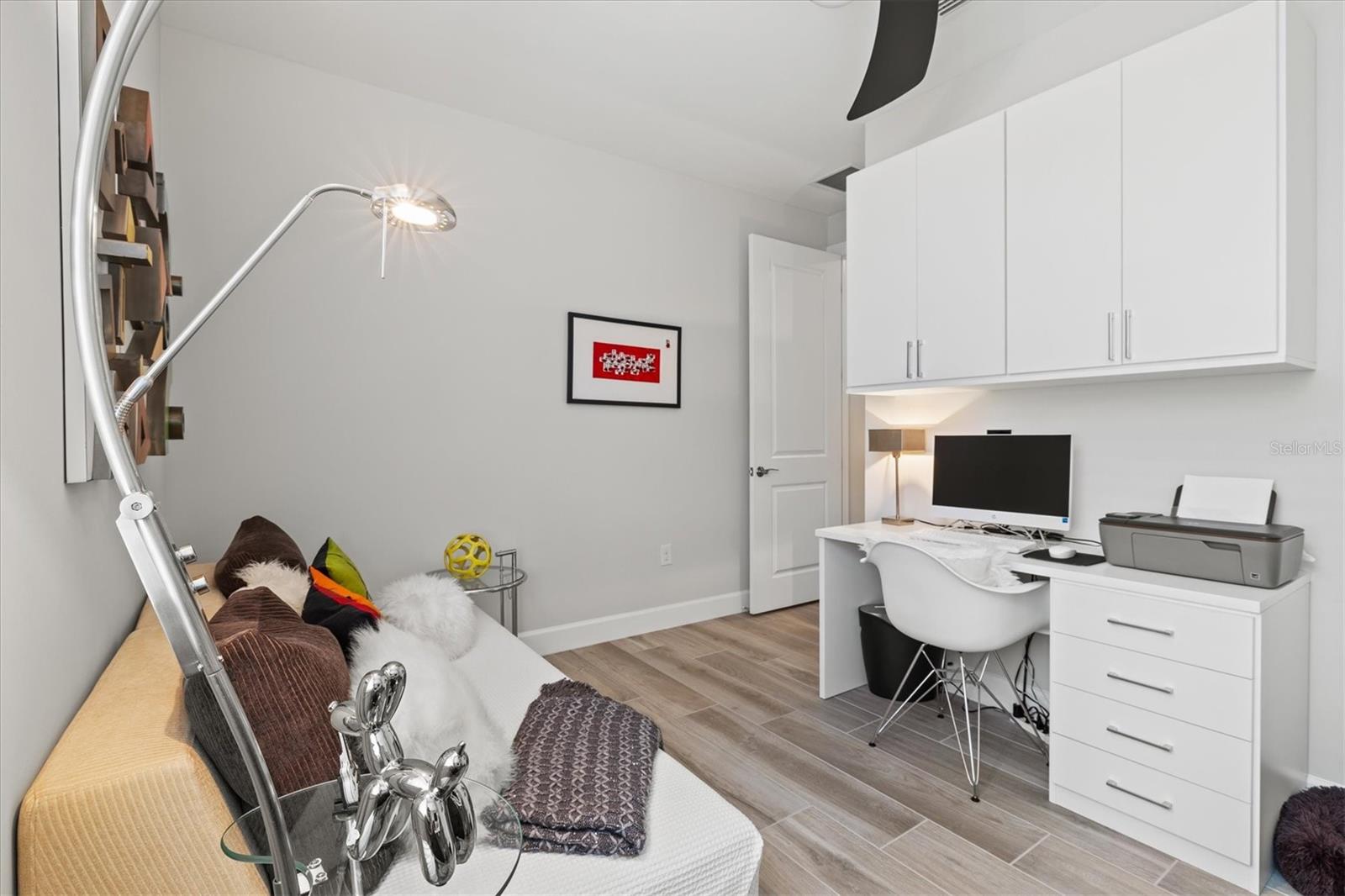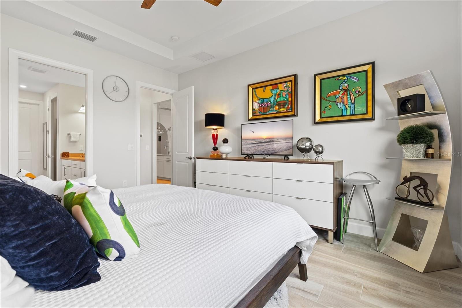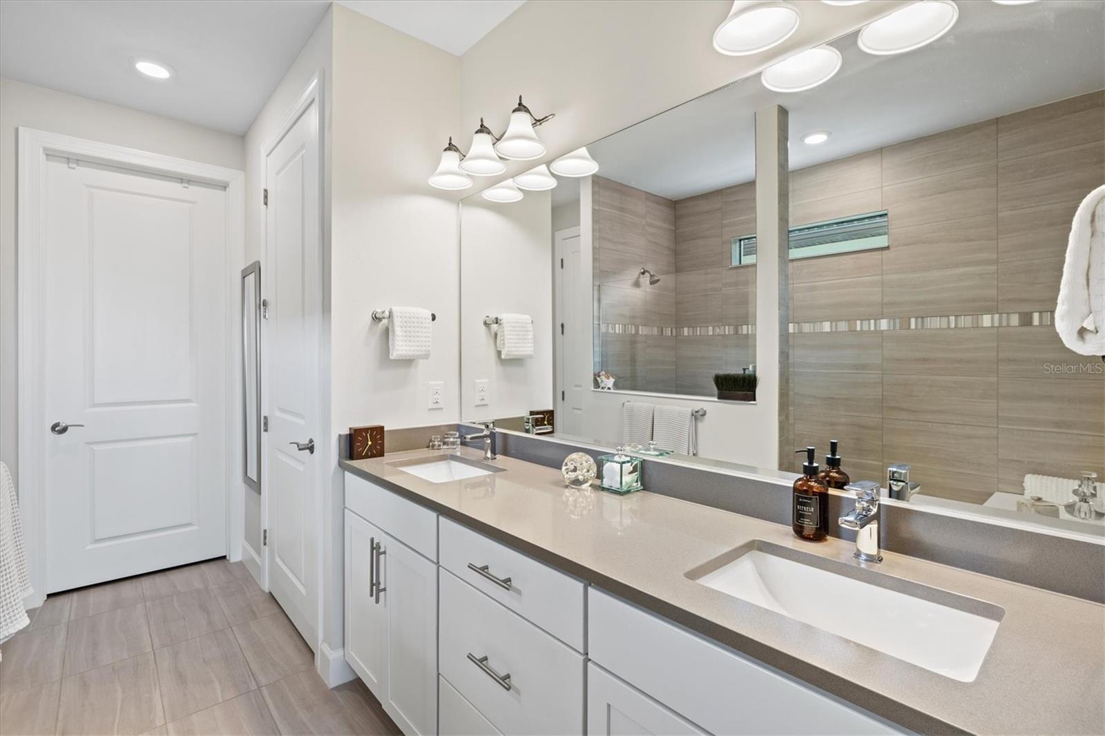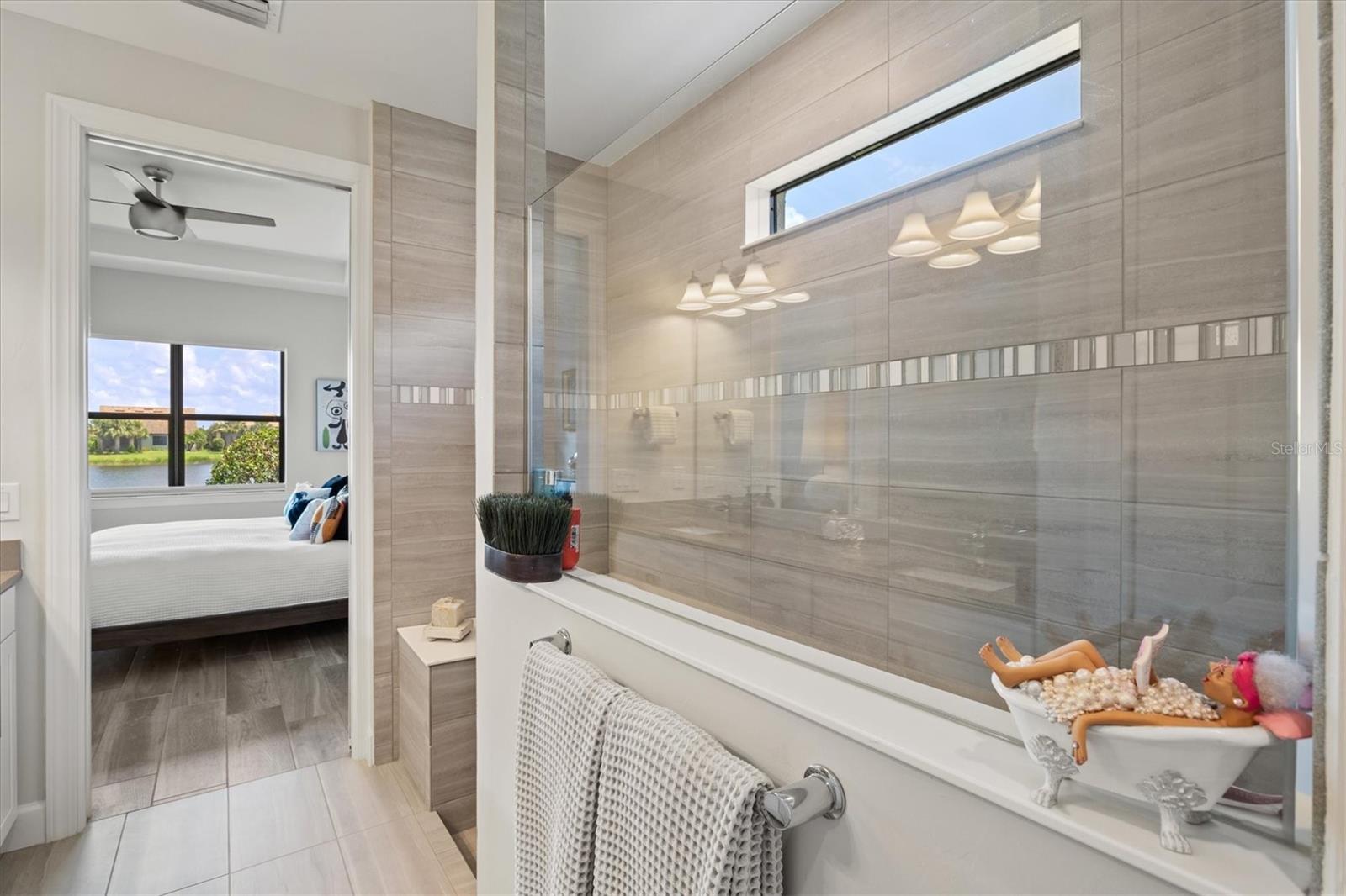 Poised on a premium lakefront lot in Palmer Ranch at Hammock Preserve, this stunning SUMMERWOOD MODEL by DiVosta Homes redefines modern Florida living with over $125,000 in upscale, designer-selected upgrades. From the moment you arrive, the home commands attention with its PROFESSIONALLY UPGRADED grounds and upgraded paver driveway, offering a warm welcome. Step through the etched-glass front door into a sun-drenched foyer, where elevated ceiling heights, custom lighting, and eight-foot interior doors immediately set a tone of elegance and openness. At the heart of the home lies the kitchen, crafted for both beauty and function. Gleaming QUARTZ countertops stretch across flat- panel shaker cabinetry, while dramatic UNDER-CABINET LIGHTING casts a refined glow. The premium KitchenAid STAINLESS STEEL appliance suite includes an iIN-WALL CONVECTION OVEN and microwave, perfectly complemented by a designer faucet and deep basin sink. Whether preparing meals or entertaining, this space offers effortless flow to the expansive great room, where ZERO-CORNER sliding glass doors erase the boundary between indoors and out. Step onto the EXTENDED, screened-in lanai finished in upgraded pavers and take in uninterrupted views of the tranquil lake. This is the ultimate space for morning coffee, sunset gatherings, or quiet reflection. Inside, no detail has been overlooked. Every surface, from the upgraded flooring to the custom paint and lighting, reflects superior craftsmanship. The den features glass French doors and offers a peaceful escape for work or reading, while a versatile bonus room with California Closets built-in desks and cabinetry can easily serve as a fourth bedroom, playroom, or home studio. The laundry room is fully functional with upper cabinetry and a utility sink for added convenience. The owner’s suite is a private sanctuary with serene water views, a built-in dresser designed and installed by California Closets, and an expansive walk-in closet. The spa-inspired ensuite bath showcases a frameless glass enclosure, floor-to-ceiling tile, an enlarged walk-in shower, dual sinks, and upgraded fixtures, all designed to elevate everyday living. Additional highlights include COMFORT HEIGHT VANITIES in all bathrooms, CUSTOM BLINDS throughout, and high-performance window treatments — FADE-SHIELD FILM on the living room windows and 3M HEAT-repellent glaze on the front bedroom windows, both under limited lifetime warranties. The garage is equally impressive with EPOXY flooring and extensive built-in storage, blending form and function for optimal organization. Located in a vibrant, amenity-rich, gated community with no CDD fee, Hammock Preserve offers an elevated lifestyle with a resort-style pool and spa, barefoot bar, fire pit, and outdoor grills. The clubhouse includes a catering kitchen, fitness center, and lending library. Enjoy two tennis courts, two pickleball courts, bocce courts, a dog park, and a peaceful fishing pier. All of this just seven miles from Nokomis Beach and within easy reach of Siesta Key, downtown Sarasota, and the UTC Mall. This is not just a home — it is a statement of refined Florida living at its finest.