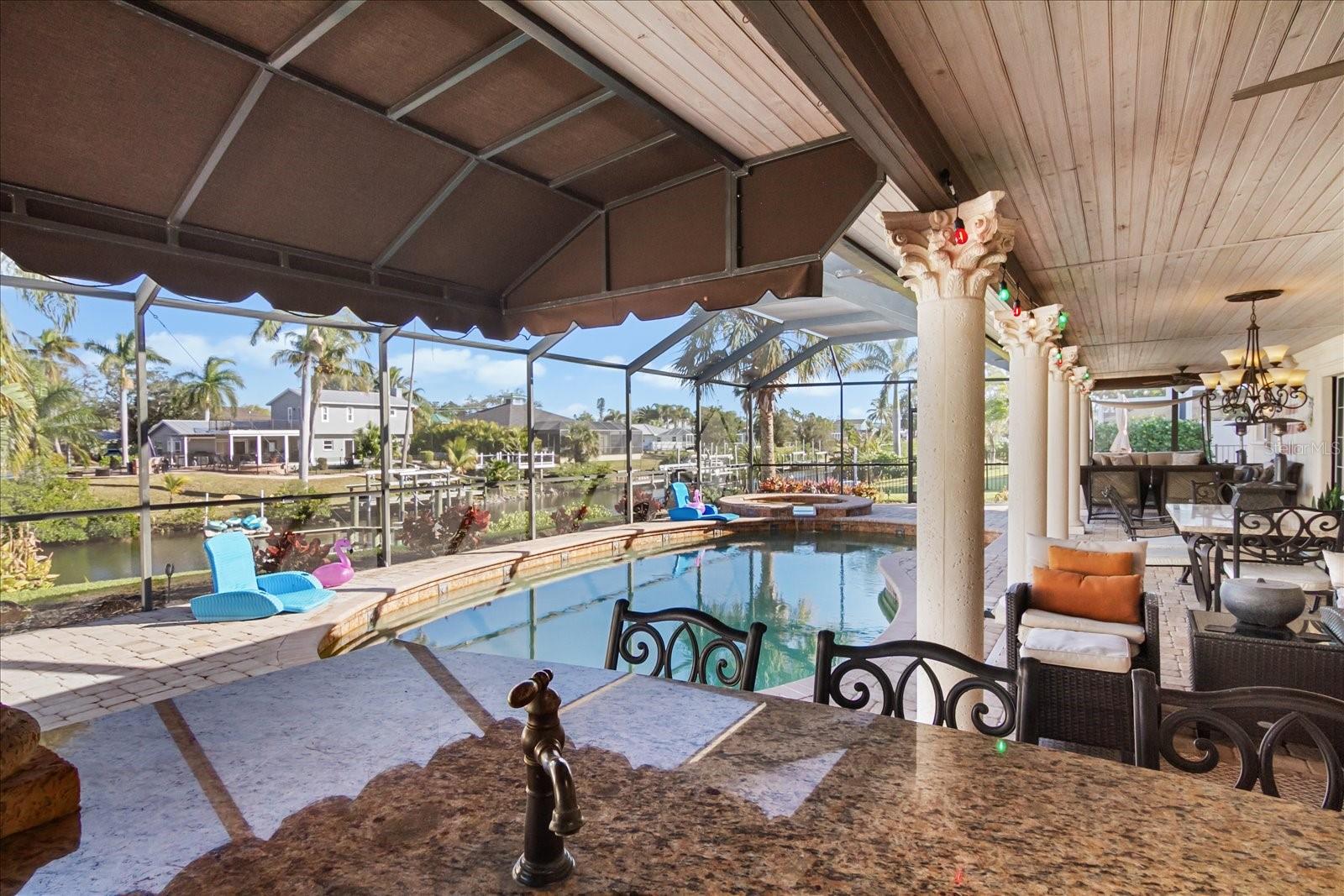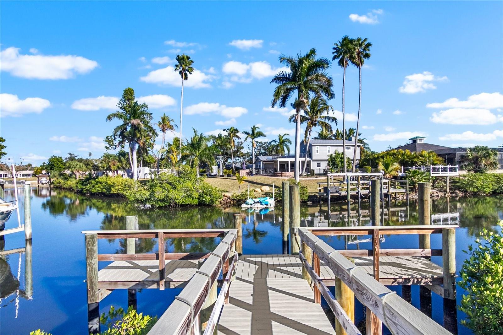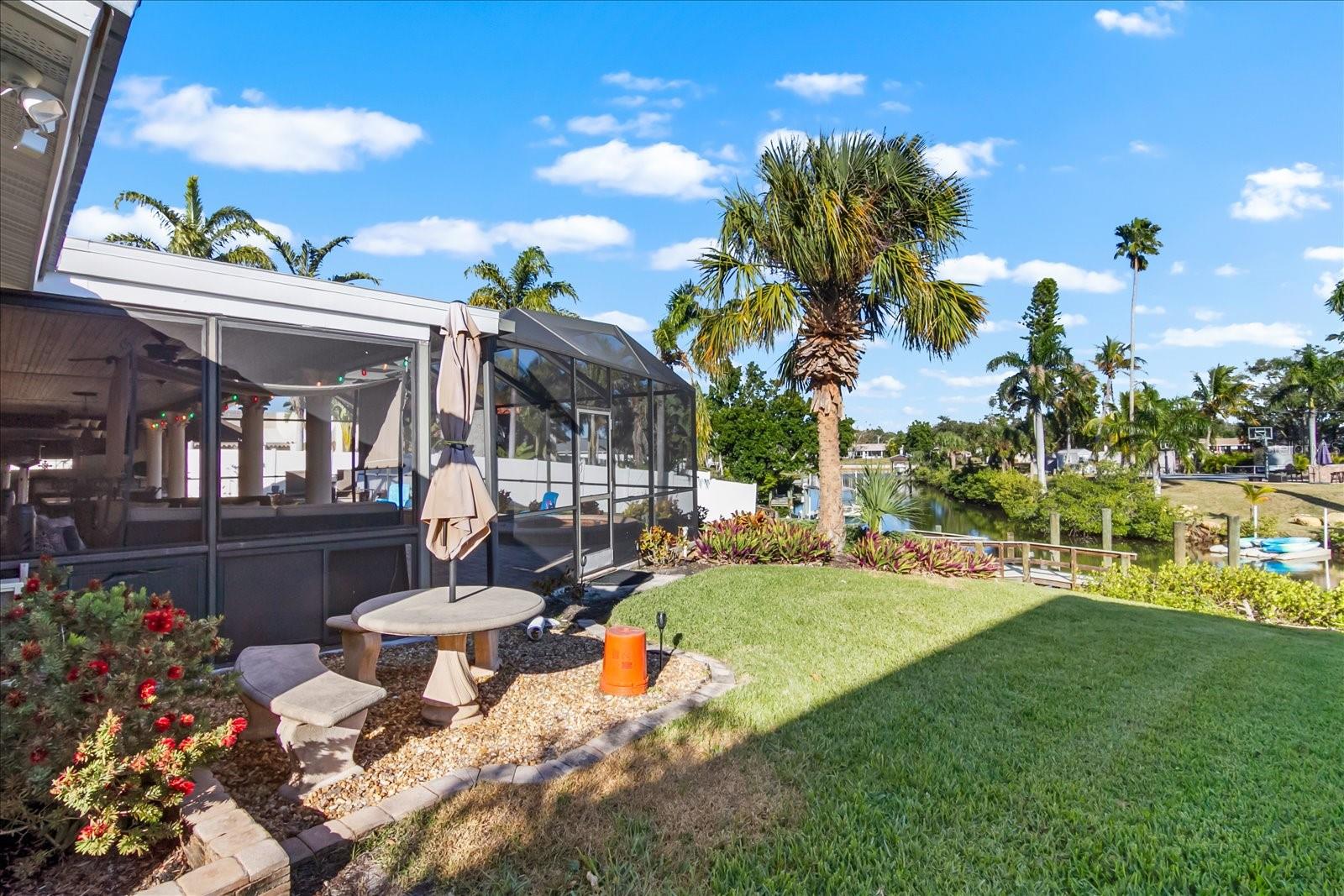 Your Land and Sea Refuge! This beautiful waterfront home features 3 bedrooms and 2 1/2 baths. Crown molding! Granite countertops! Double ovens! Custom cooktop with range hood .New refrigerator, dishwasher, wine cooler, clothes washer, and clothes dryer. New metal roof. Enjoy hosting parties on the spacious, screen enclosed, rear deck along with using the summer kitchen with pool / spa. Your own personal utility boat dock allows you access to the intercoastal waterway. Endless relaxation in this quiet neighborhood. As a plus, just 15 minutes away from the highly accredited Pine View magnet school.