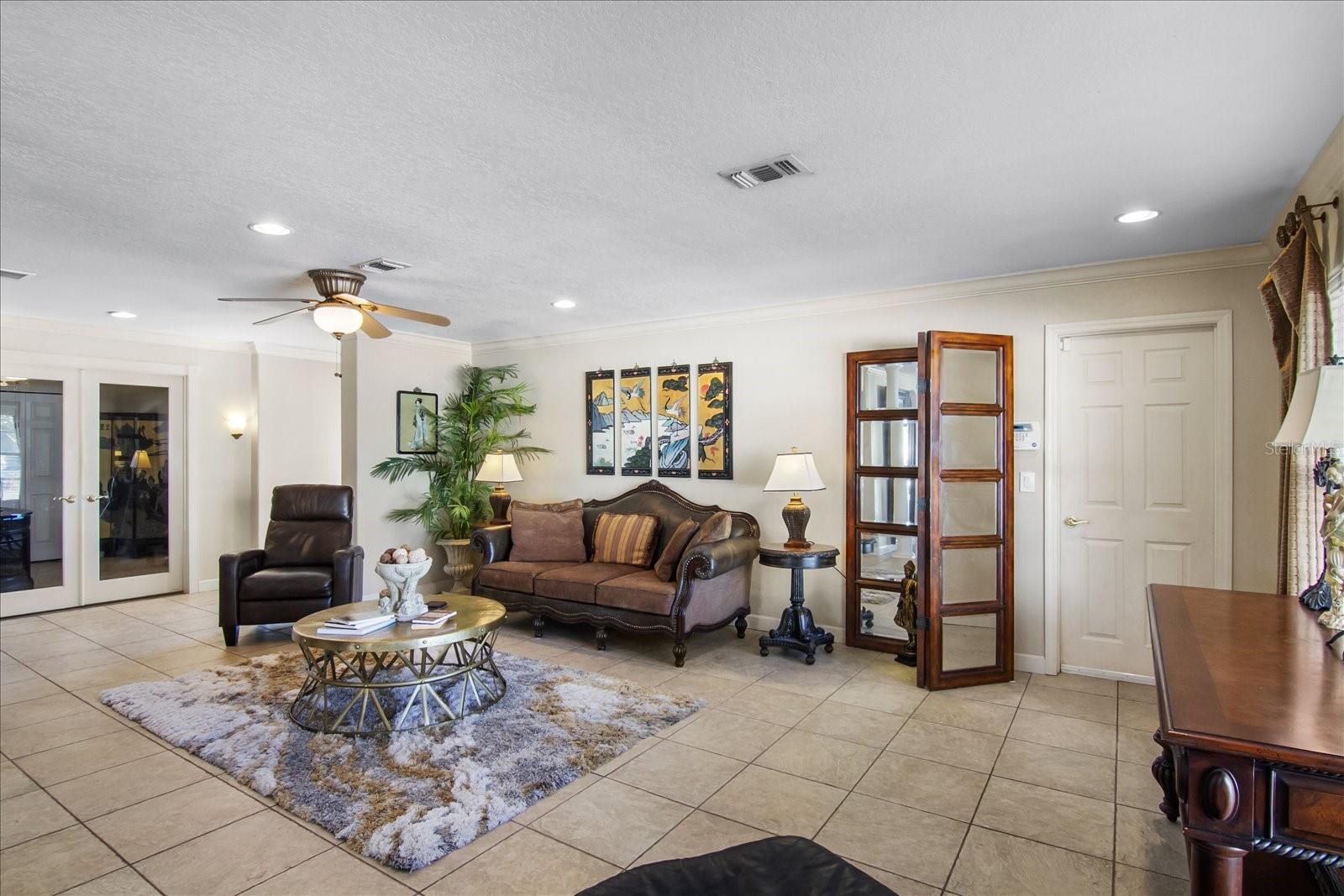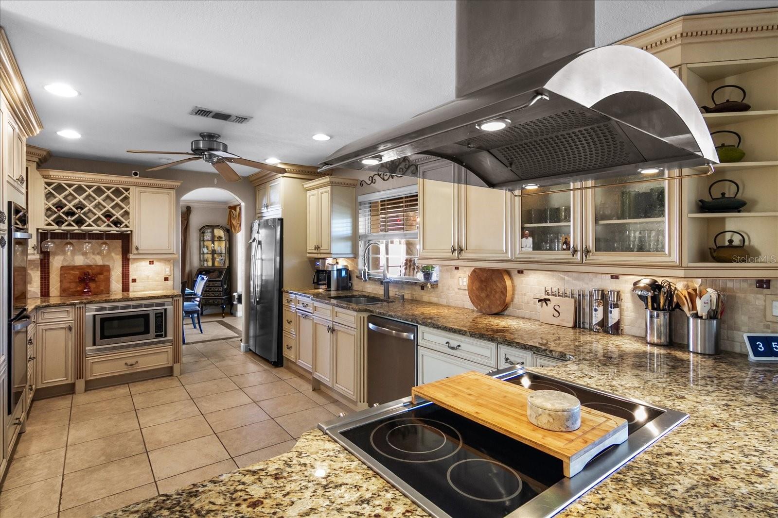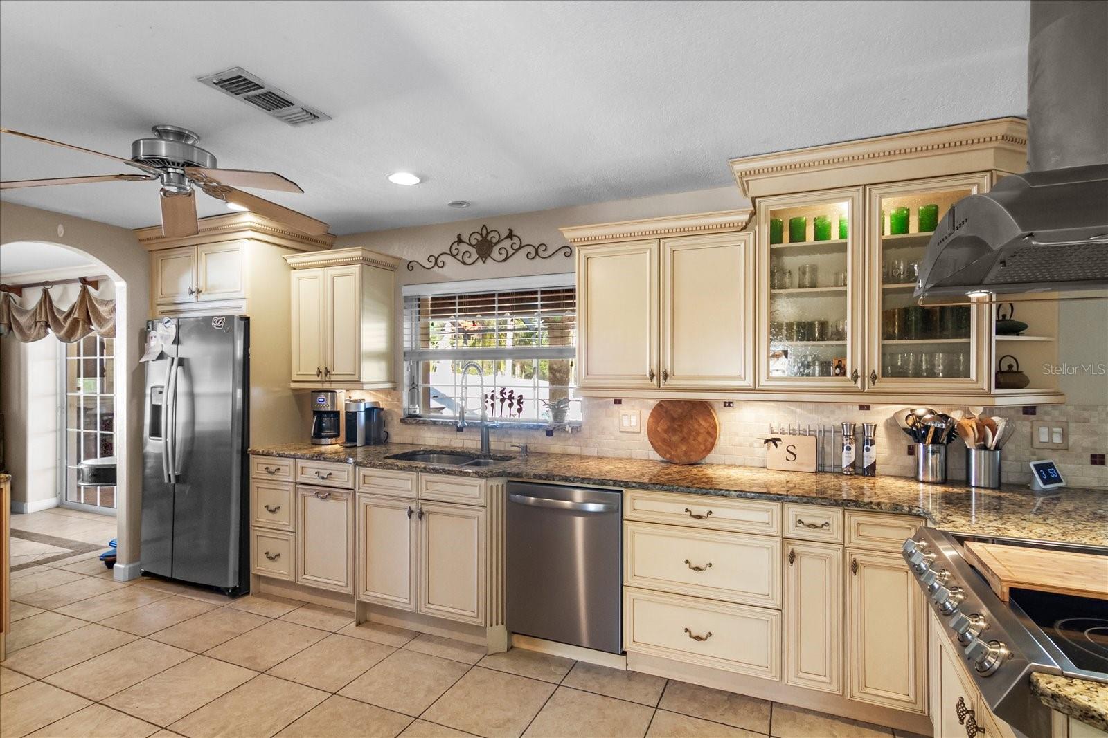 Your Land and Sea Refuge! This beautiful waterfront home features 3 bedrooms and 2 1/2 baths. Crown molding! Granite countertops! Double ovens! Custom cooktop with range hood .New refrigerator, dishwasher, wine cooler, clothes washer, and clothes dryer. New metal roof. Enjoy hosting parties on the spacious, screen enclosed, rear deck along with using the summer kitchen with pool / spa. Your own personal utility boat dock allows you access to the intercoastal waterway. Endless relaxation in this quiet neighborhood. As a plus, just 15 minutes away from the highly accredited Pine View magnet school.