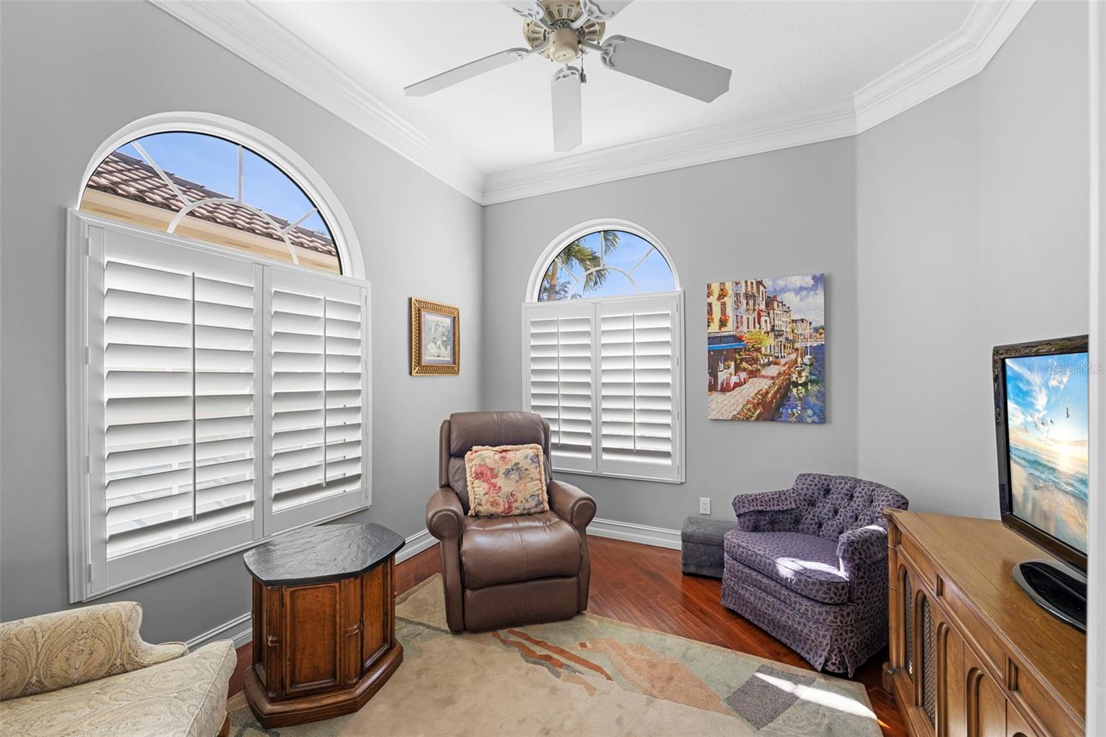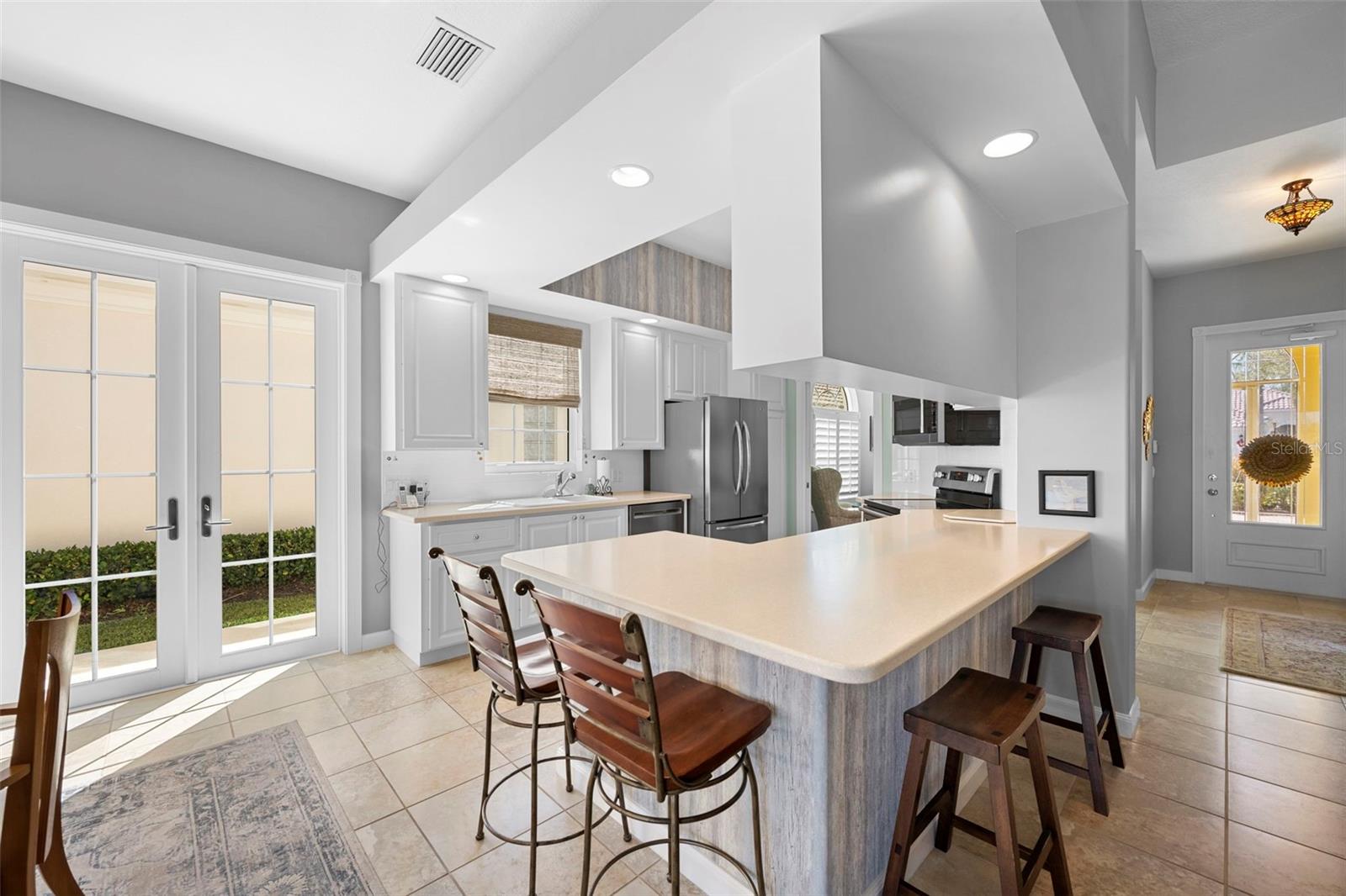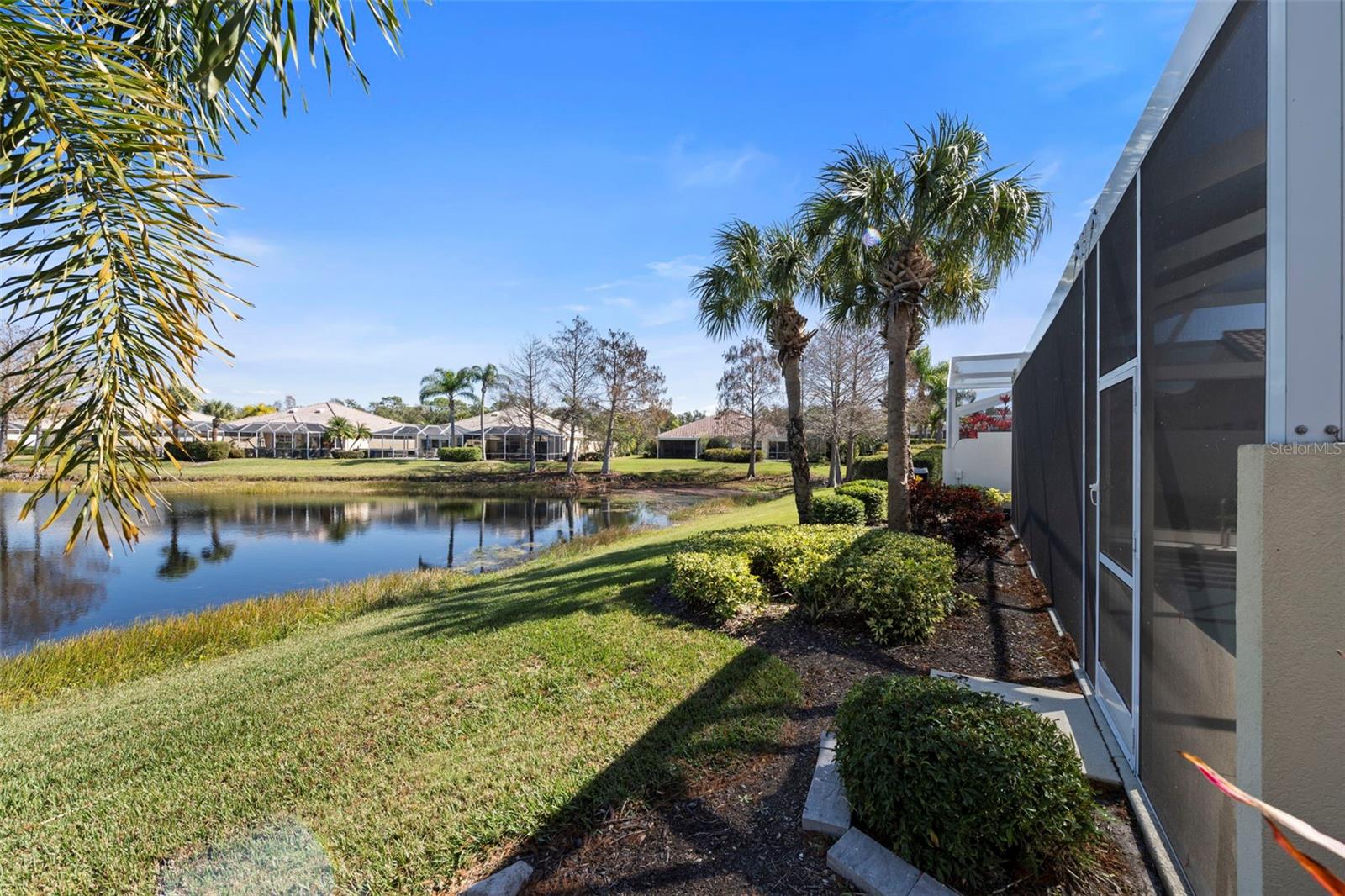 Oakmont Model with Pool & Panoramic Lake Views. Discover the perfect Florida escape in this beautifully maintained Oakmont model, designed for buyers seeking a seasonal or second home with exceptional outdoor living. Enjoy a private resurfaced pool, clear-view lanai enclosure (2019), and sweeping lake views with a charming bridge backdrop—a tranquil setting that feels like a resort yet is easy to lock and leave. Built by DiVosta with poured concrete reinforced construction, this home offers durability, peace of mind, and low-maintenance living. Impact windows and doors add storm protection, while French doors to the lanai invite in natural light and seamless indoor-outdoor flow—perfect for entertaining or relaxing after a day at the beach. The thoughtfully designed floor plan includes three bedrooms, two bathrooms, and a den, ideal for a home office or flex space when hosting guests. Interior upgrades include engineered wood flooring in all bedrooms, a remodeled primary shower, central vacuum, epoxy garage floor, and a well-appointed kitchen with stainless steel appliances, Corian countertops, and a closet pantry. Step outside to the covered lanai and pool area—your private retreat for morning coffee or sunset swims. The clear-view screen preserves the stunning water view while providing year-round comfort. Additional highlights include a/c 2017, resurfaced pool, two guest bedrooms ideal for visiting family, and a den perfect for working remote or hobbies. Whether you’re escaping winter or securing a refined second home, this residence delivers the Florida lifestyle snowbirds seek—sun, water views, privacy, and quality construction in a peaceful setting. VillageWalk provides first-class amenities, including six Har-Tru tennis courts, geothermal heated lagoon and lap pools, pickleball courts, bocce ball, basketball courts, and miles of walking and biking trails. The community clubhouse offers a fitness center, meeting space, and a library. The vibrant Town Center includes a restaurant, hair salon, boutique, gas station, Tiki bar and onsite HOA office. An HOA manager and events coordinator keep the community calendar full of activities for residents. Golf carts are welcome, adding to the ease of navigating this well-planned neighborhood. VillageWalk is close to Publix, the Legacy Bike Trail, Costco, Siesta Key Beach, medical facilities, dining, and more. Don’t miss the opportunity to own this exceptional home in one of Palmer Ranch’s most sought-after communities. Being sold furnished with exclusions.