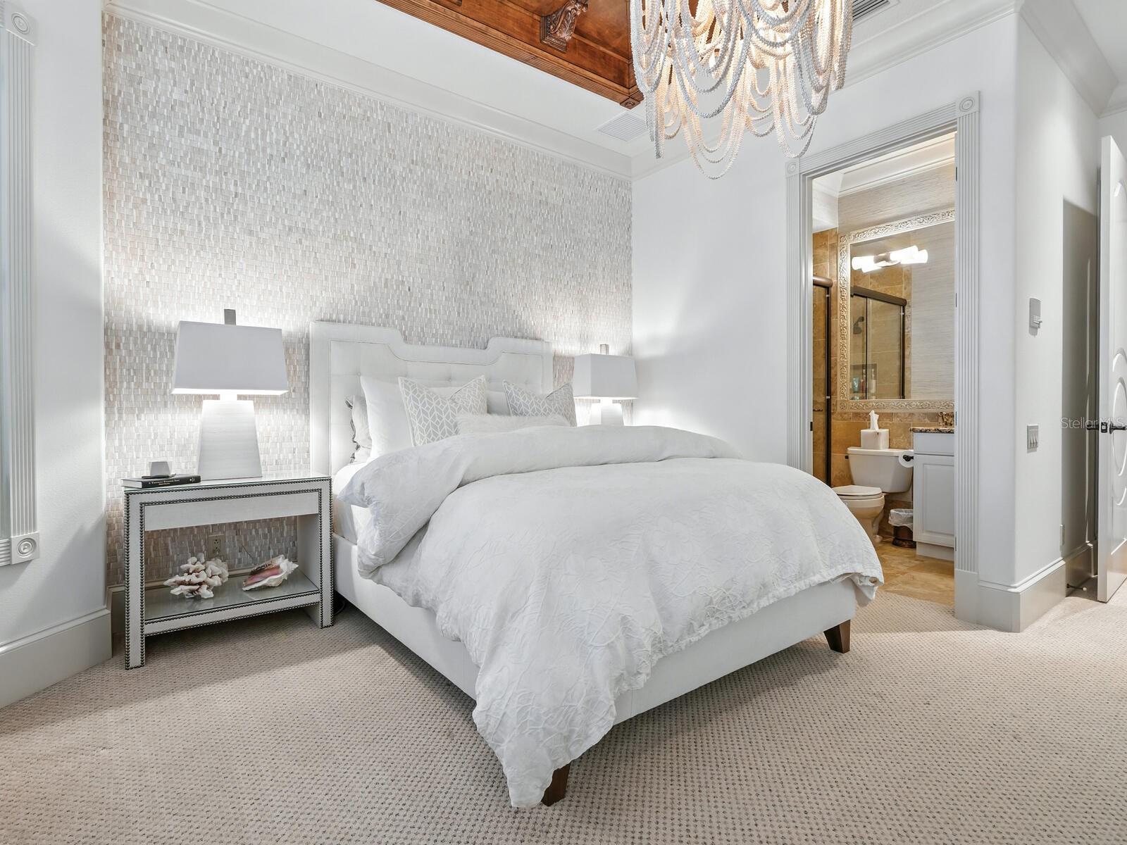 Live your luxury at Casa Lido, a spectacular waterfront estate in the coveted enclave of Lido Shores, offering sweeping, unobstructed views across Sarasota Bay to downtown Sarasota and the iconic Ringling Bridge, while having private beach access. This is a rare opportunity to own a residence of extraordinary scale, presence, and craftsmanship—where every detail has been custom designed and executed at the highest level. A private, gated drive leads to a dramatic custom arched wooden double door entry opening to a two-story grand foyer, setting the tone for the home’s impressive proportions and architectural sophistication. Soaring ceilings, refined millwork, curated chandeliers, and walls of glass frame the open bay views, while electric screens allow you to enjoy uninterrupted vistas throughout the day without sacrificing comfort or privacy. Spanning an exceptional amount of square footage, the residence offers five bedrooms, five full baths, four half baths, and a thoughtfully designed layout that balances grandeur with livability. Two dedicated office spaces include a stunning wood-paneled office with a spiral staircase leading to a second-story library, complete with custom bookcases and a charming tucked-away nook—perfect as a child’s hideaway or creative retreat. The first-floor primary suite is a true sanctuary, featuring oversized dual walk-in closets and a spa-inspired bath designed for effortless daily living. Wake each morning to tranquil water views and the gentle rhythm of the bay. An additional private office adjoining the suite offers an inspiring workspace with panoramic scenery. Designed for entertaining at every scale, the chef’s kitchen is anchored by premium appliances, an expansive island, a Butler’s pantry, dual dishwashers, and seamless flow into the family room. Pocketing sliders open to the outdoor living areas, blurring the line between indoors and out. Wellness and leisure are elevated throughout the home, including a private gym with sauna, a temperature-controlled wine room and storage, and a fully equipped entertainment room with theater seating, wet and dry bars, and game space. Upstairs, spacious guest suites enjoy refined finishes and access to wraparound balconies with a gas fireplace—ideal for sunset views over the water. Guests will appreciate the separate guesthouse, featuring a private entrance, living area, kitchenette, dedicated laundry, ensuite bath, and serene water views—perfect for extended stays or multigenerational living. Outdoors, the estate continues to impress with upper and lower resort-style pools, a fire pit, outdoor kitchen, and multiple spaces for dining and relaxation. Boating enthusiasts will enjoy direct bay access from the private dock, complete with lifts and accommodations for watercraft and paddleboards. Every space in Casa Lido is oversized, intentional, and undeniably grand—a home that must be experienced in person to fully appreciate its scale, finishes, and commanding presence. Just minutes from St. Armand's Circle, world-class beaches, and downtown Sarasota, this is waterfront living without compromise.