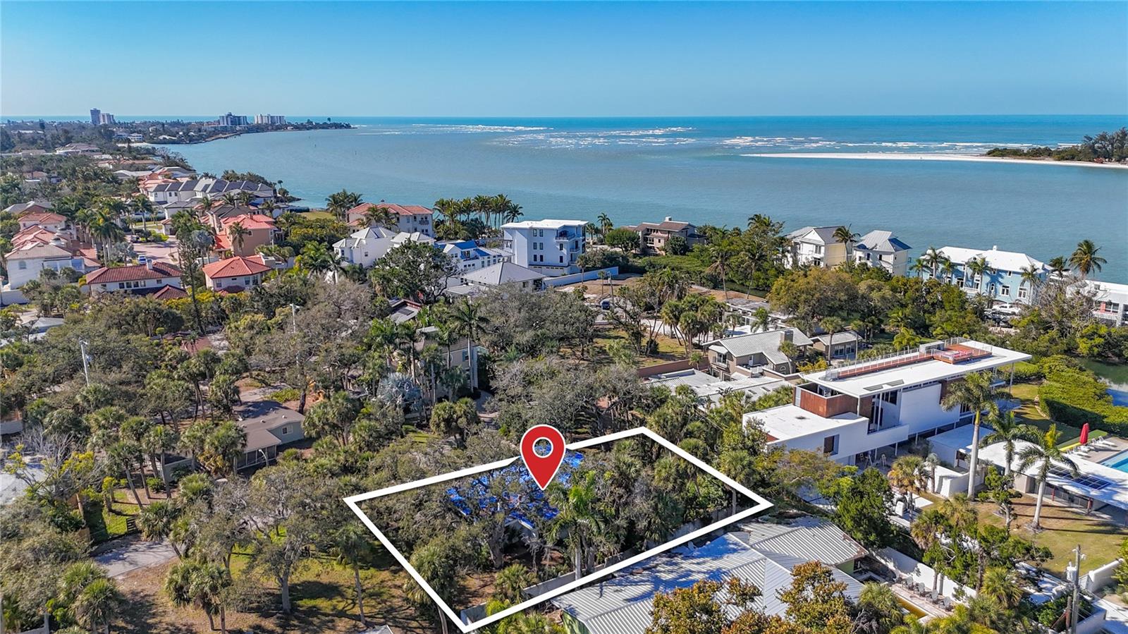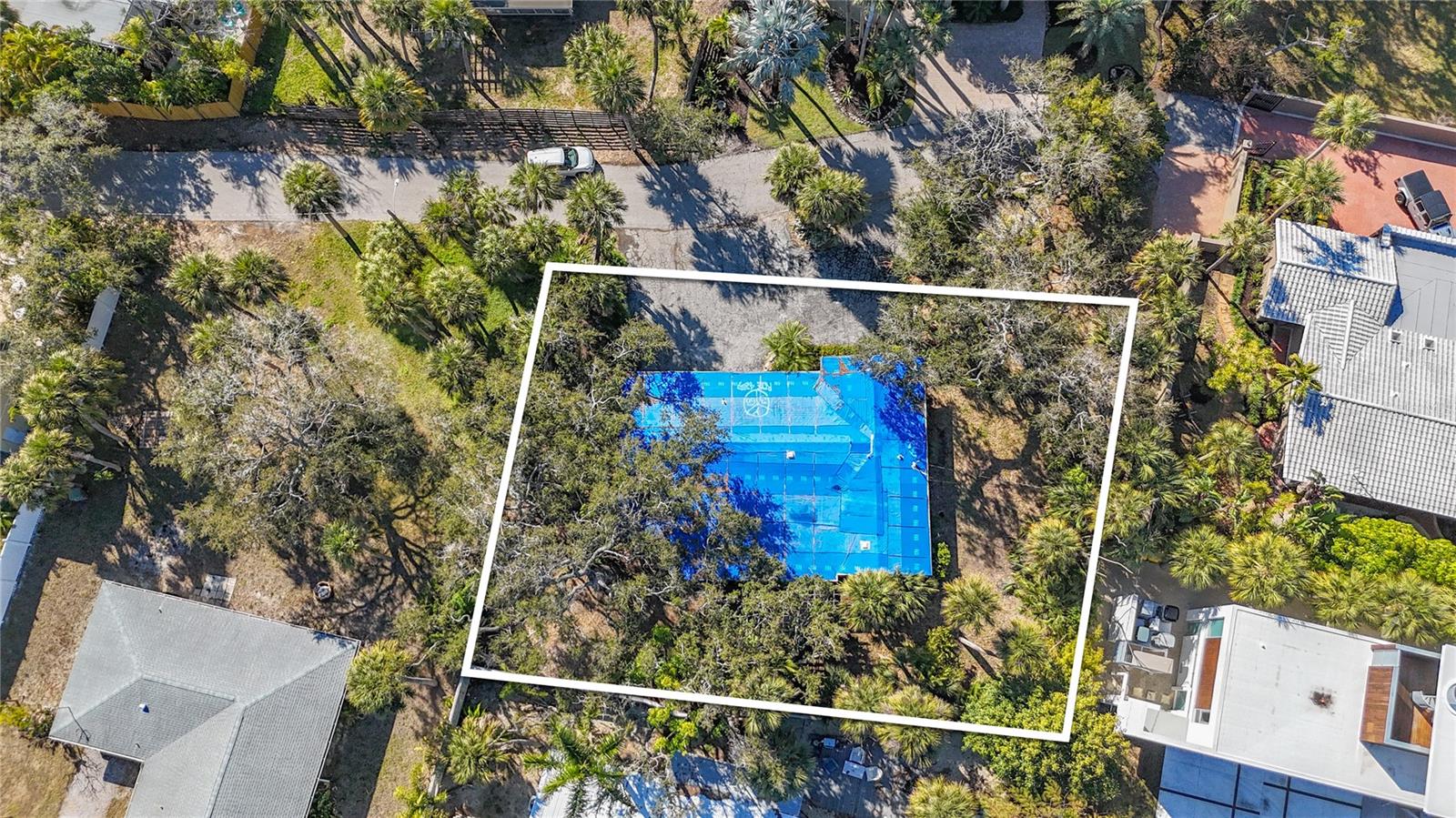 RARE SIESTA KEY INVESTMENT OPPORTUNITY — just one street back from the water and a 2-minute walk to the beach. This single-family 2BR/2BA rehab property sits on an OVERSIZED .28 ACRE LOT spanning over two different lots on a private dead-end street with only three homes, surrounded by dense, mature vegetation—an exceptionally rare combination of privacy, size, and location. The home has been fully gutted and is being sold AS-IS, creating a true blank slate for investors, builders, or end users seeking to add value. Hurricane damage has been remediated, and the property is ready for redevelopment or renovation. Existing structure offers an open-concept layout with two expansive common areas, ideal for reconfiguration or high-end finishes. Terrazzo floors throughout most rooms may be restored to their original shine, preserving classic Florida character. Outdoor features include a pergola-covered back porch, ample yard space, and a private irrigation well, while still serviced by city water. Opportunities like this—walkable to the beach, oversized lot, ultra-low traffic street, and significant upside—are increasingly rare on Siesta Key. Ideal for flip, rebuild, or long-term hold in one of Florida’s most desirable coastal markets.