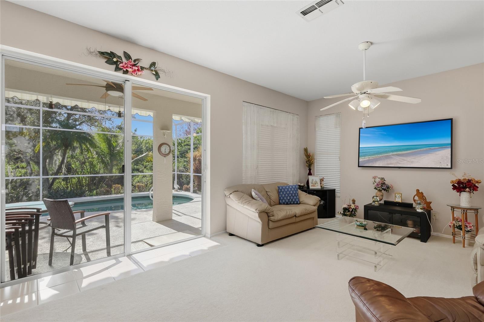 Welcome to your private oasis in the heart of Wellington Chase, one of Sarasota’s most desirable and centrally located communities. This charming 3 bedroom, 2 bathroom pool home presents a rare opportunity to own a piece of paradise where you can add your own personal touches to create the ultimate dream home. From the moment you step inside, you are greeted by a bright and airy living room that feels spacious, thanks to large sliding glass doors that lead directly to the screened-in pool area. This seamless indoor-outdoor flow is perfect for entertaining or simply enjoying the peaceful, sun-drenched Florida lifestyle. The floor plan is thoughtfully designed for both comfort and functionality, featuring a dedicated dining space and a kitchen equipped with Corian countertops and a convenient closet pantry. Nearby, the oversized laundry room with built-in shelving offers plenty of extra storage and utility space. The master suite serves as a true sanctuary, boasting a massive walk-in closet and a master bathroom complete with dual sinks, a relaxing soaking tub, and a separate shower. Ensuring privacy for family or guests, the second and third bedrooms are joined by a Jack-and-Jill bathroom. Outside, the backyard is a hidden gem, offering a level of privacy that is hard to find. Whether you are lounging by the pool or enjoying the lush surroundings, this space feels like a personal retreat. Best of all, Wellington Chase offers incredibly low annual HOA fees while keeping you close to everything Sarasota is famous for; including world-class beaches, top-rated schools, and the Legacy Trail. This home is ready for its next chapter and is waiting for someone to unlock its full potential in a premier location.
